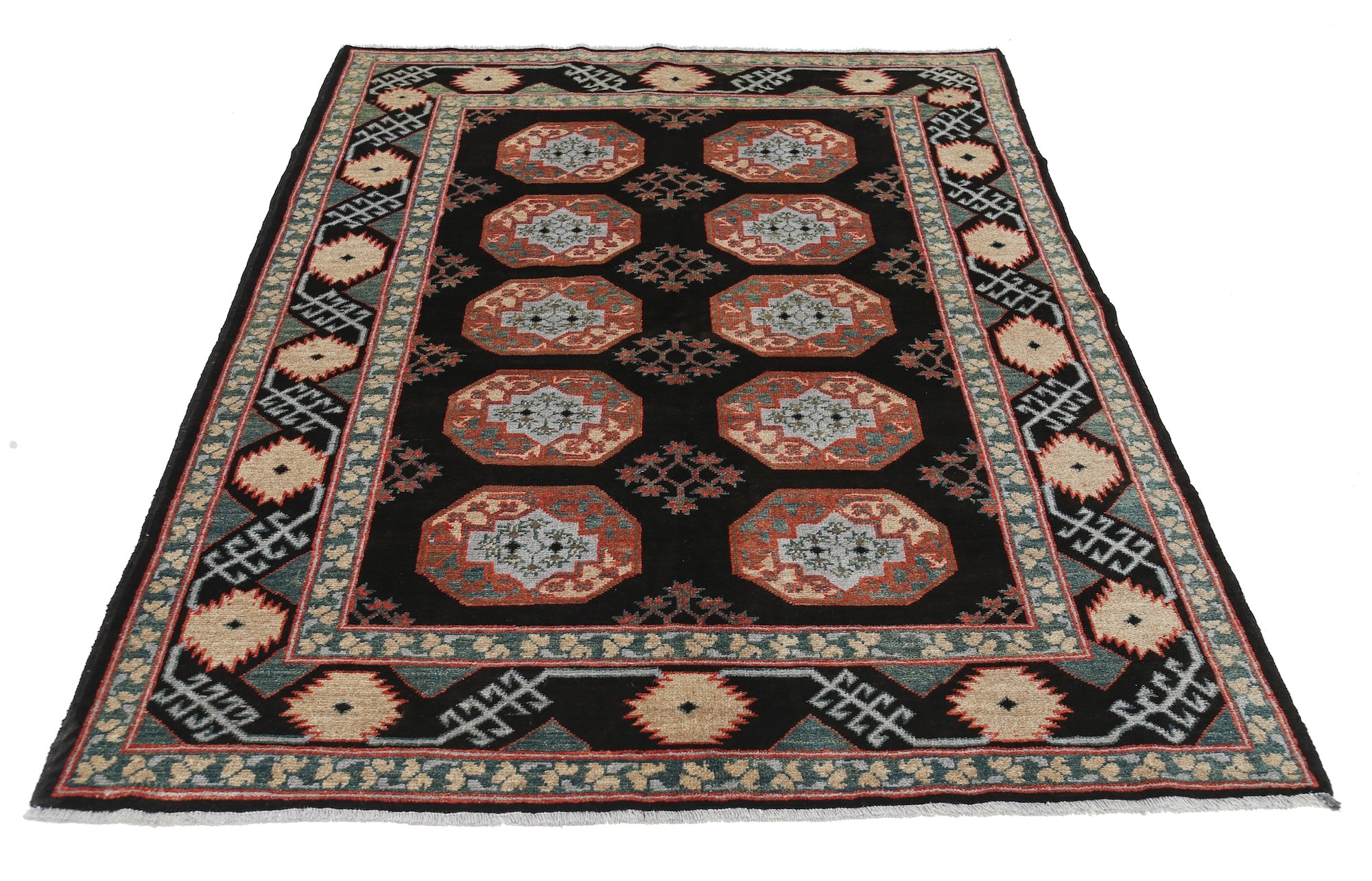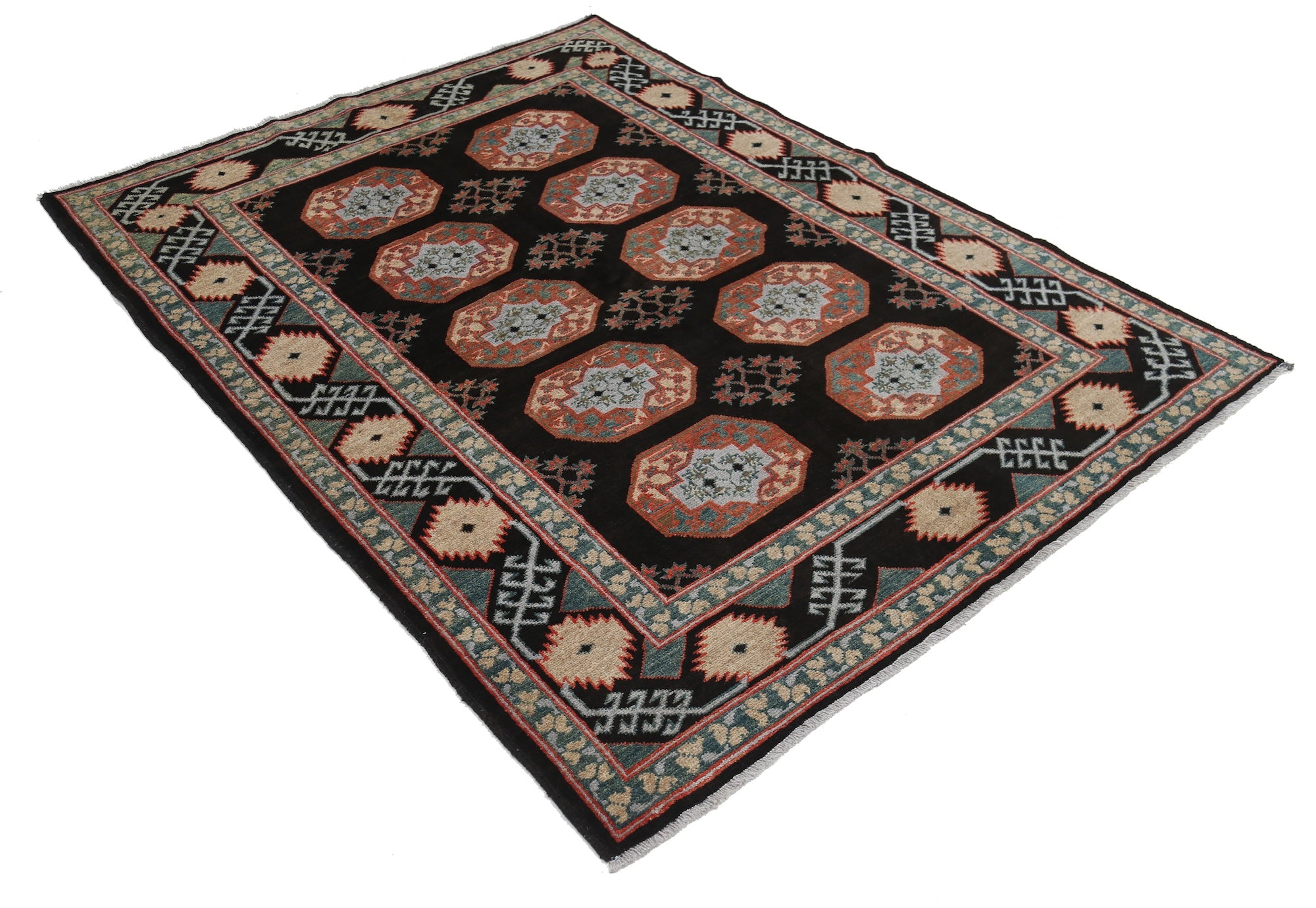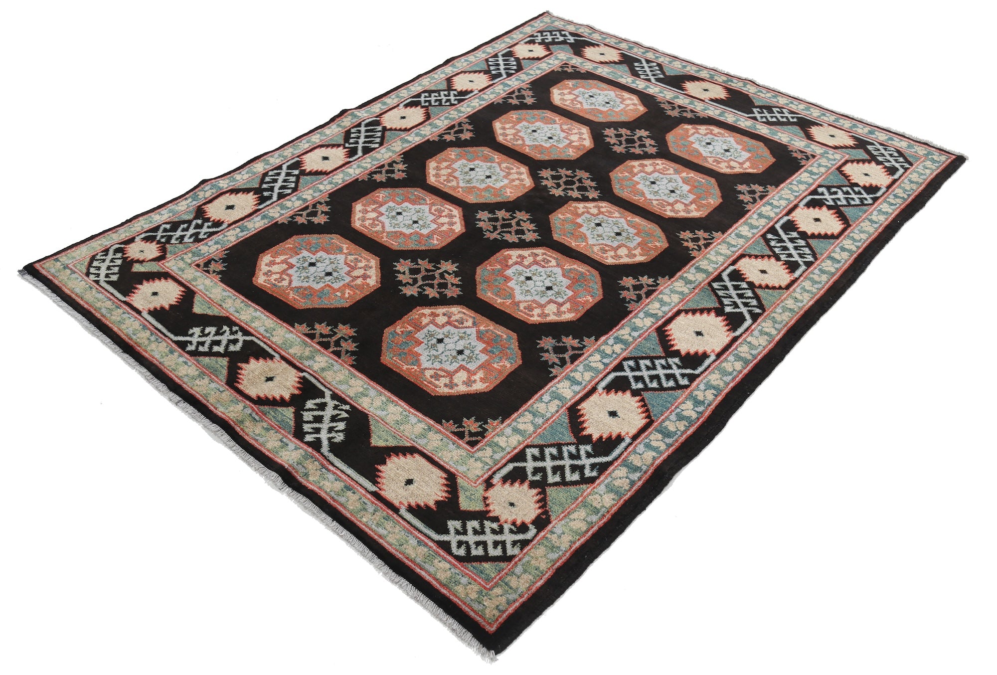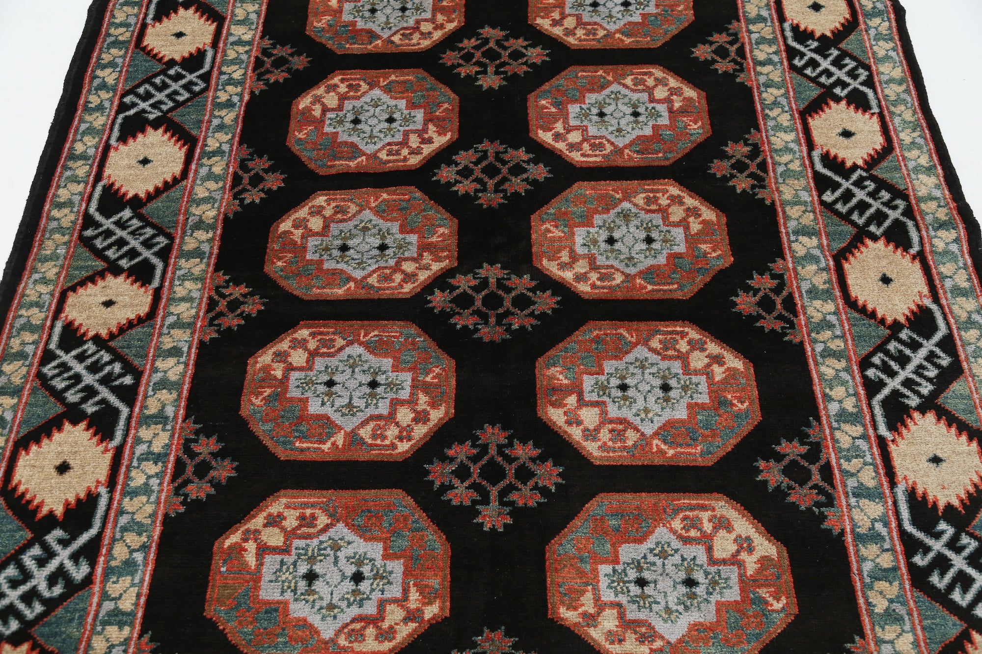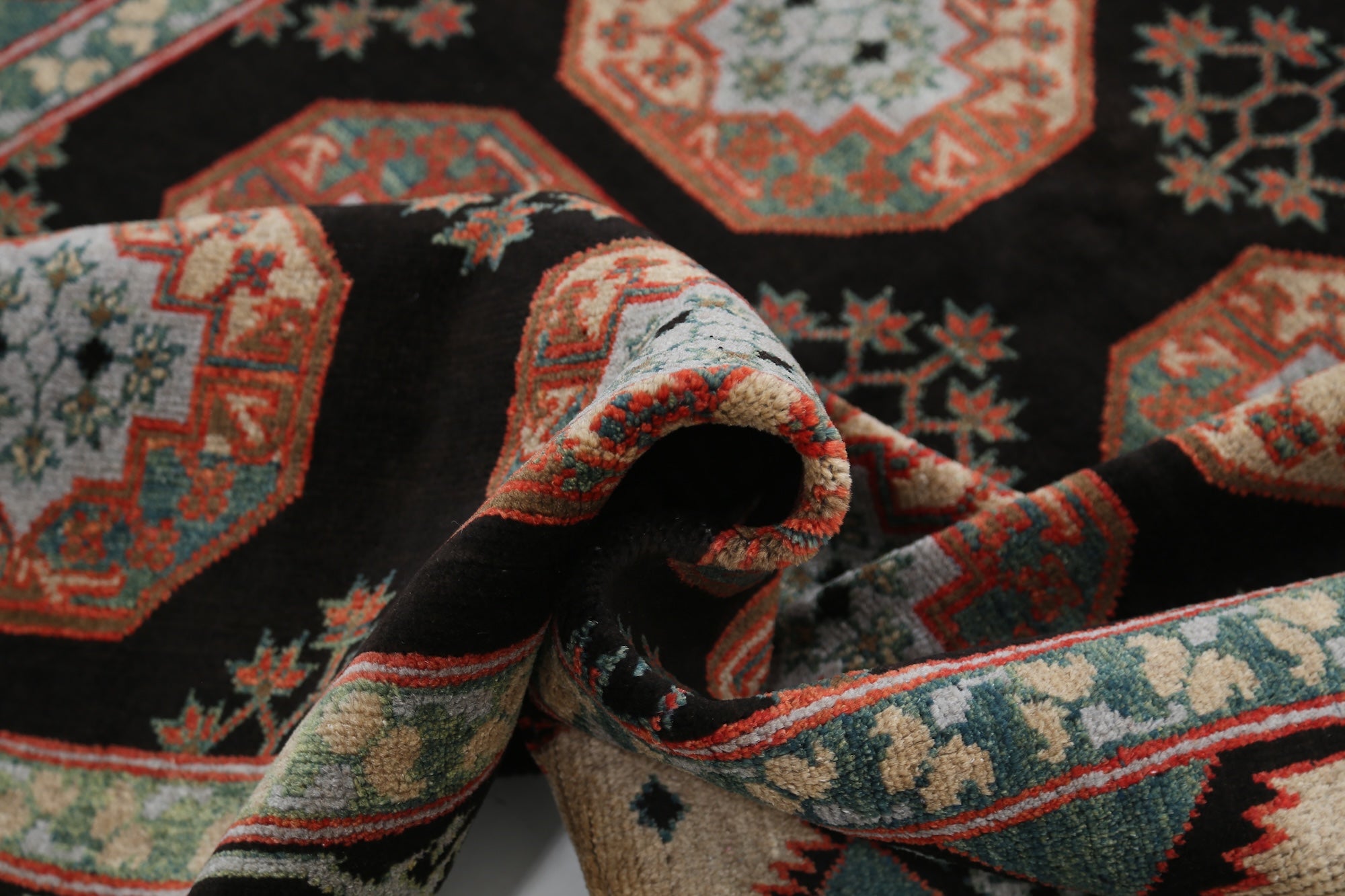 This artisan-crafted Afghan wool rug features a striking geometric tribal pattern, renowned for its cultural heritage and timeless appeal. Expertly hand-knotted by skilled weavers, it offers superior durability, making it perfect for high-traffic areas. Its intricate design and premium wool blend traditional craftsmanship with modern elegance, adding warmth and character to any space.
