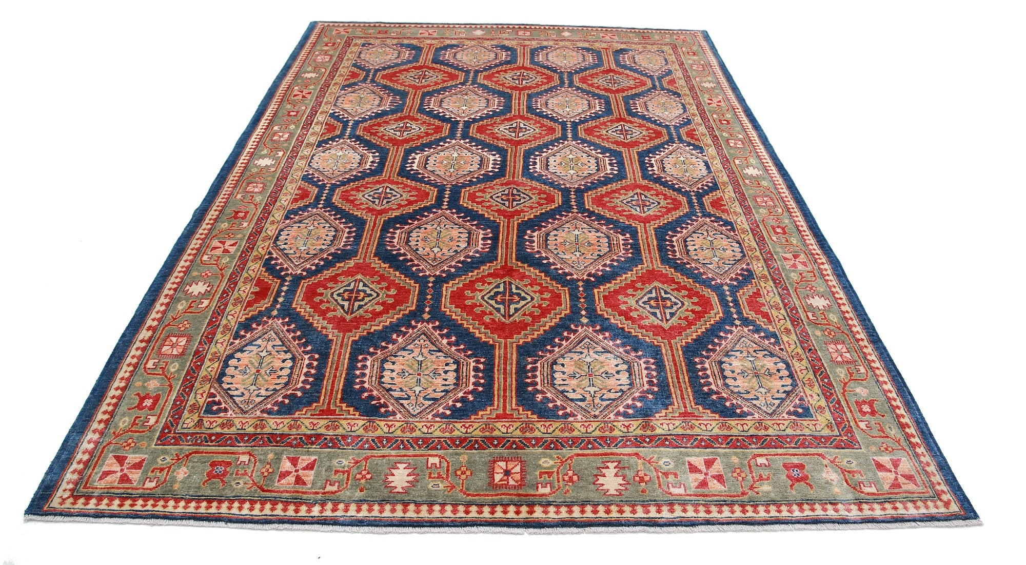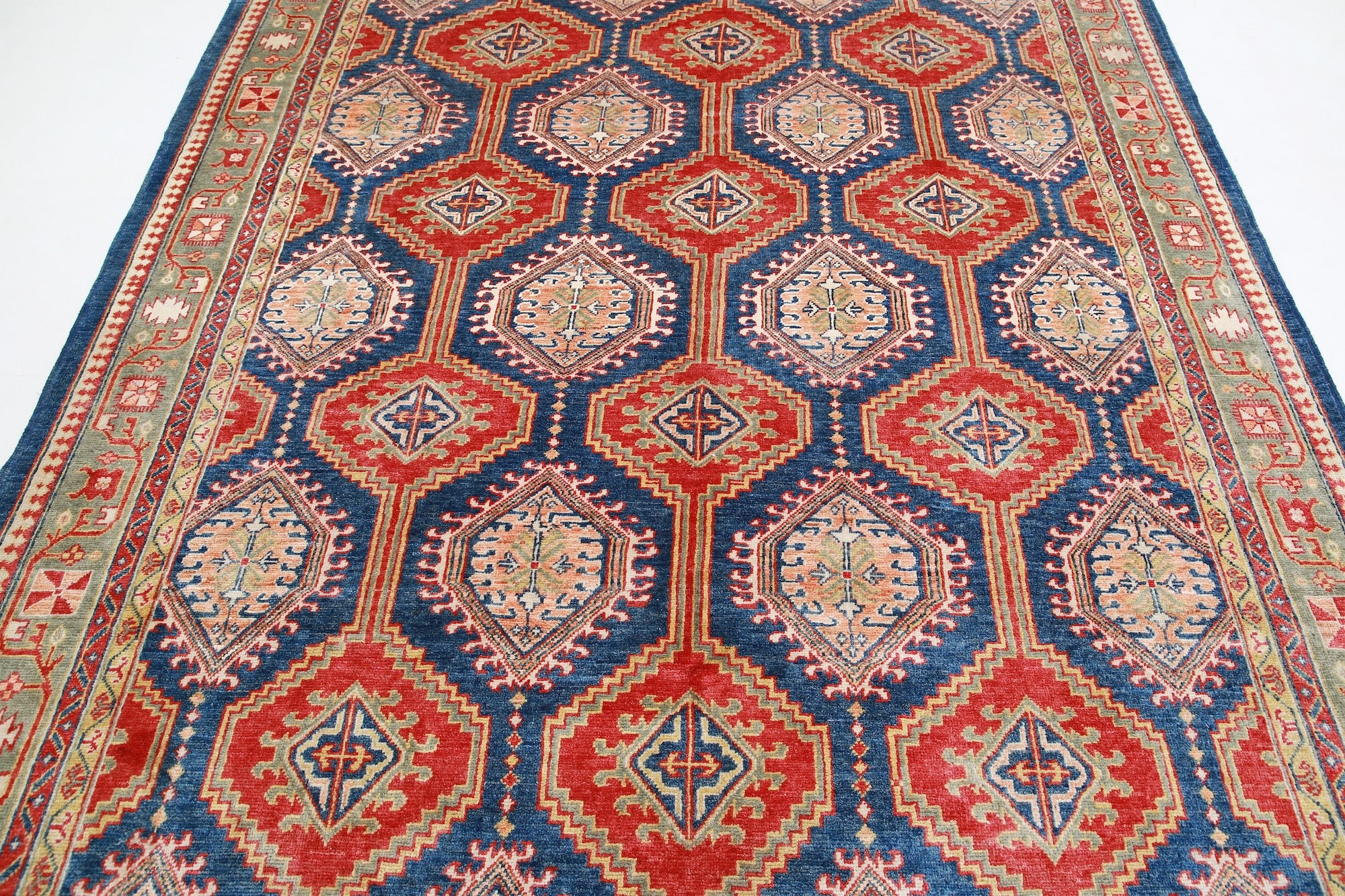 This artisan-crafted Afghan wool rug features a striking geometric tribal pattern, renowned for its cultural heritage and timeless appeal. Expertly hand-knotted by skilled weavers, it offers superior durability, making it perfect for high-traffic areas. Its intricate design and premium wool blend traditional craftsmanship with modern elegance, adding warmth and character to any space.