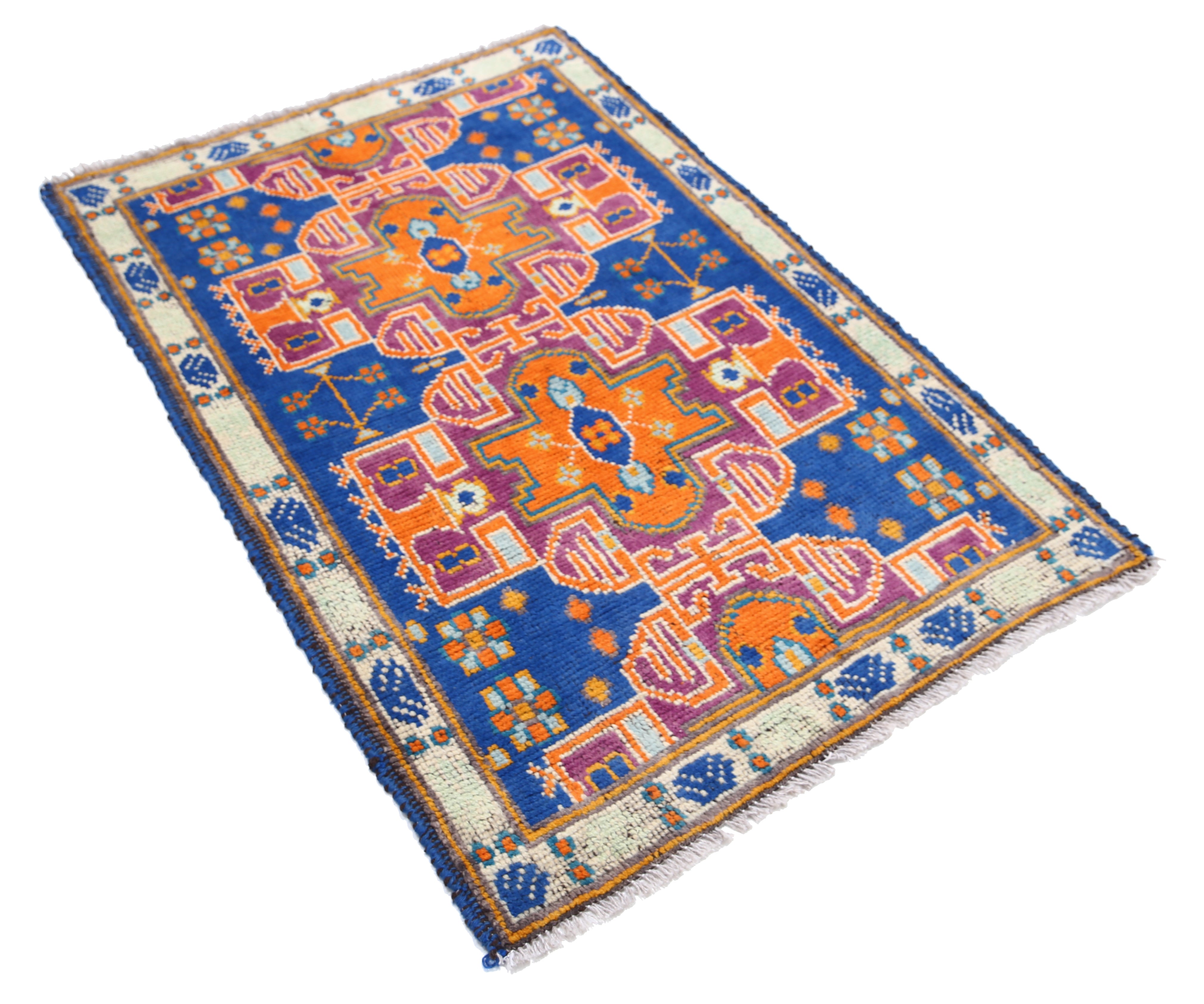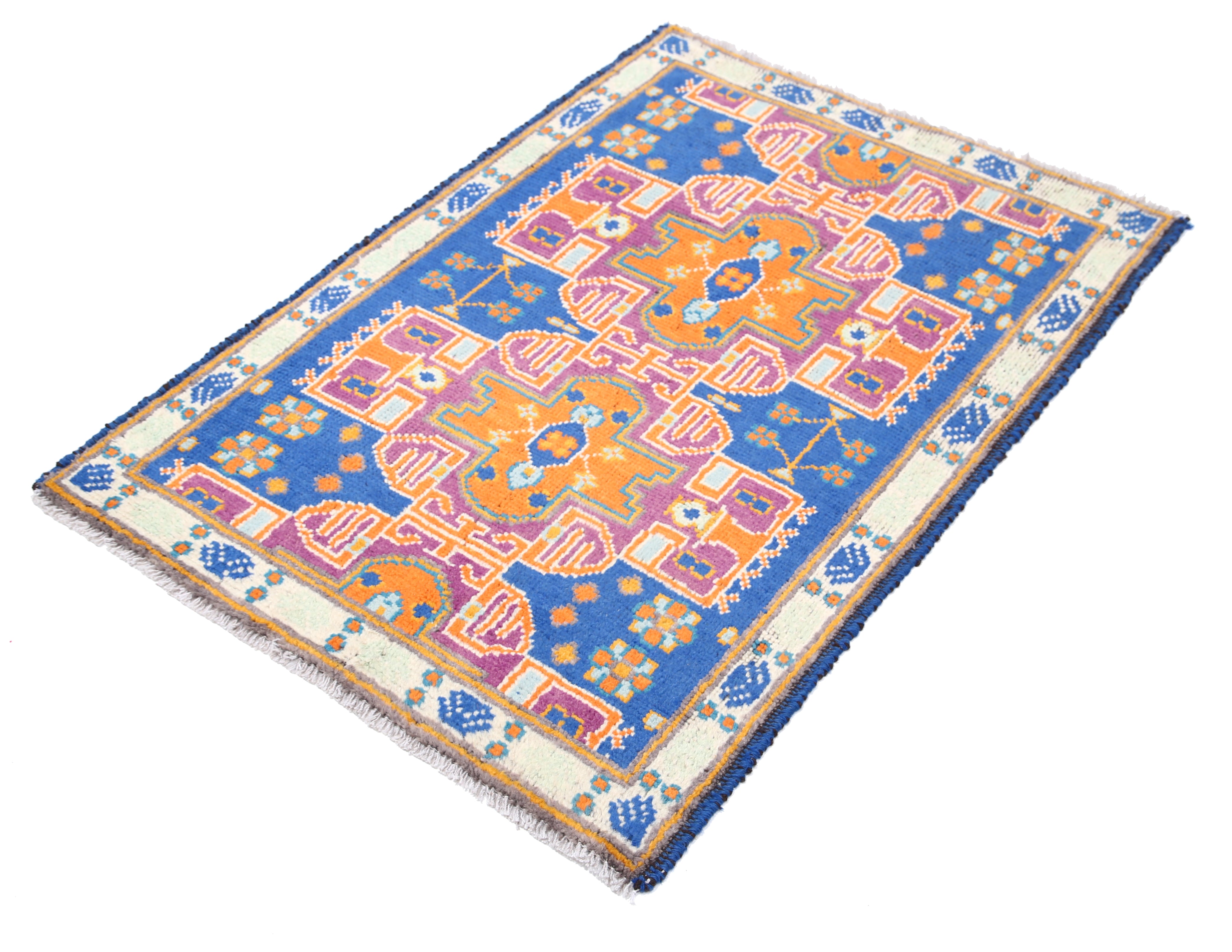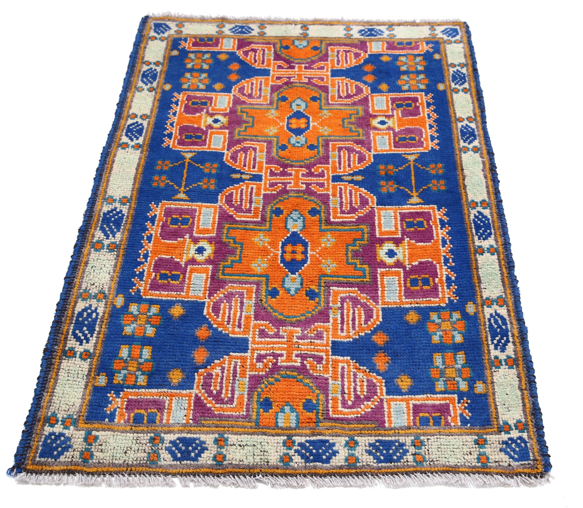 Hand-Knotted Tribal Geometric Wool Rug - 2'10" x 4'2"