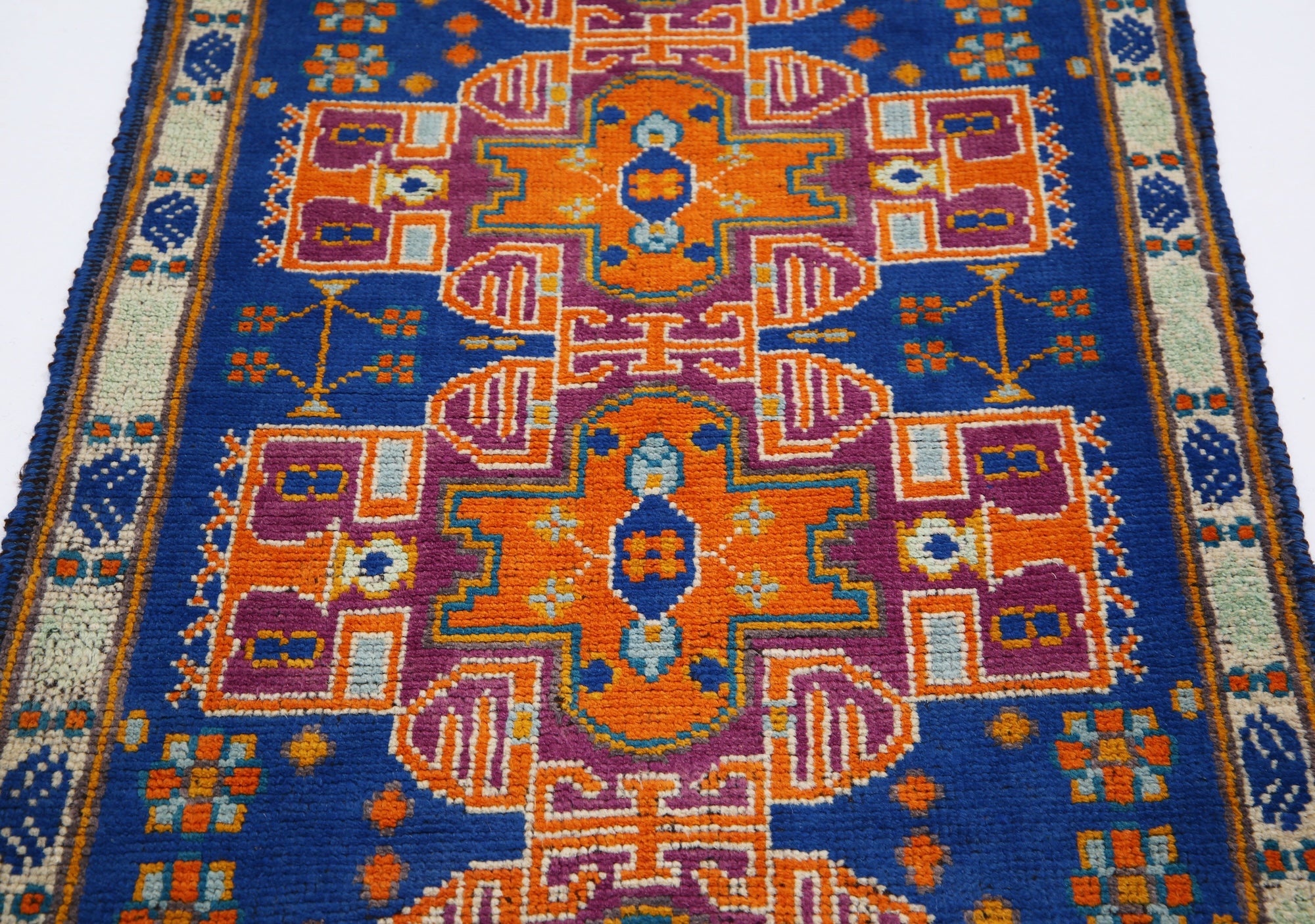 The hand-knotted Afghan wool rug features an intricate tribal geometric design, celebrated for its cultural heritage and timeless elegance. Woven by skilled artisans, it offers exceptional durability, making it ideal for high-traffic areas. Its unique patterns and premium wool blend tradition with modern sophistication, adding warmth and character to any interior.