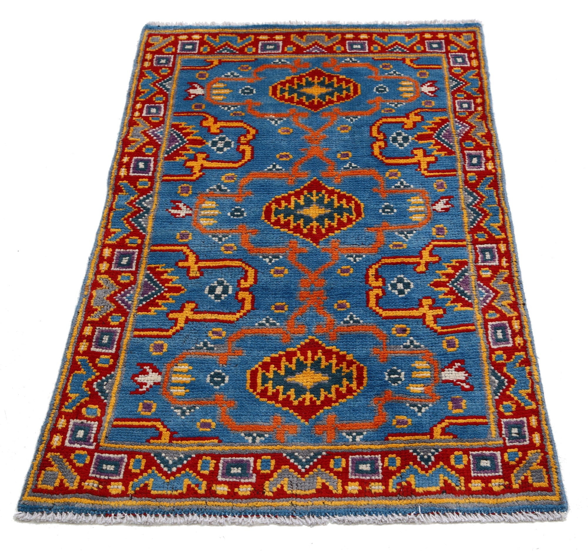 Hand-Knotted Tribal Geometric Wool Rug - 2'4" x 3'10"