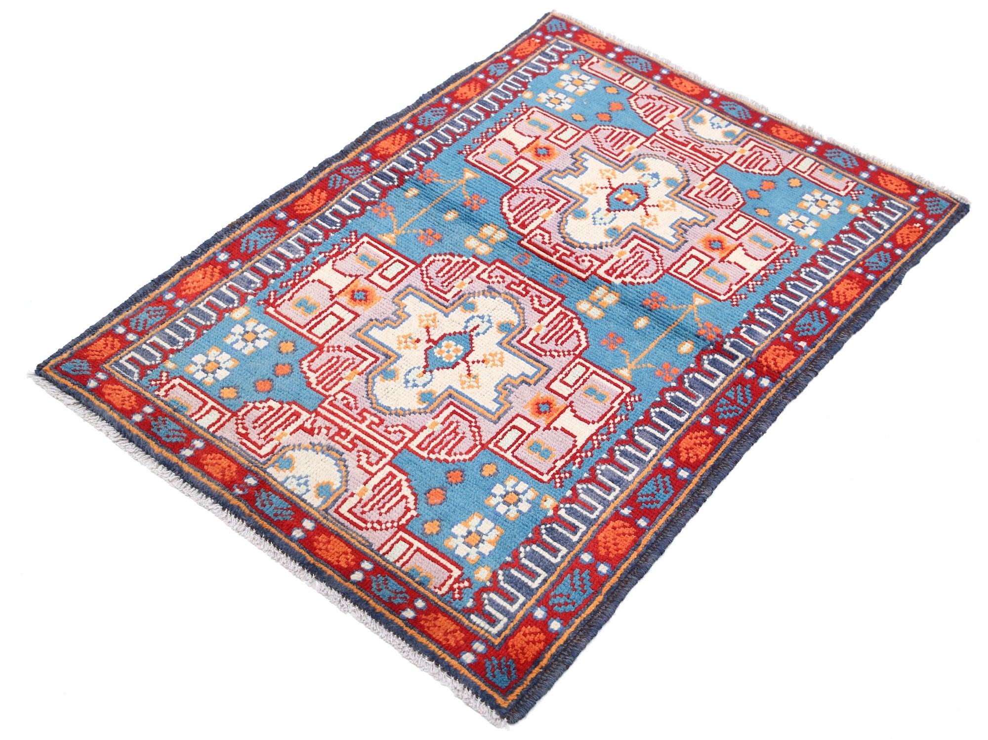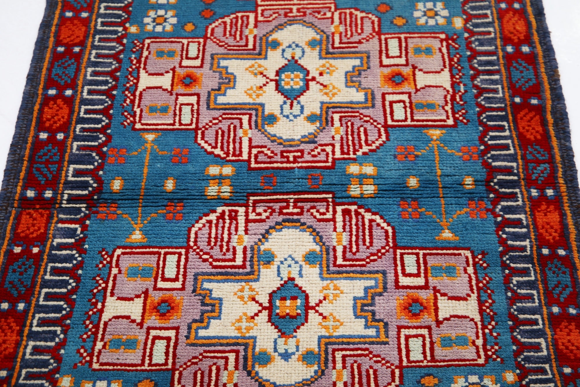 Hand-Knotted Tribal Geometric Wool Rug - 2'8" x 3'10"