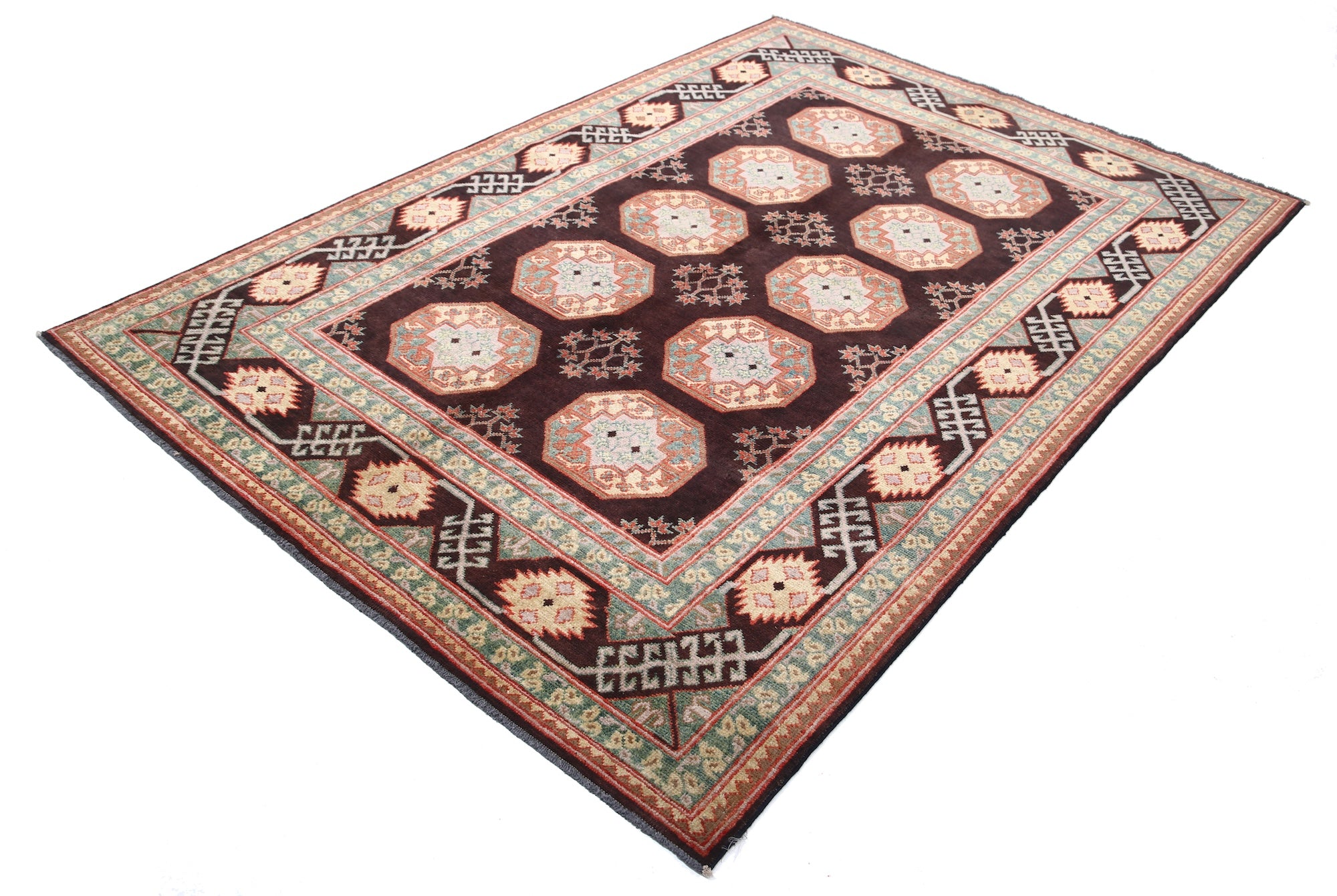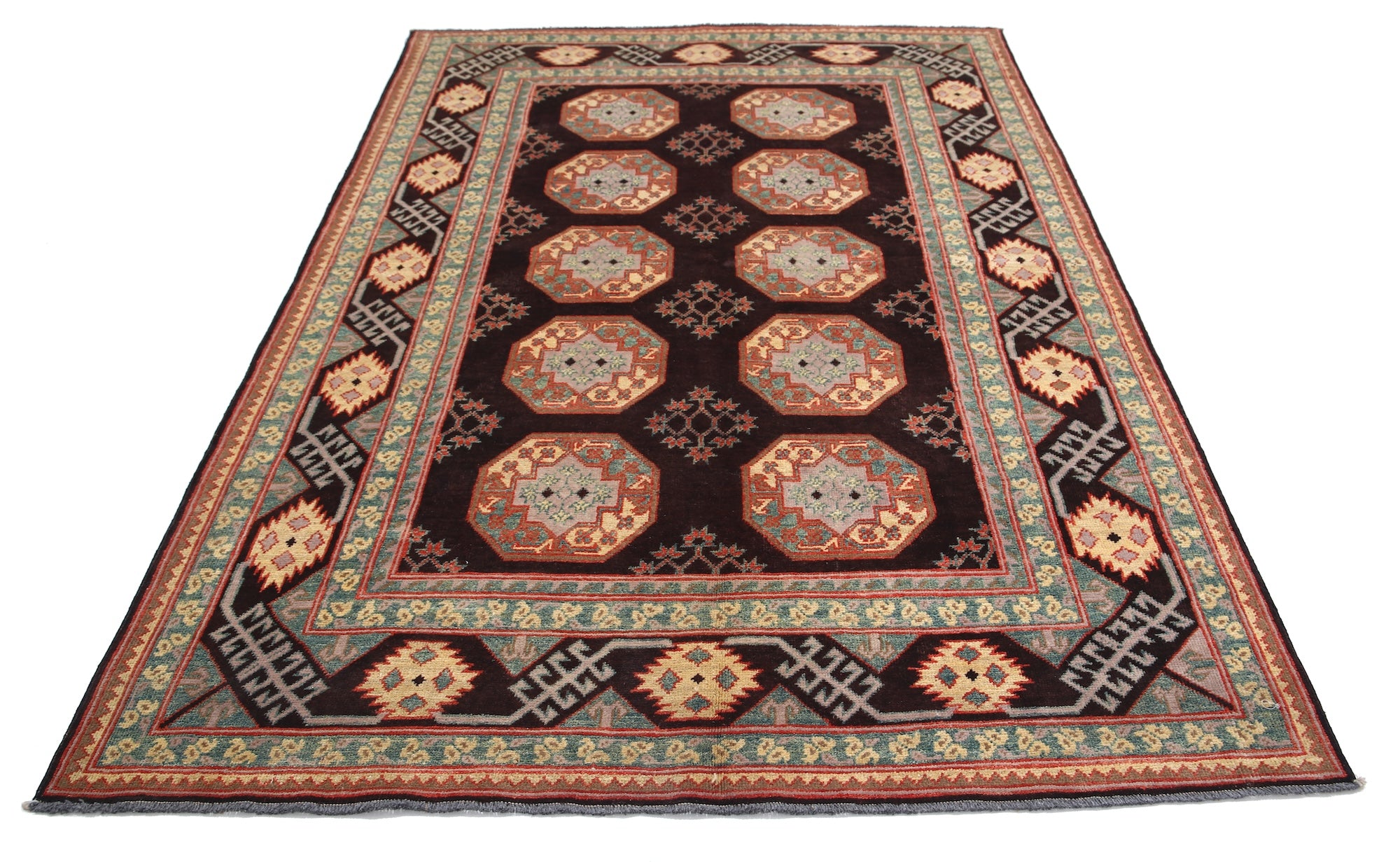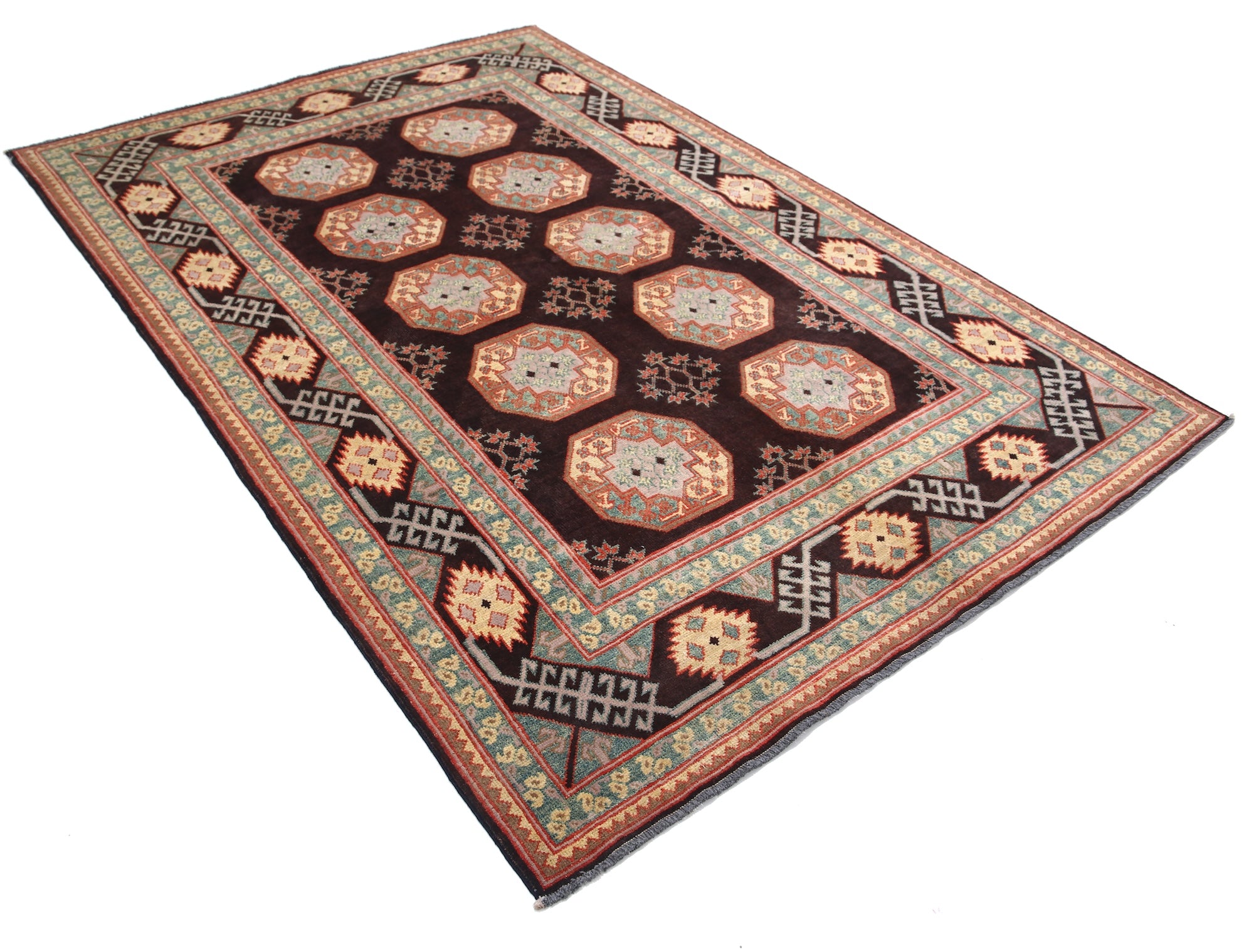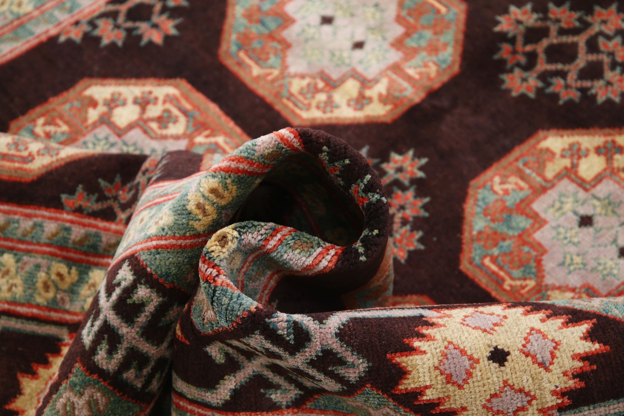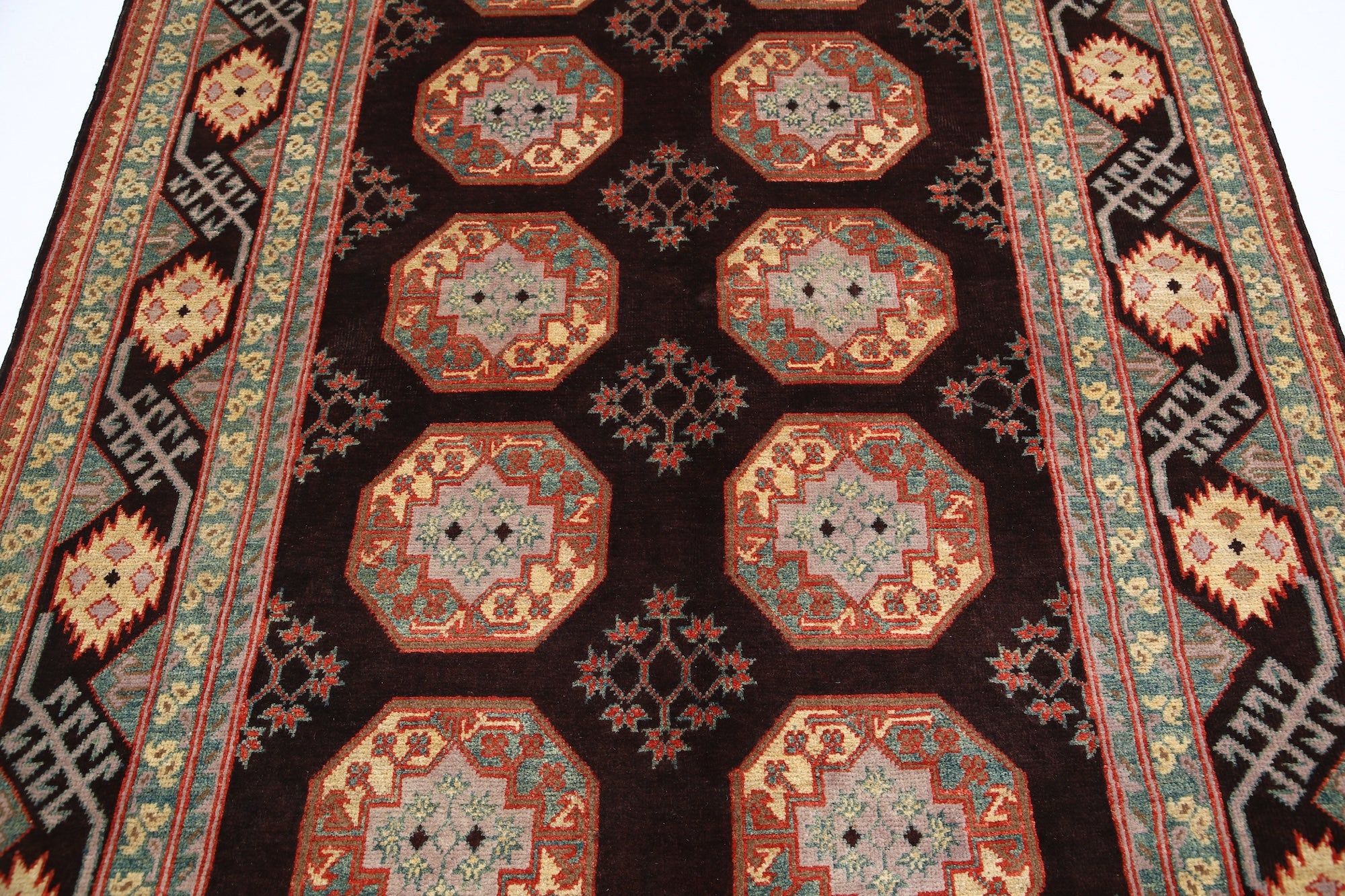 This artisan-crafted Afghan wool rug features a striking geometric tribal pattern, renowned for its cultural heritage and timeless appeal. Expertly hand-knotted by skilled weavers, it offers superior durability, making it perfect for high-traffic areas. Its intricate design and premium wool blend traditional craftsmanship with modern elegance, adding warmth and character to any space.