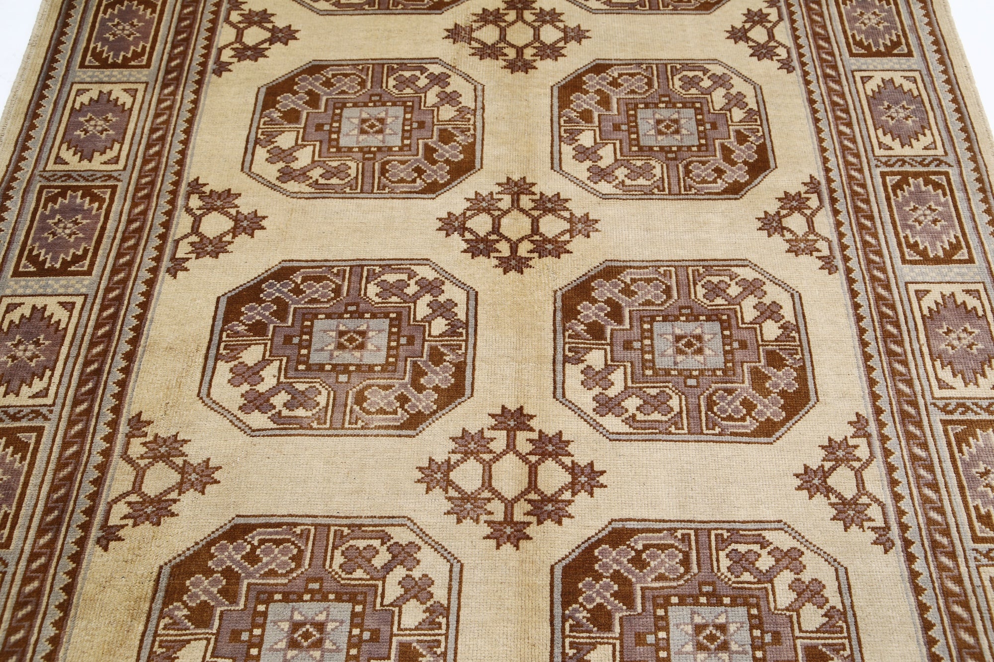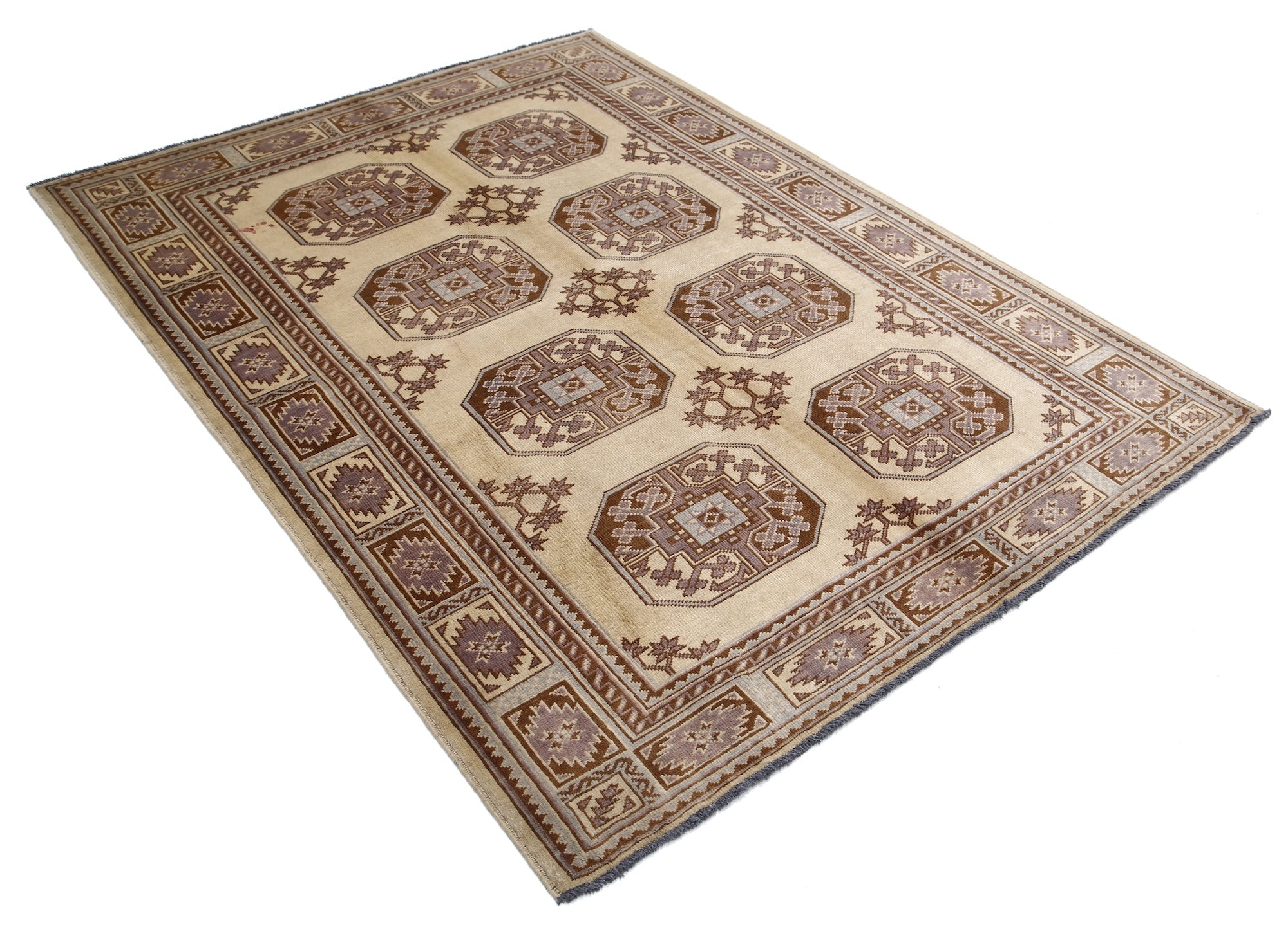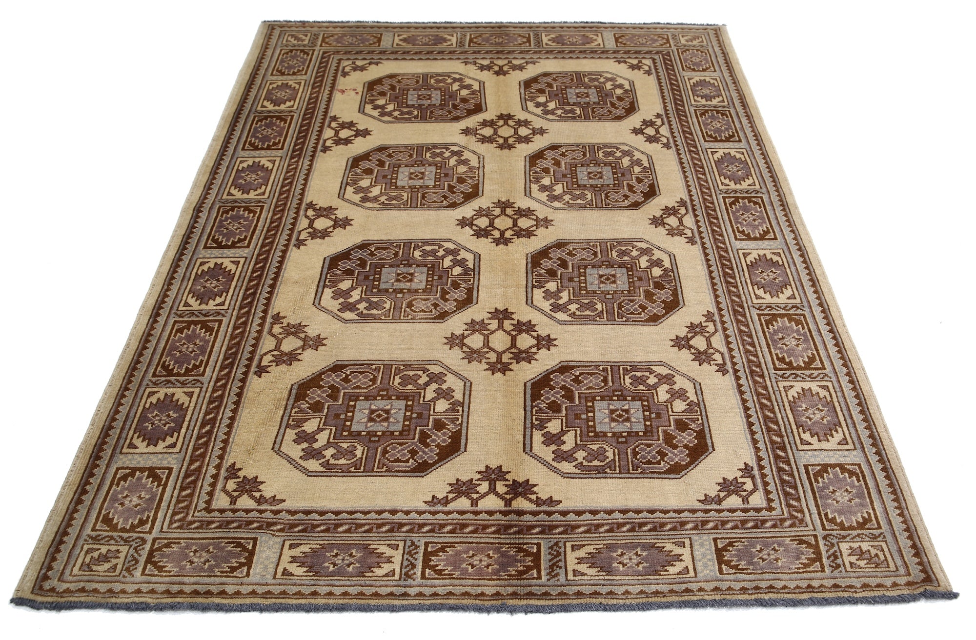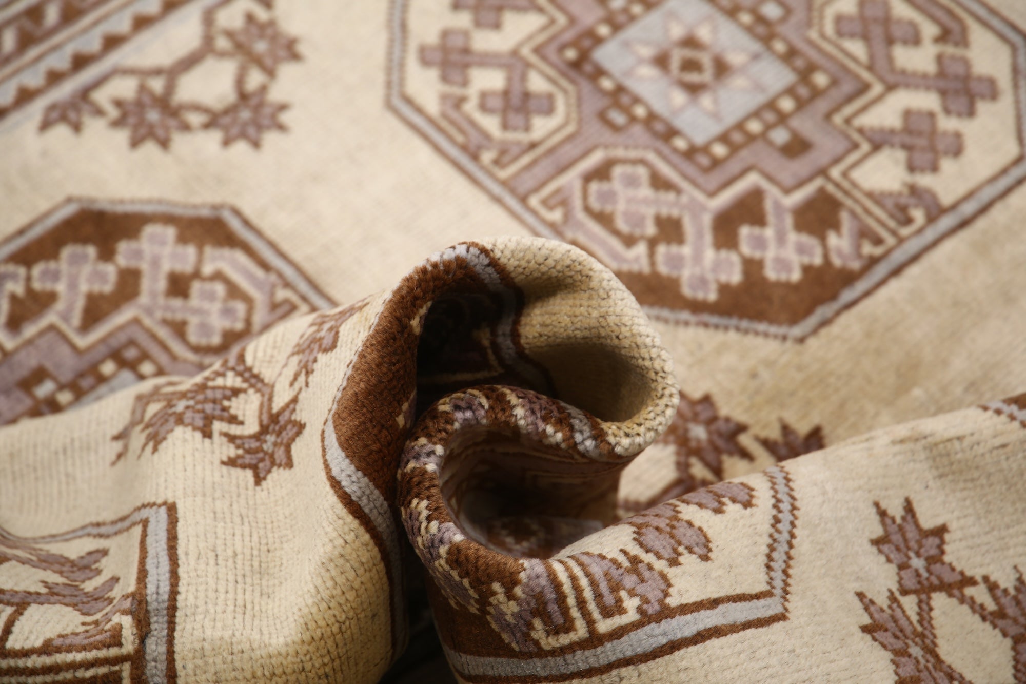 This artisan-crafted Afghan wool rug features a striking geometric tribal pattern, renowned for its cultural heritage and timeless appeal. Expertly hand-knotted by skilled weavers, it offers superior durability, making it perfect for high-traffic areas. Its intricate design and premium wool blend traditional craftsmanship with modern elegance, adding warmth and character to any space.