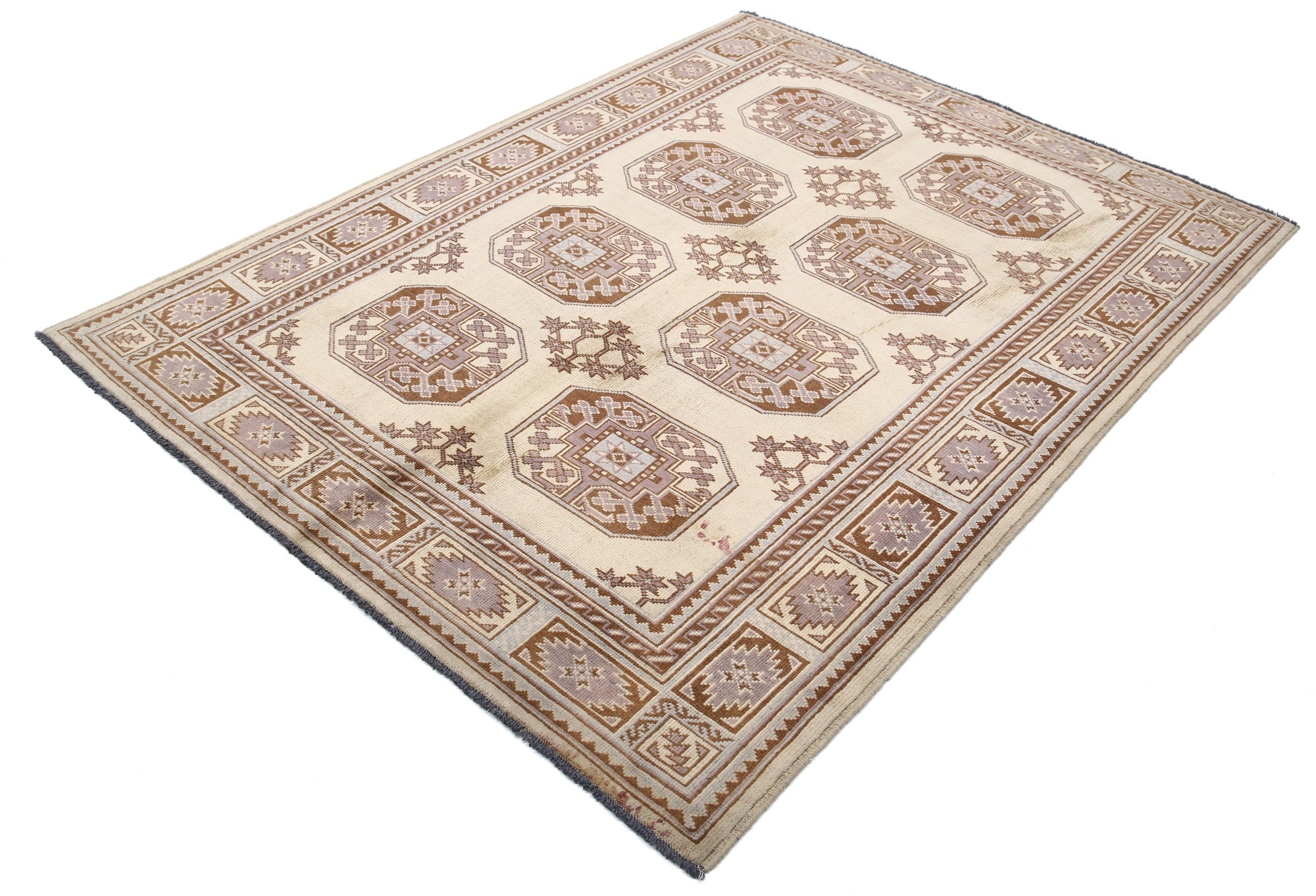 Hand-Knotted Distressed Vintage Wool Rug - 5'1" x 6'9"