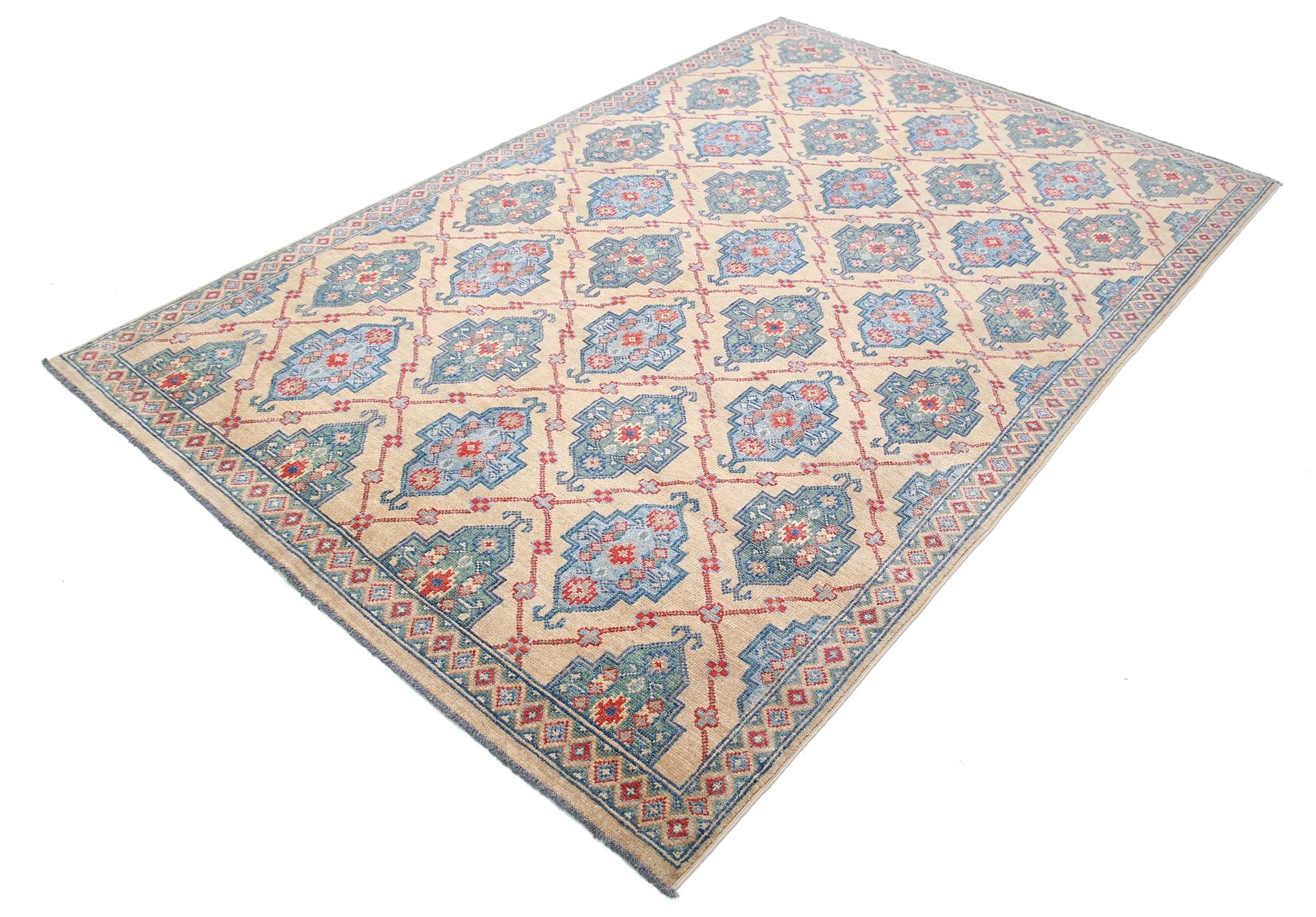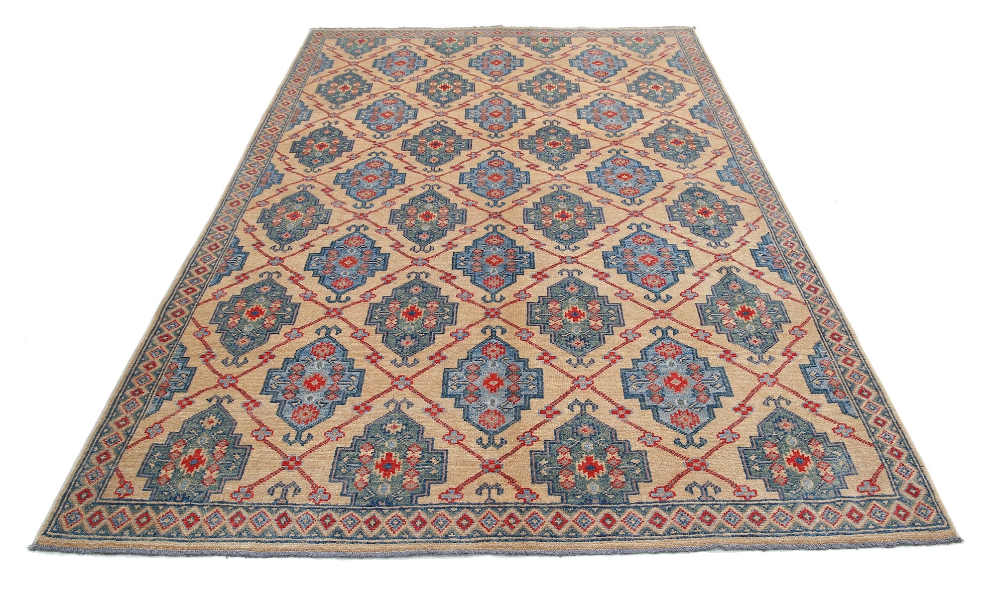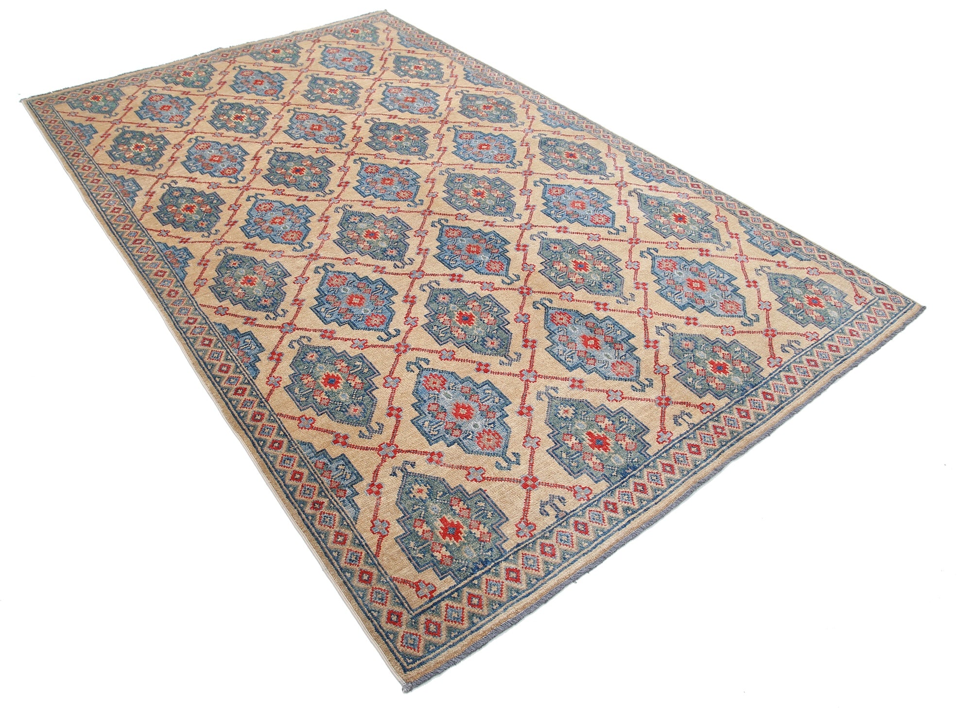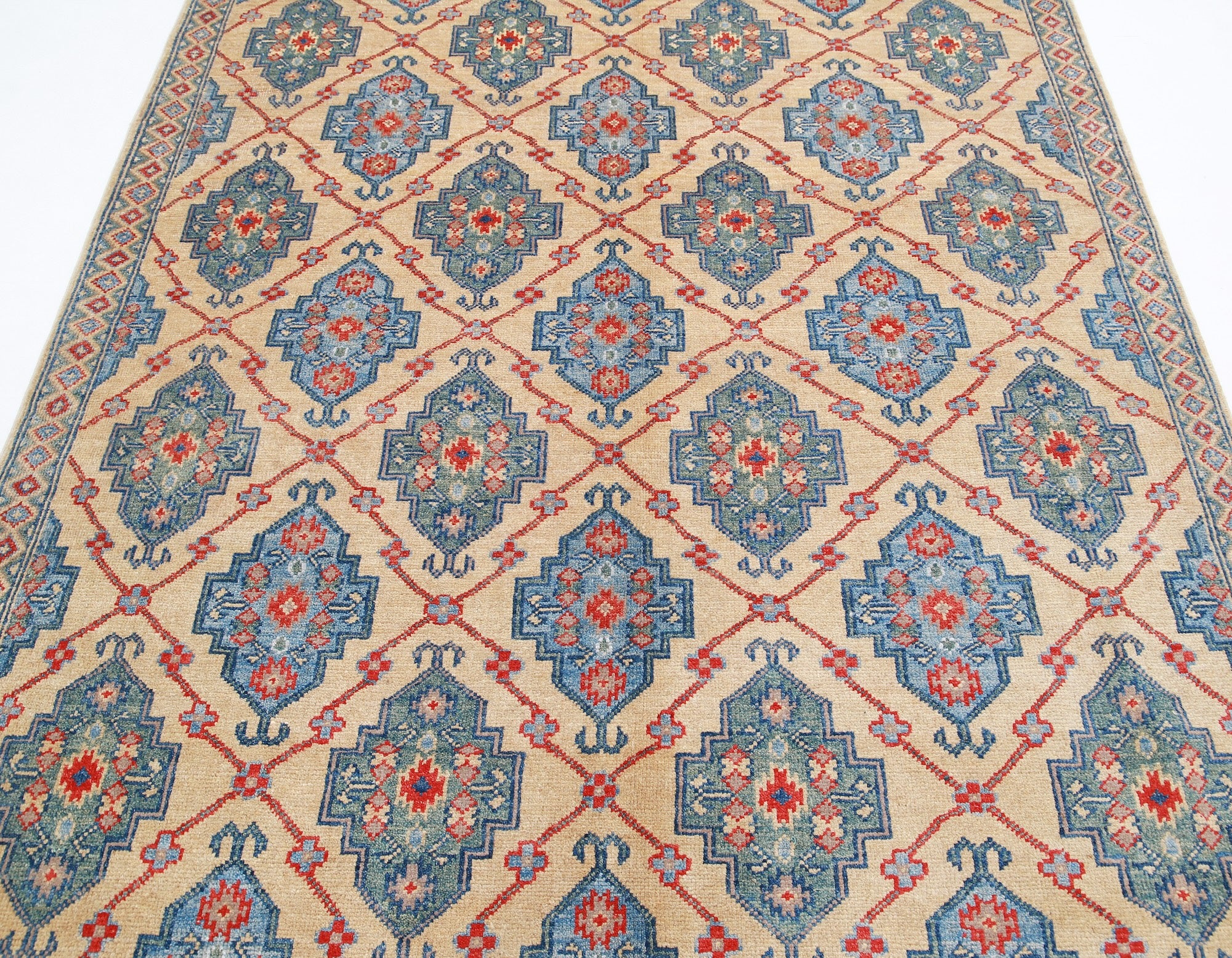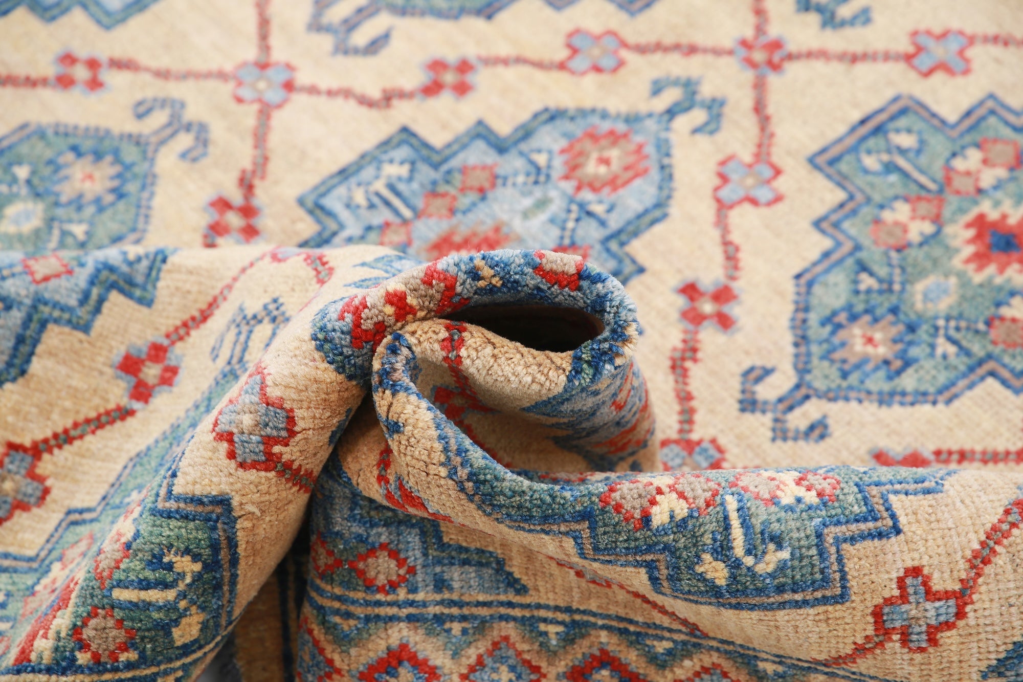 This artisan-crafted Afghan wool rug features a striking geometric tribal pattern, renowned for its cultural heritage and timeless appeal. Expertly hand-knotted by skilled weavers, it offers superior durability, making it perfect for high-traffic areas. Its intricate design and premium wool blend traditional craftsmanship with modern elegance, adding warmth and character to any space.