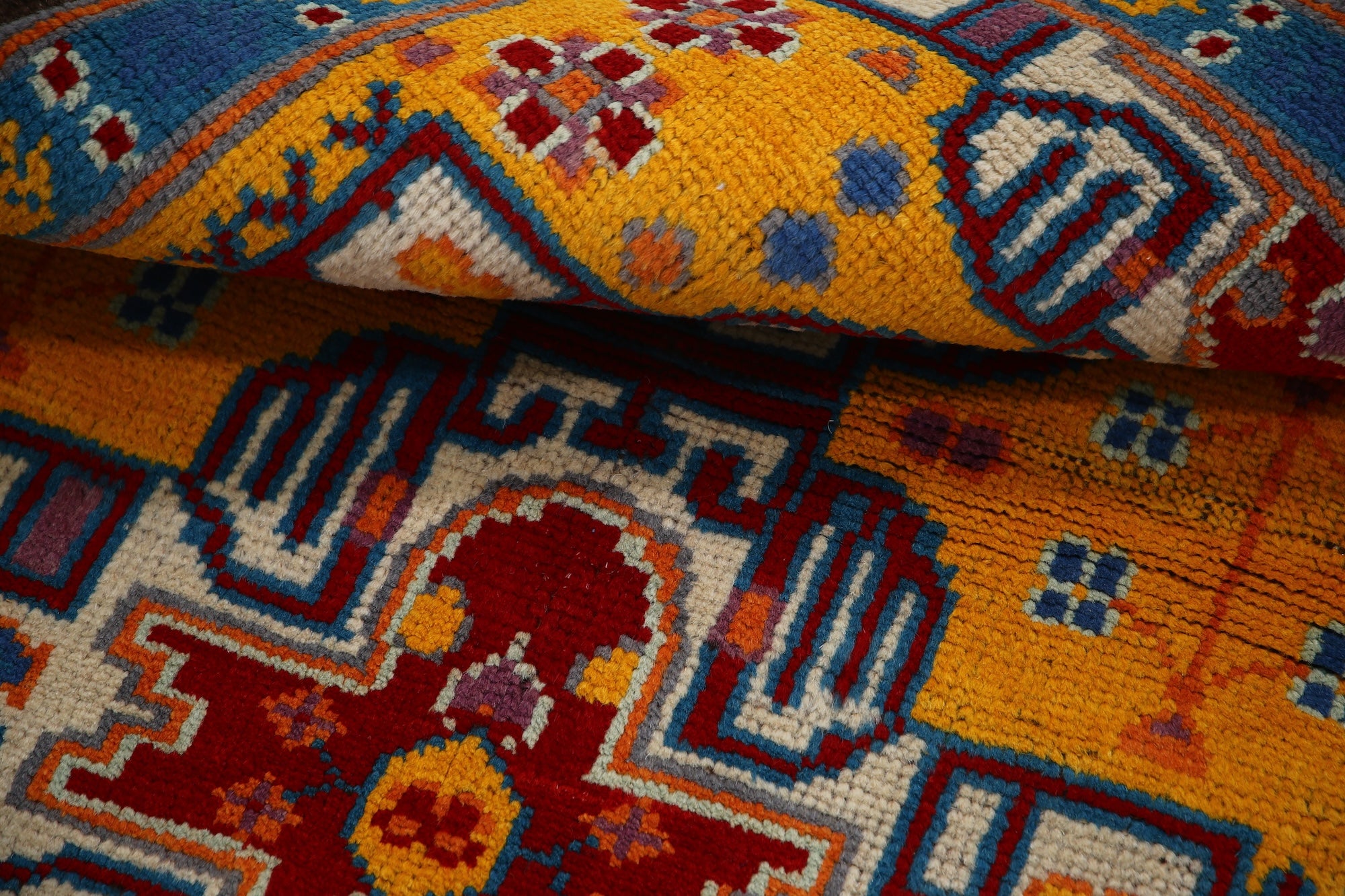 The hand-knotted Afghan wool rug features an intricate tribal geometric design, celebrated for its cultural heritage and timeless elegance. Woven by skilled artisans, it offers exceptional durability, making it ideal for high-traffic areas. Its unique patterns and premium wool blend tradition with modern sophistication, adding warmth and character to any interior.