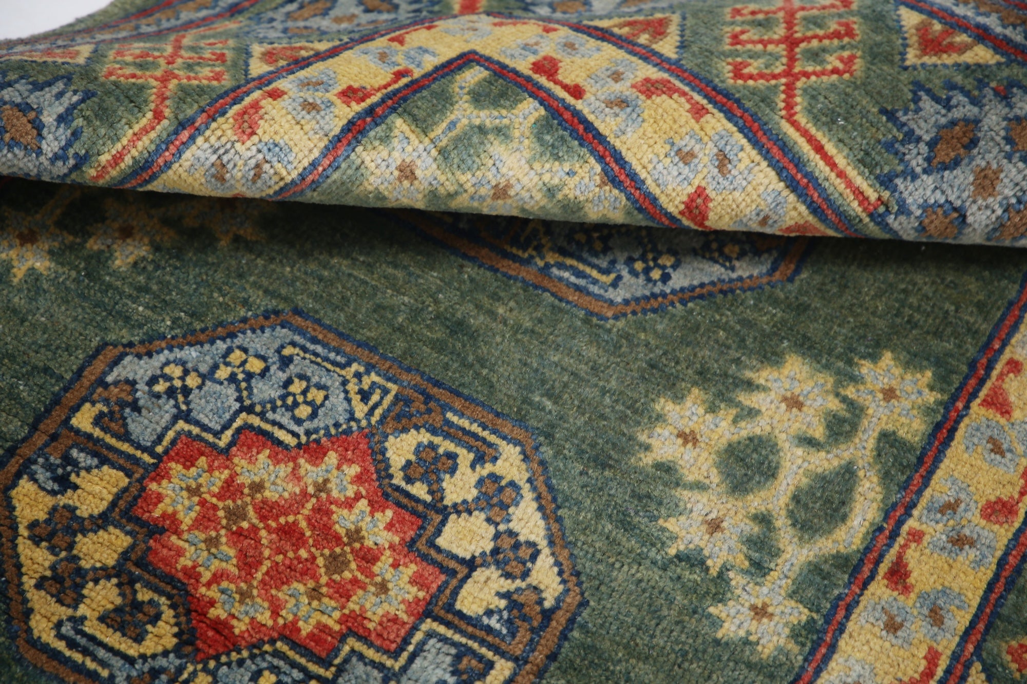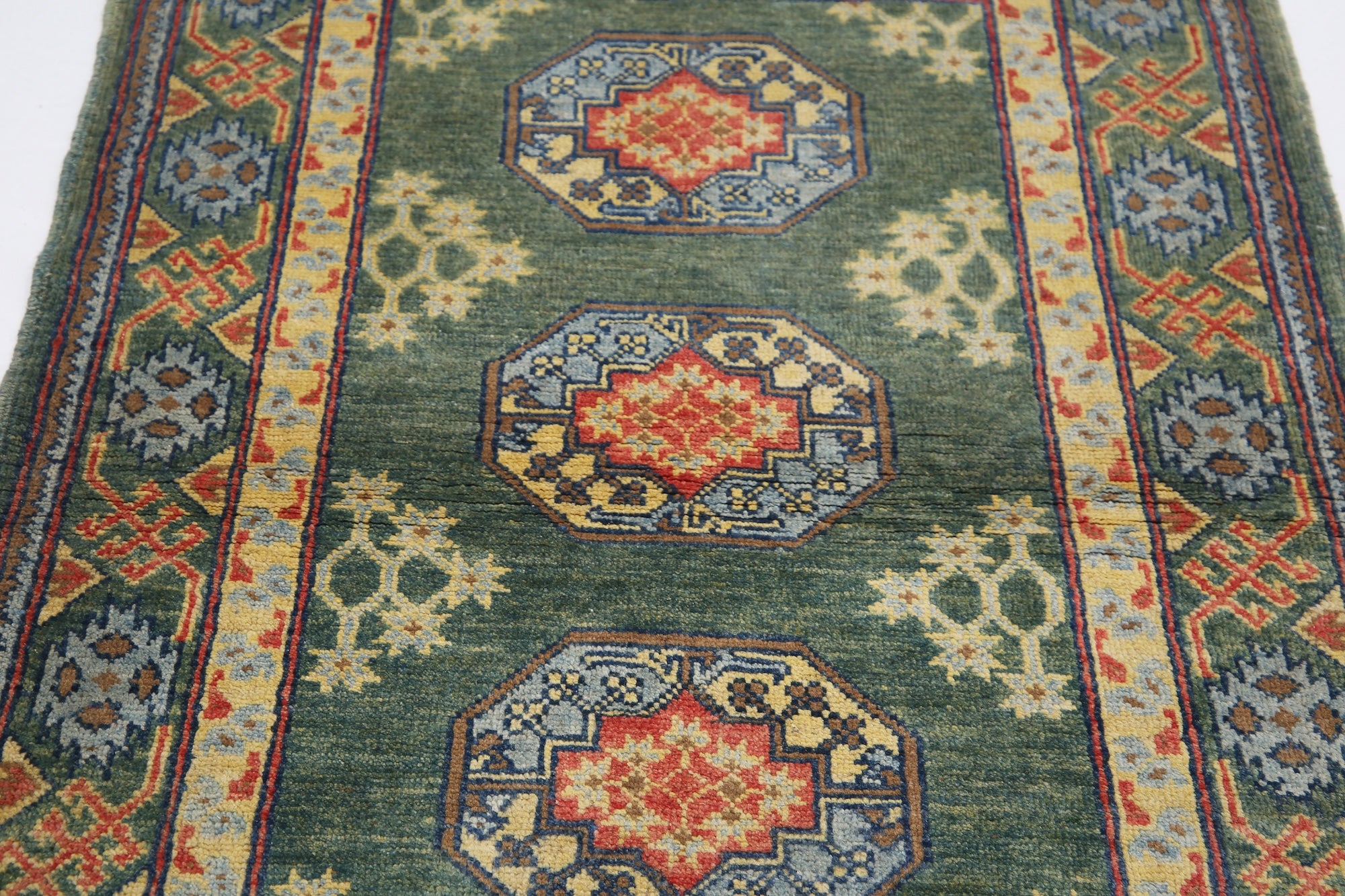 This artisan-crafted Afghan wool rug features a striking geometric tribal pattern, renowned for its cultural heritage and timeless appeal. Expertly hand-knotted by skilled weavers, it offers superior durability, making it perfect for high-traffic areas. Its intricate design and premium wool blend traditional craftsmanship with modern elegance, adding warmth and character to any space.