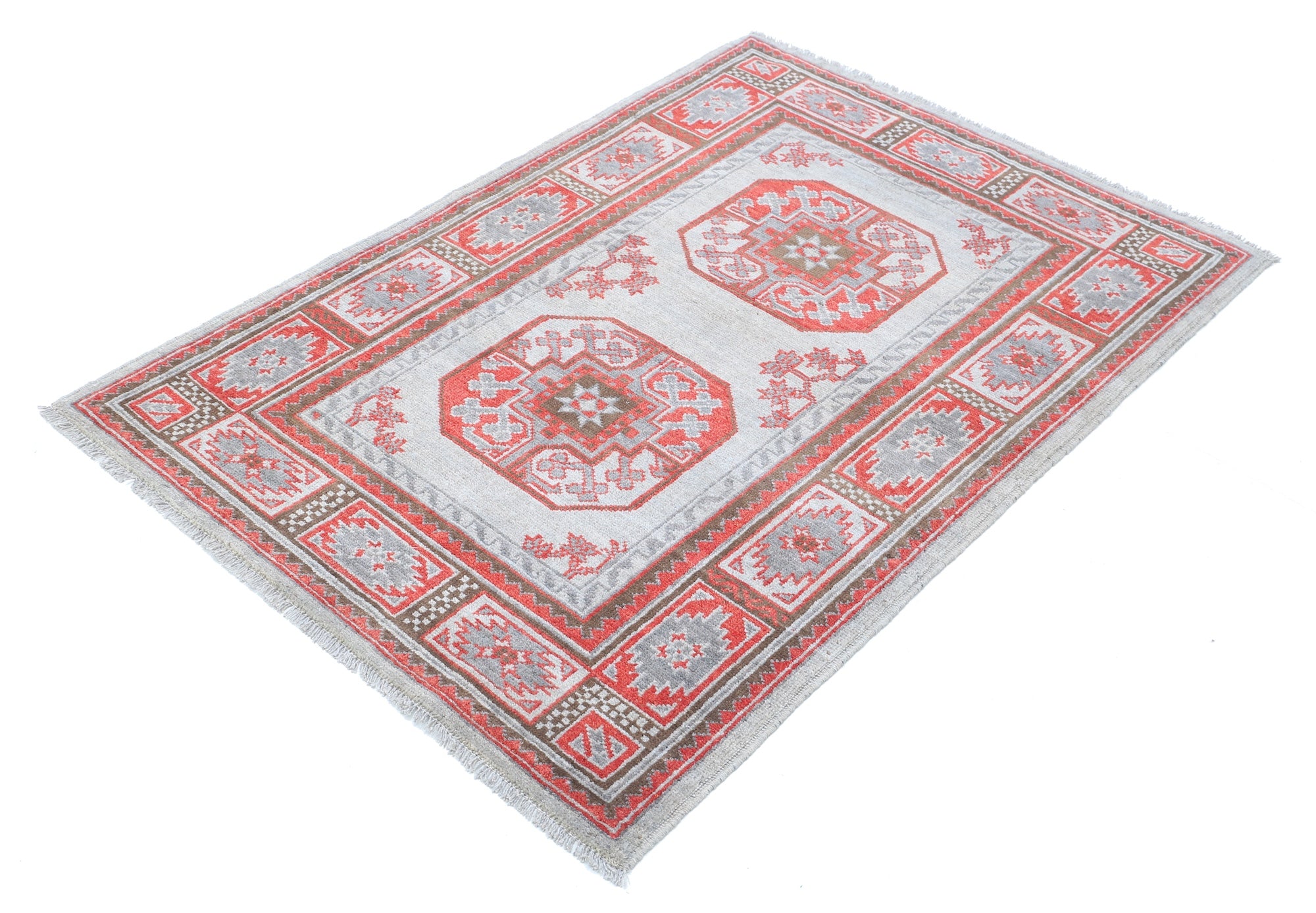 Hand-Knotted Distressed Vintage Wool Rug - 3'4" x 4'10"