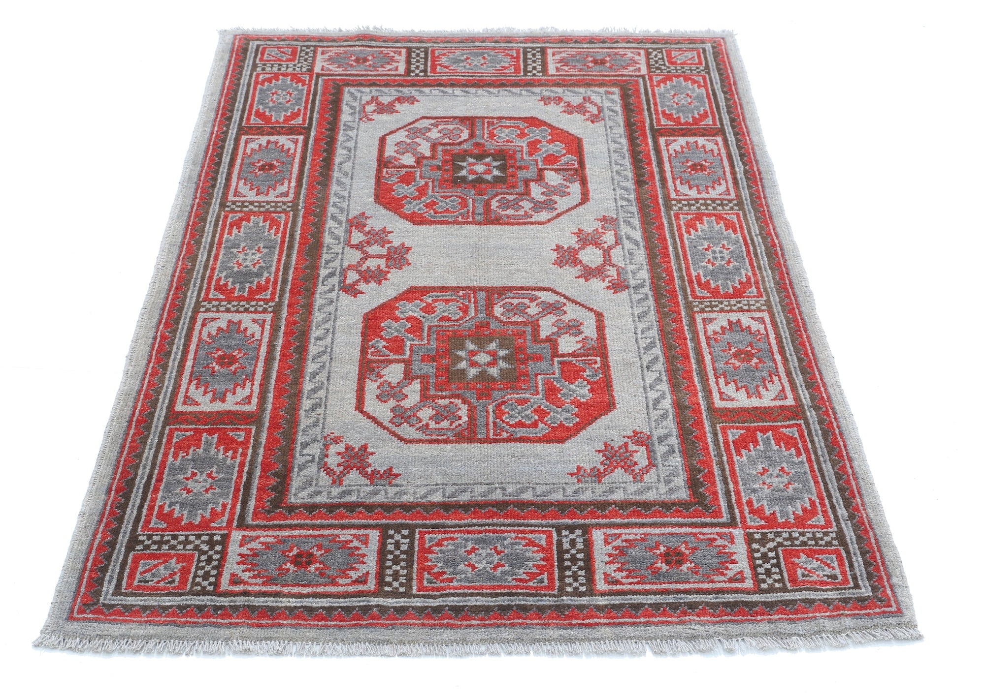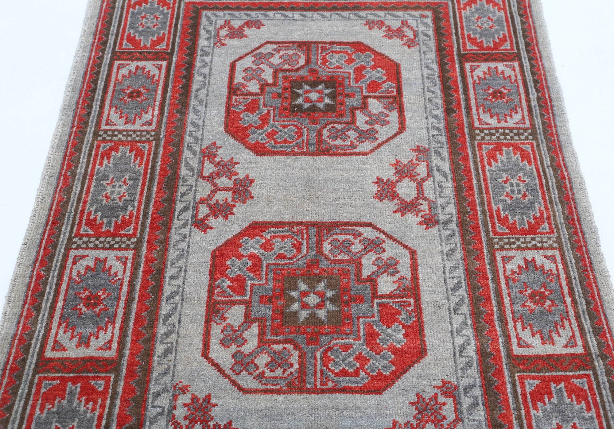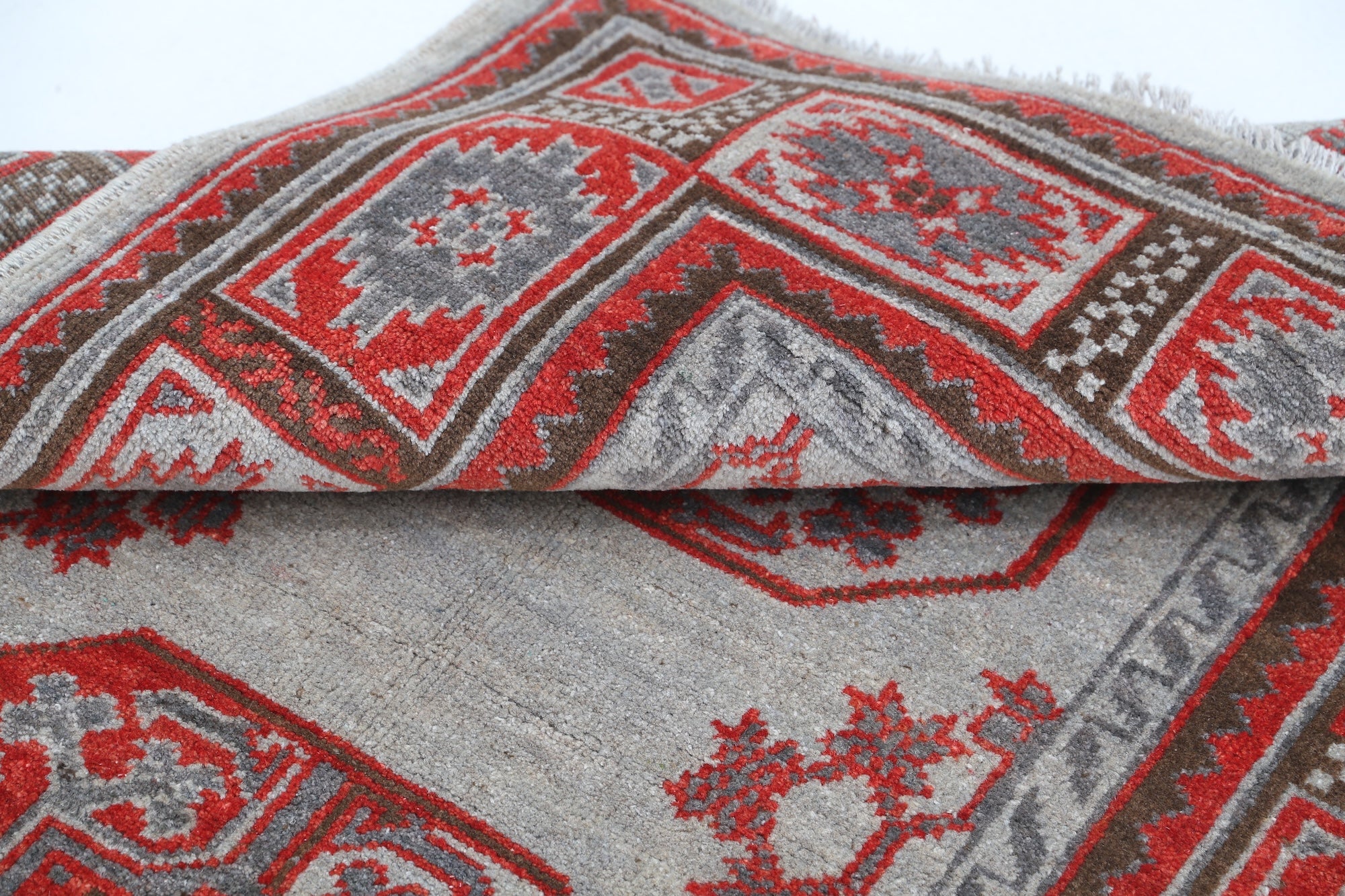 This artisan-crafted Afghan wool rug features a striking geometric tribal pattern, renowned for its cultural heritage and timeless appeal. Expertly hand-knotted by skilled weavers, it offers superior durability, making it perfect for high-traffic areas. Its intricate design and premium wool blend traditional craftsmanship with modern elegance, adding warmth and character to any space.