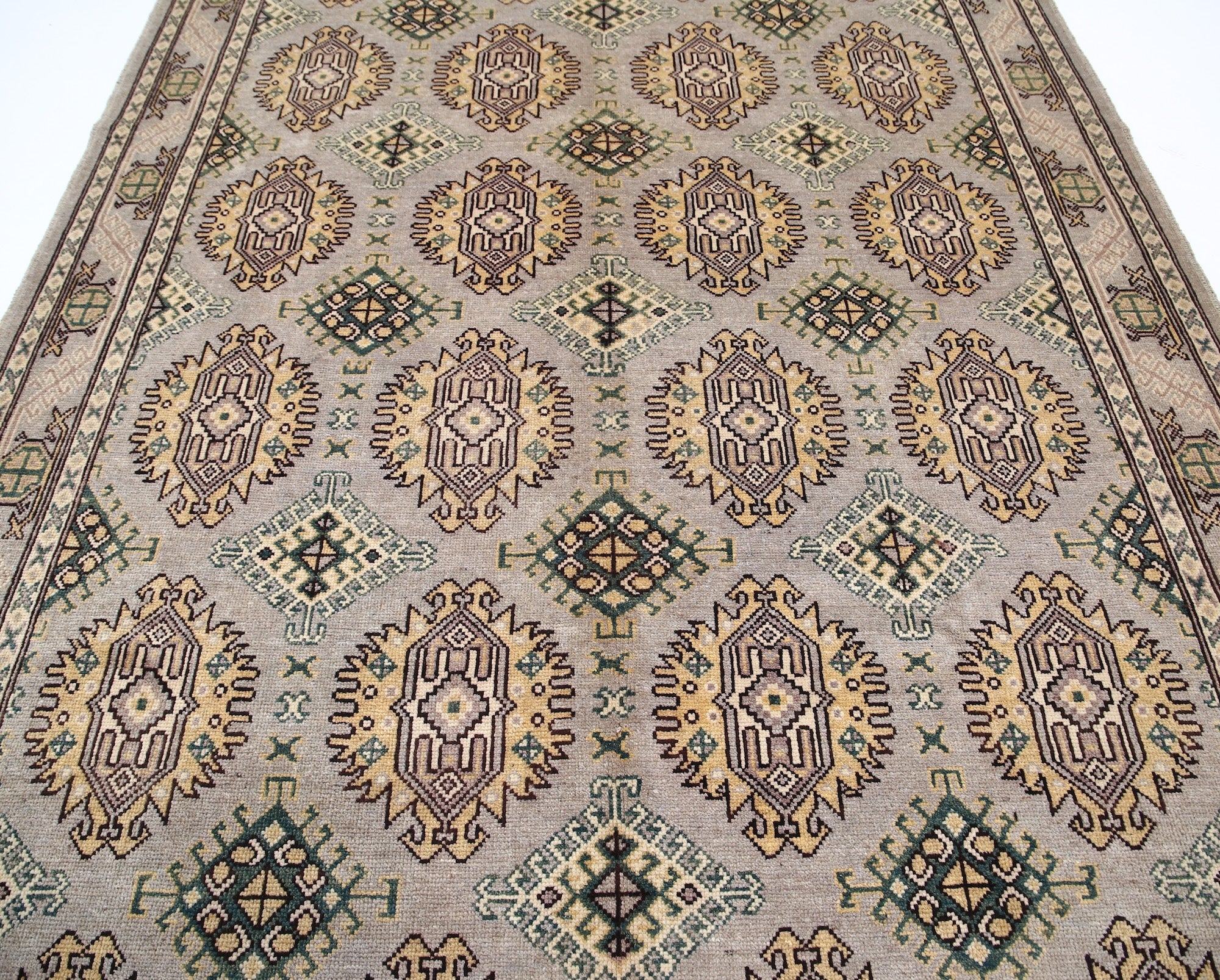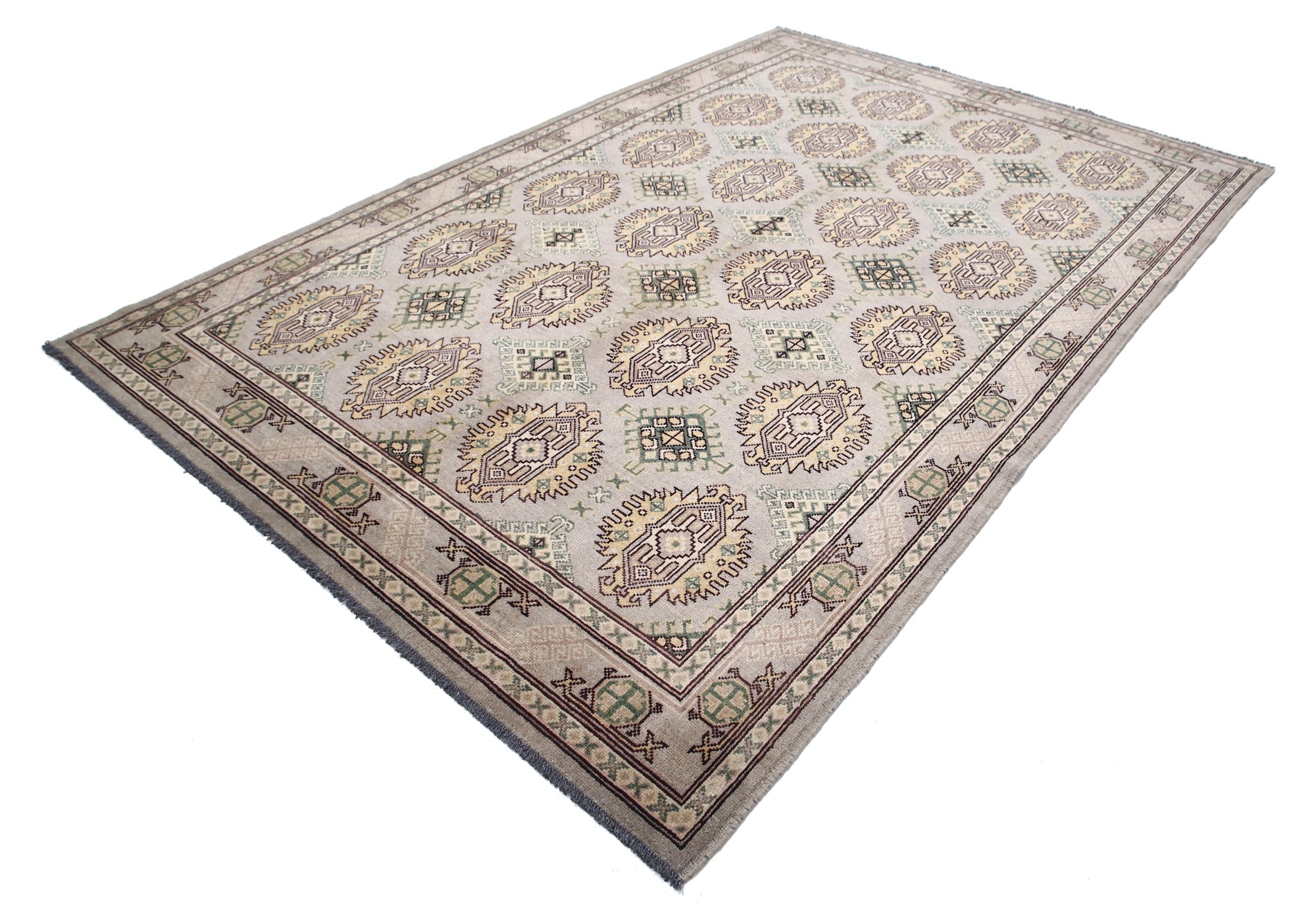 This artisan-crafted Afghan wool rug features a striking geometric tribal pattern, renowned for its cultural heritage and timeless appeal. Expertly hand-knotted by skilled weavers, it offers superior durability, making it perfect for high-traffic areas. Its intricate design and premium wool blend traditional craftsmanship with modern elegance, adding warmth and character to any space.