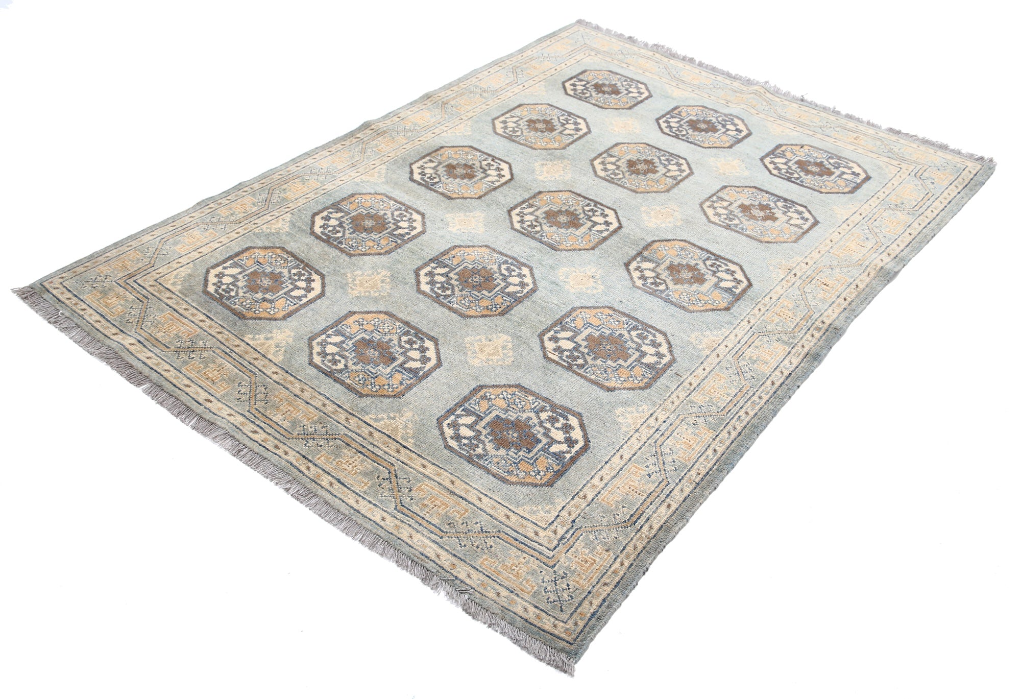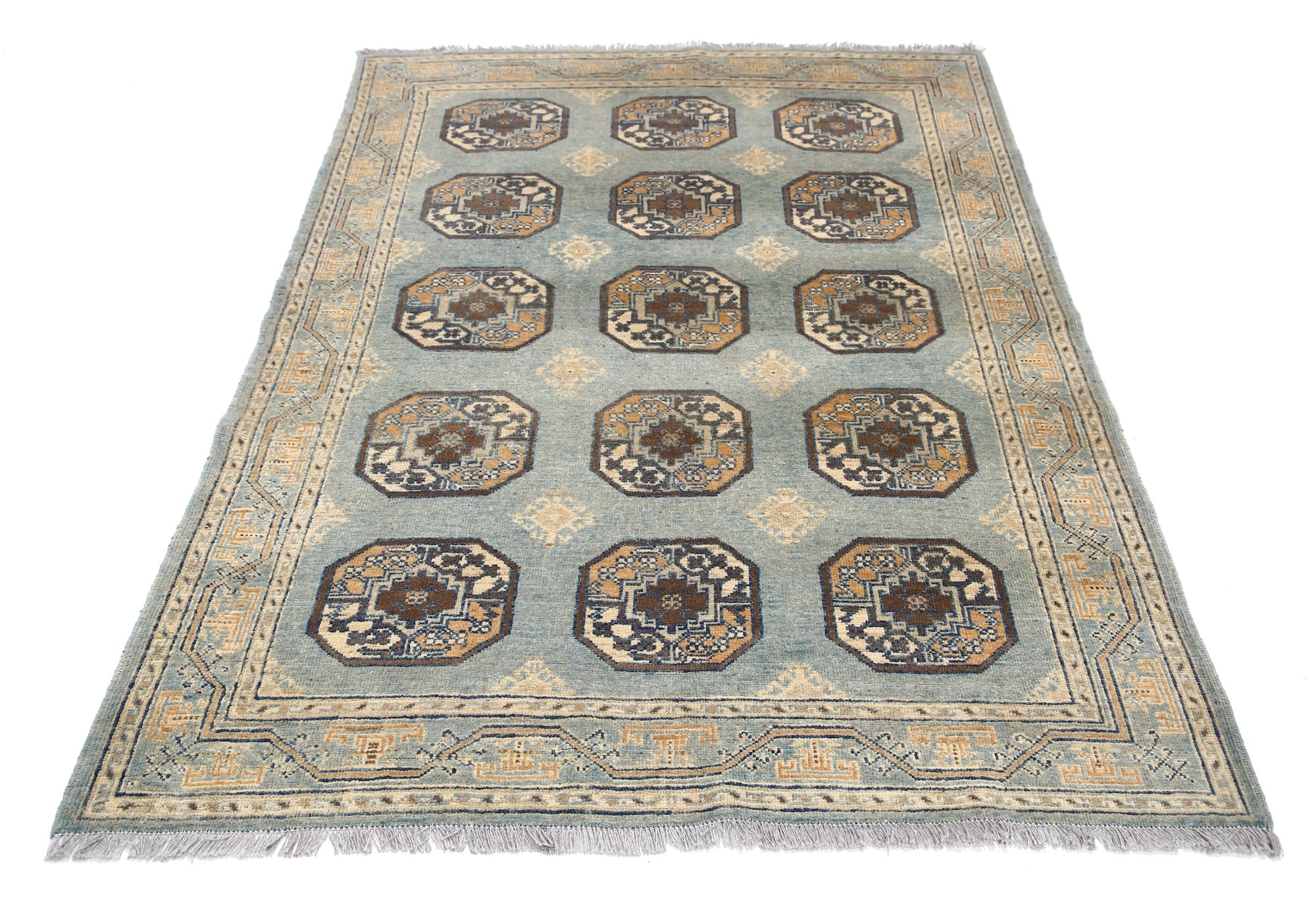 This artisan-crafted Afghan wool rug features a striking geometric tribal pattern, renowned for its cultural heritage and timeless appeal. Expertly hand-knotted by skilled weavers, it offers superior durability, making it perfect for high-traffic areas. Its intricate design and premium wool blend traditional craftsmanship with modern elegance, adding warmth and character to any space.