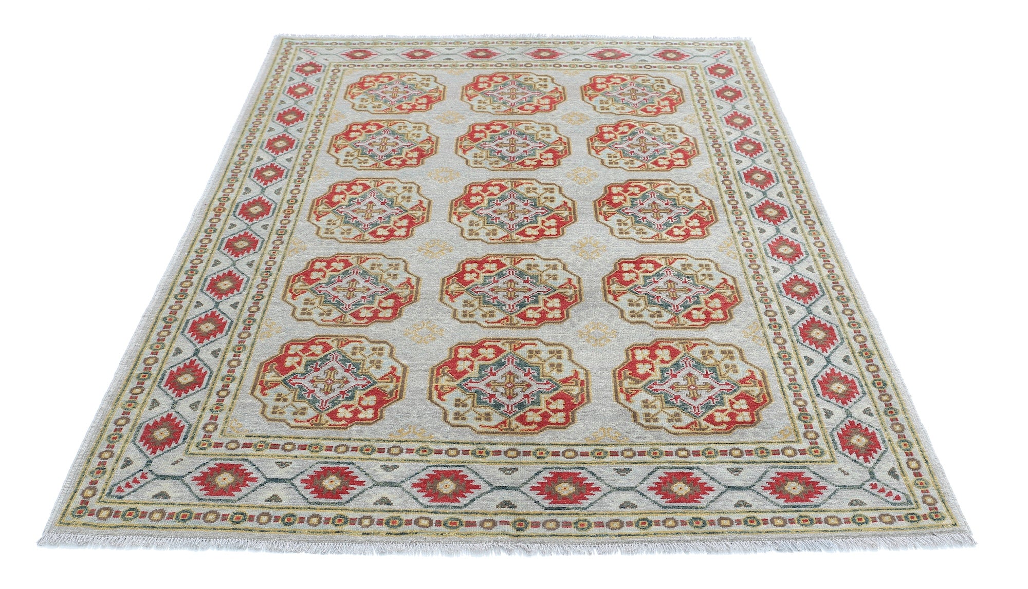 This artisan-crafted Afghan wool rug features a striking geometric tribal pattern, renowned for its cultural heritage and timeless appeal. Expertly hand-knotted by skilled weavers, it offers superior durability, making it perfect for high-traffic areas. Its intricate design and premium wool blend traditional craftsmanship with modern elegance, adding warmth and character to any space.
