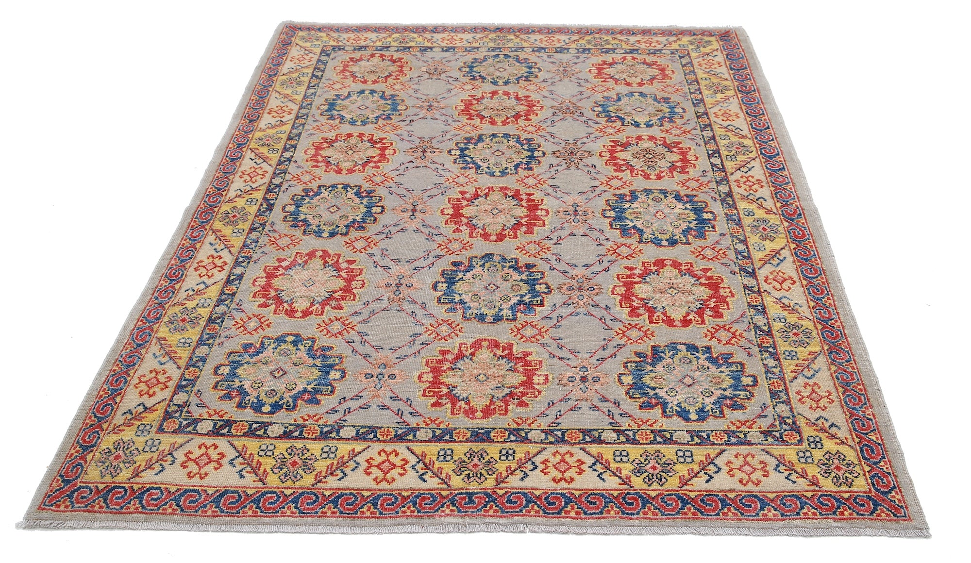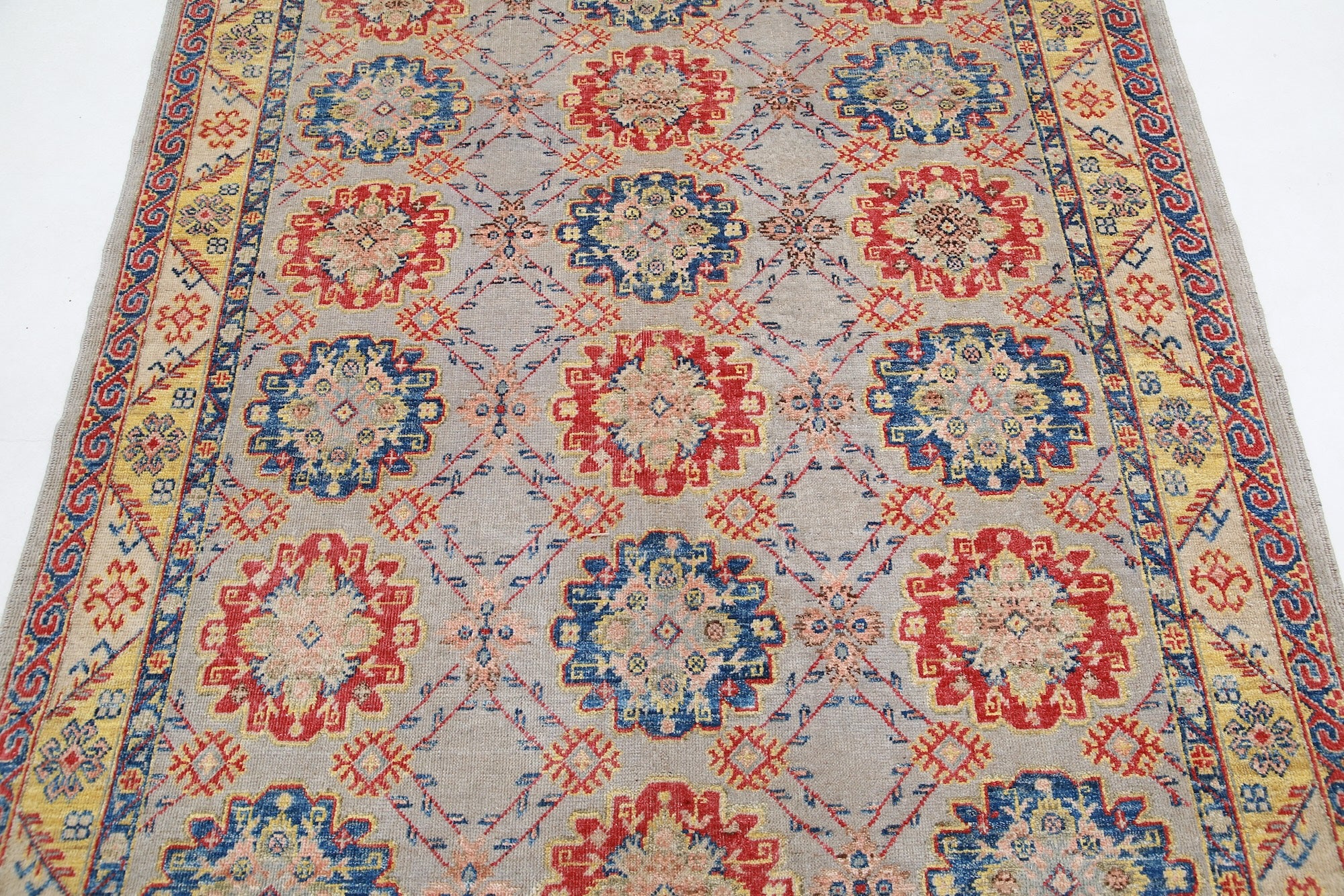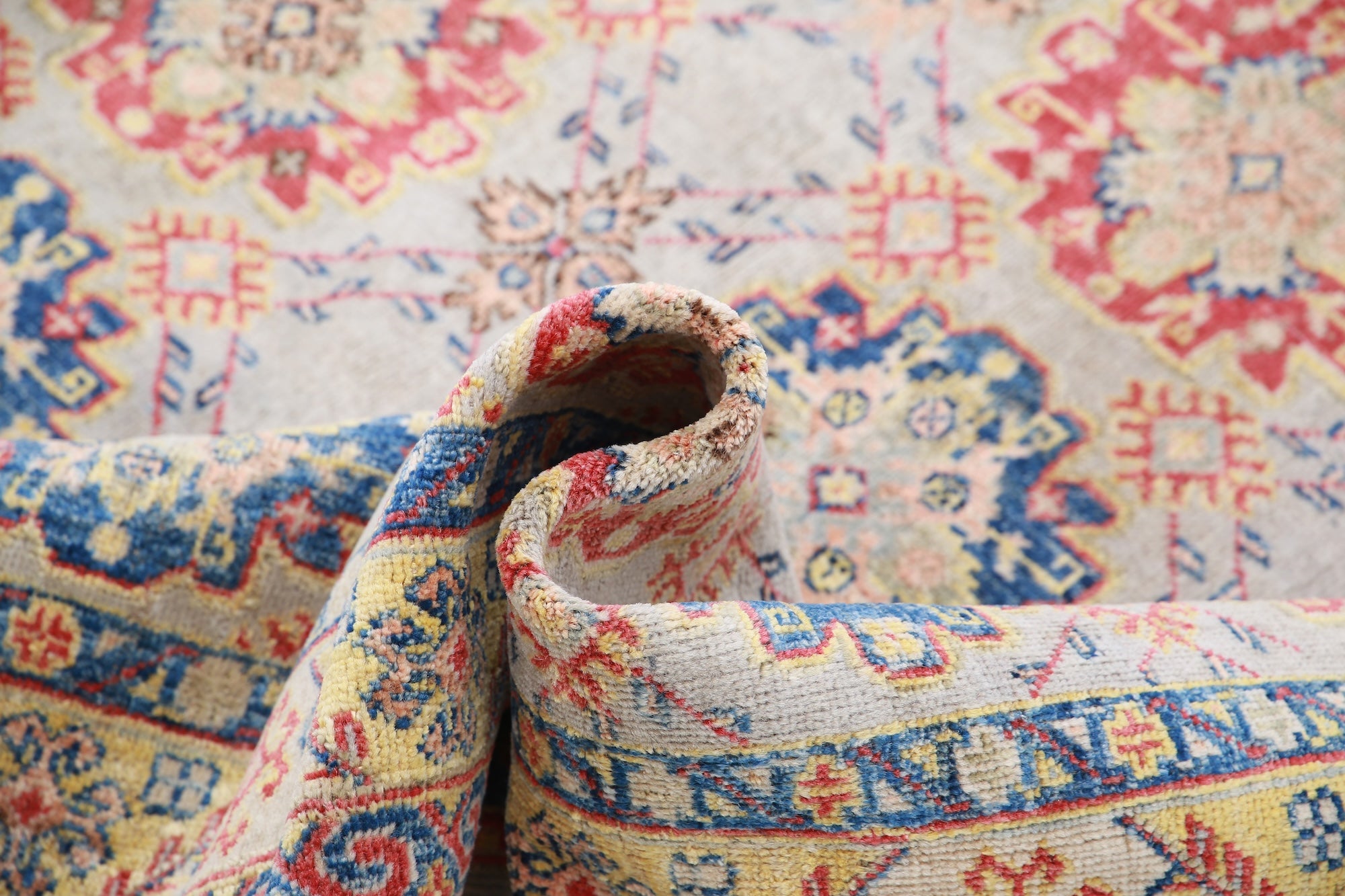 This artisan-crafted Afghan wool rug features a striking geometric tribal pattern, renowned for its cultural heritage and timeless appeal. Expertly hand-knotted by skilled weavers, it offers superior durability, making it perfect for high-traffic areas. Its intricate design and premium wool blend traditional craftsmanship with modern elegance, adding warmth and character to any space.