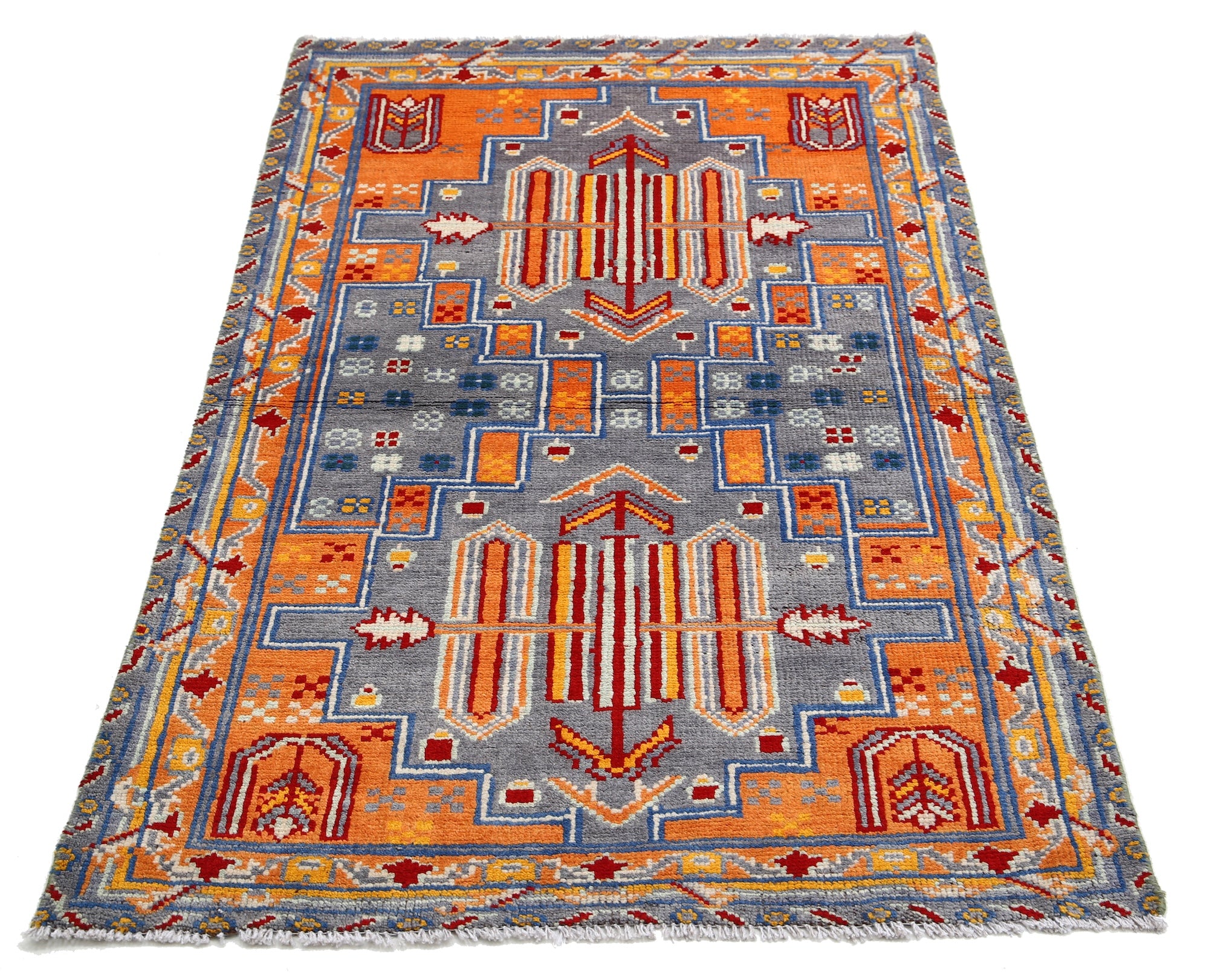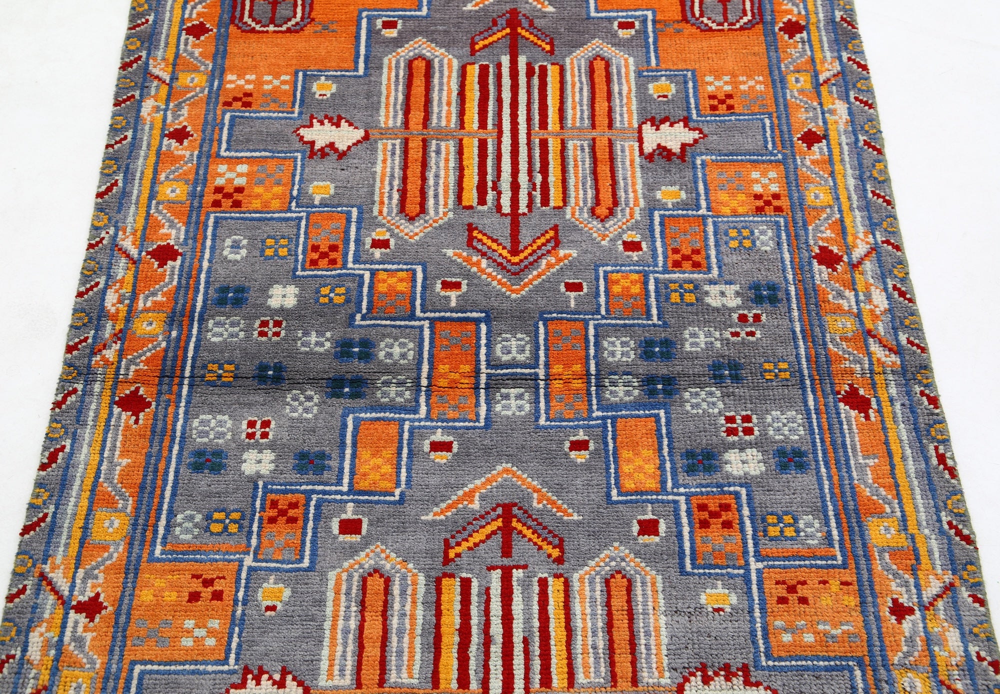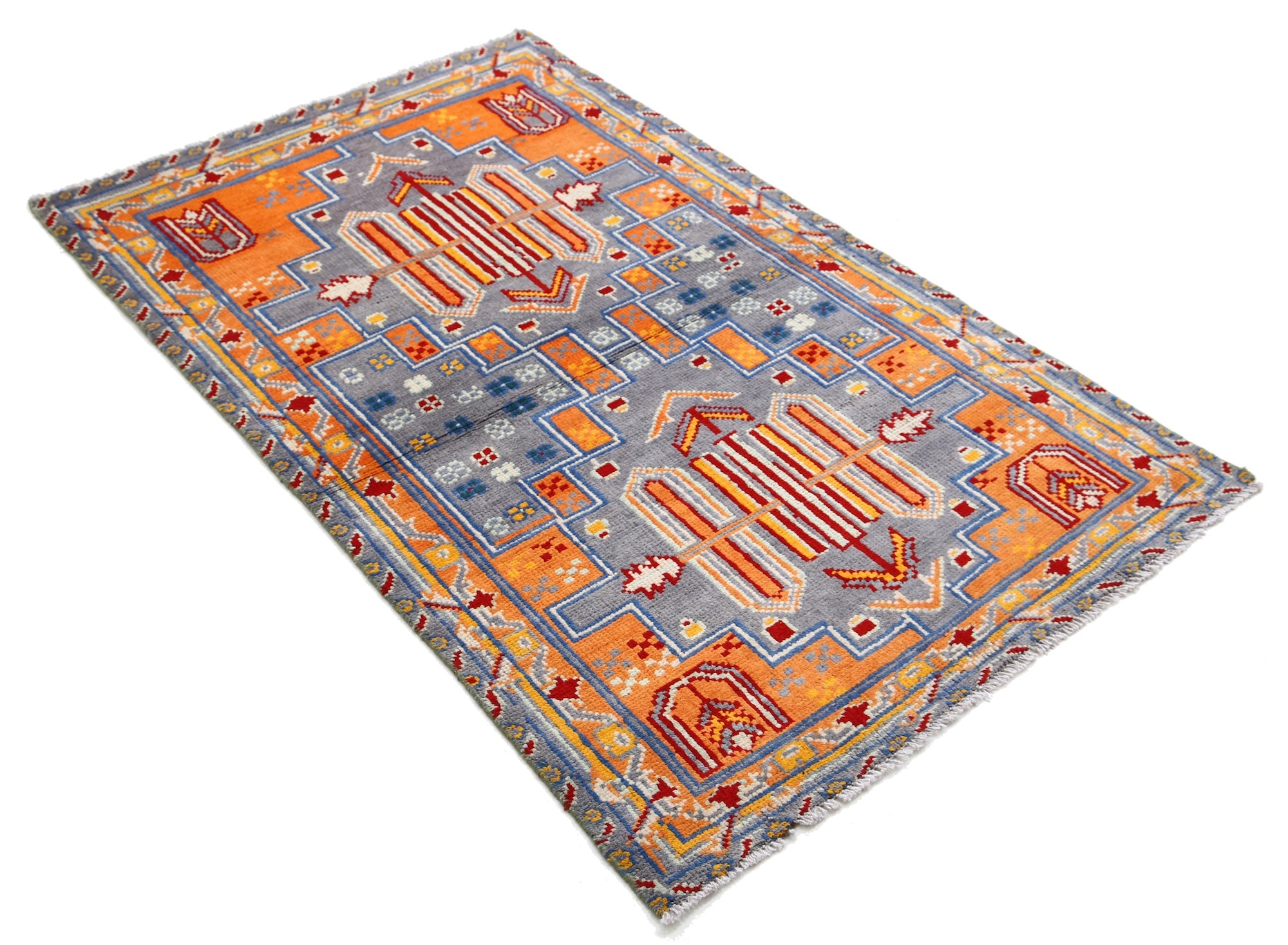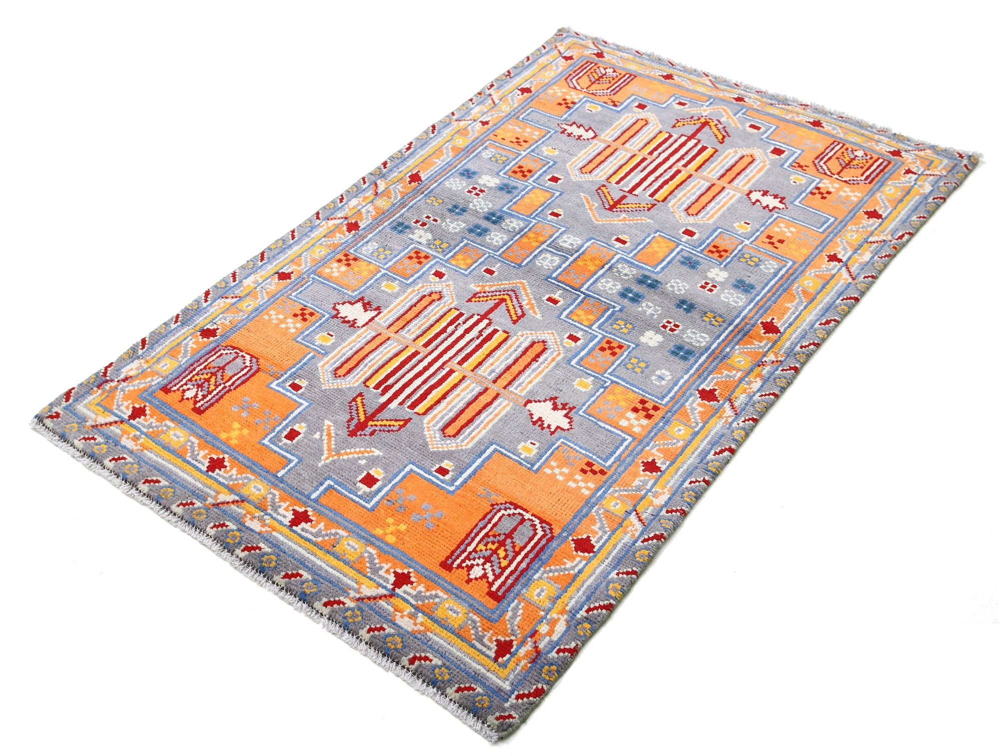 Hand-Knotted Tribal Geometric Wool Rug - 3'2" x 5'0"