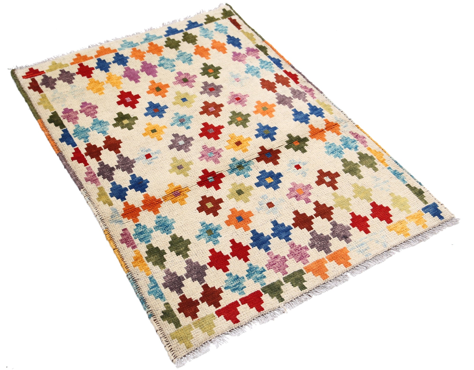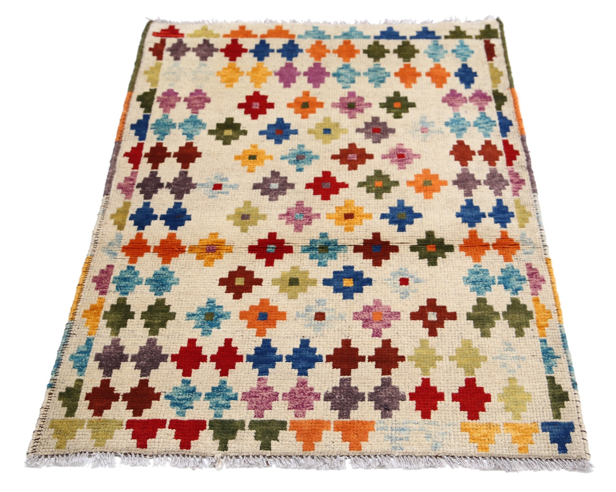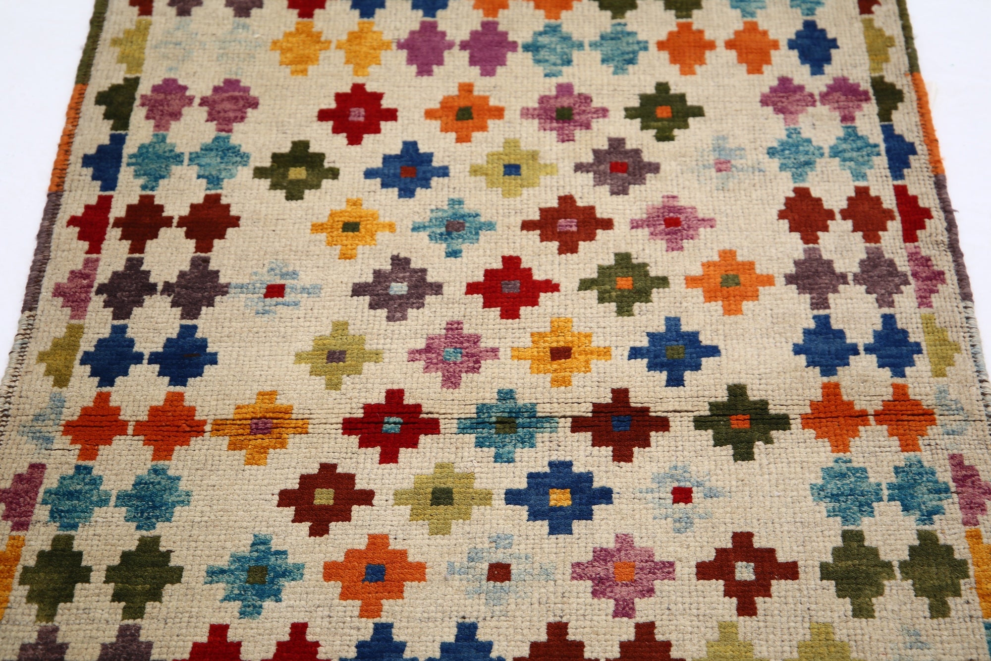 Hand-Knotted Tribal Geometric Wool Rug - 2'10" x 4'0"