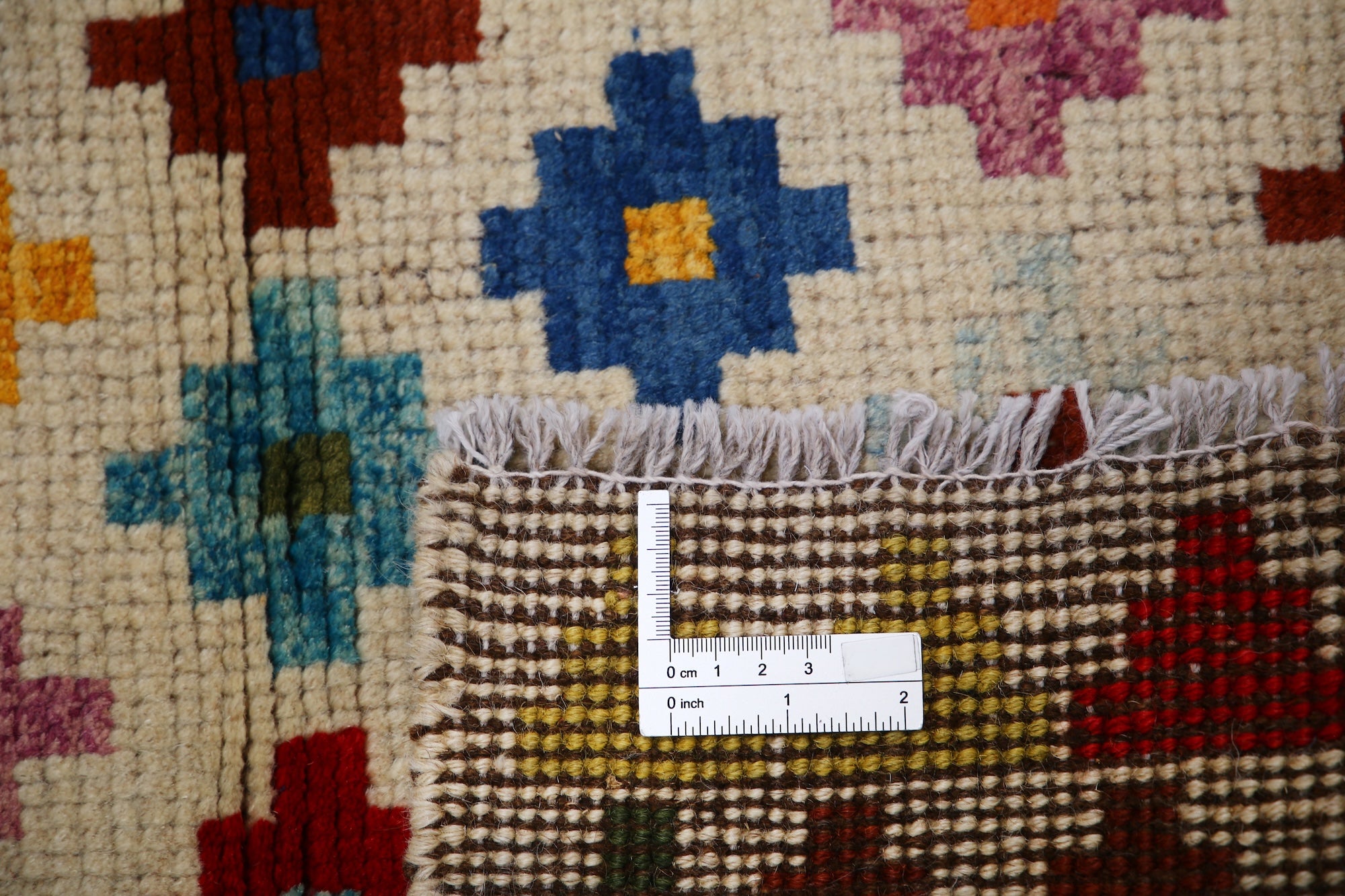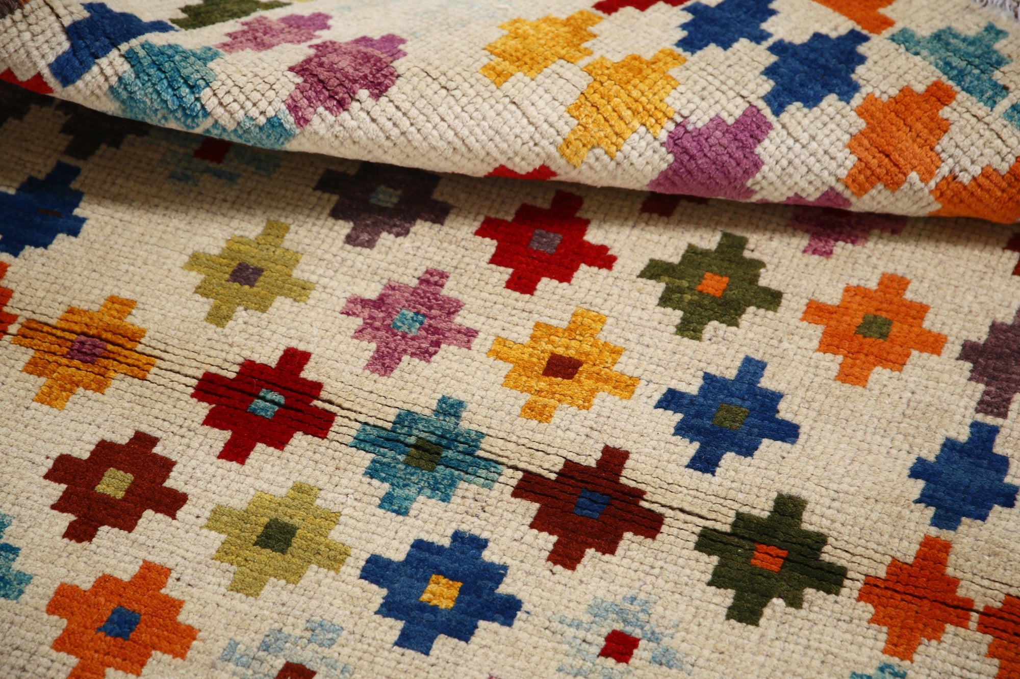The hand-knotted Afghan wool rug features an intricate tribal geometric design, celebrated for its cultural heritage and timeless elegance. Woven by skilled artisans, it offers exceptional durability, making it ideal for high-traffic areas. Its unique patterns and premium wool blend tradition with modern sophistication, adding warmth and character to any interior.