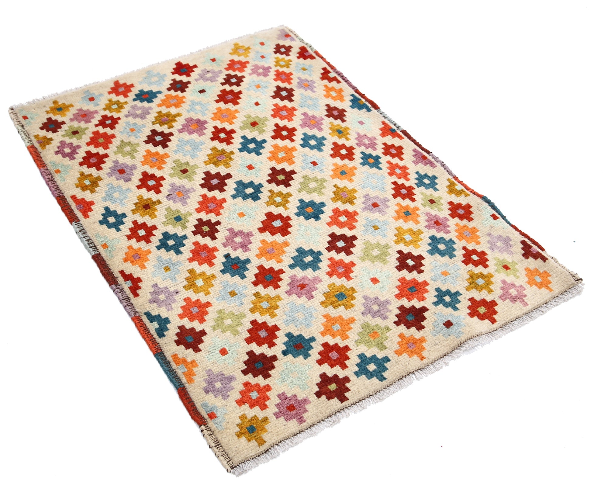 Hand-Knotted Tribal Geometric Wool Rug - 2'10" x 4'0"