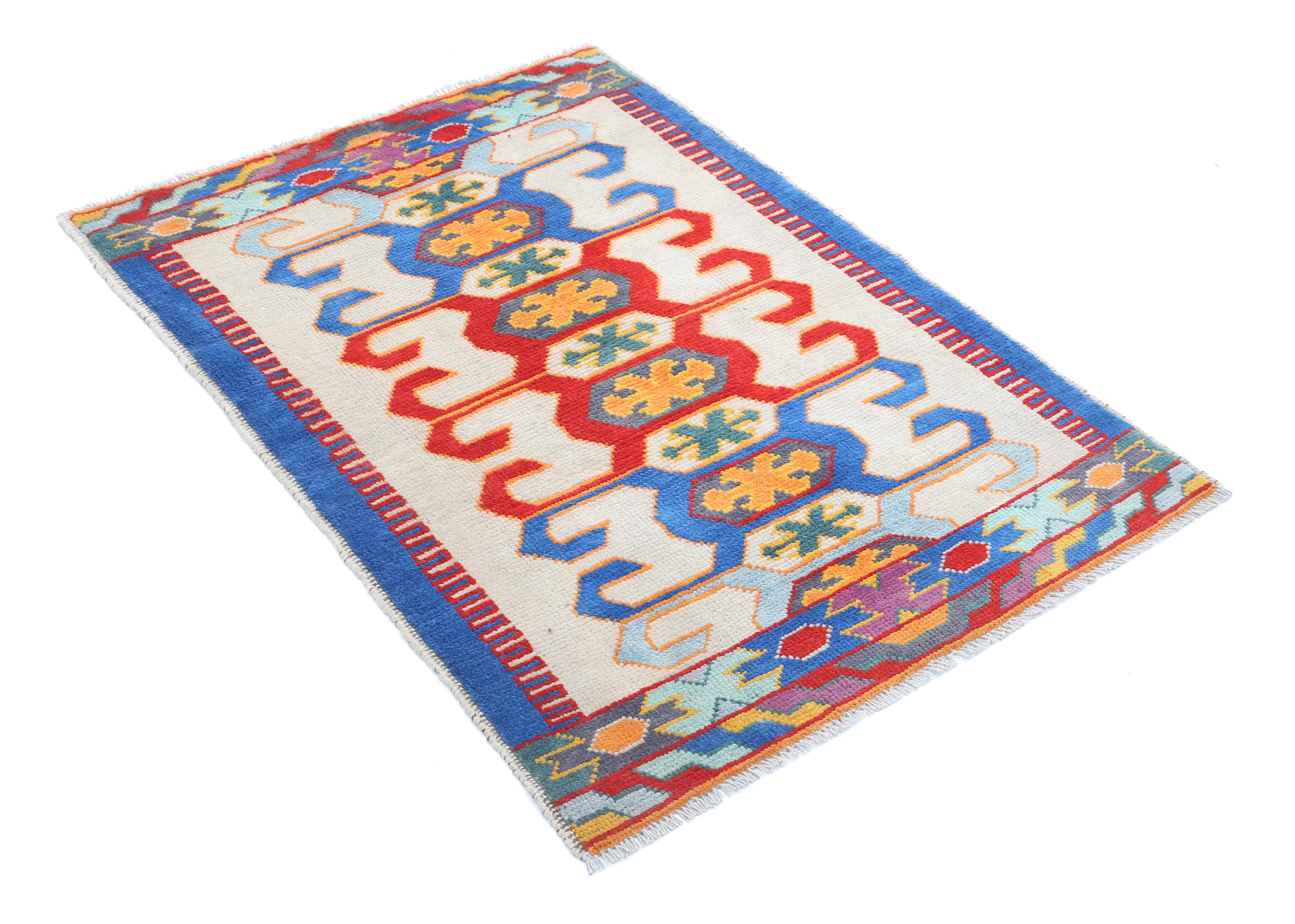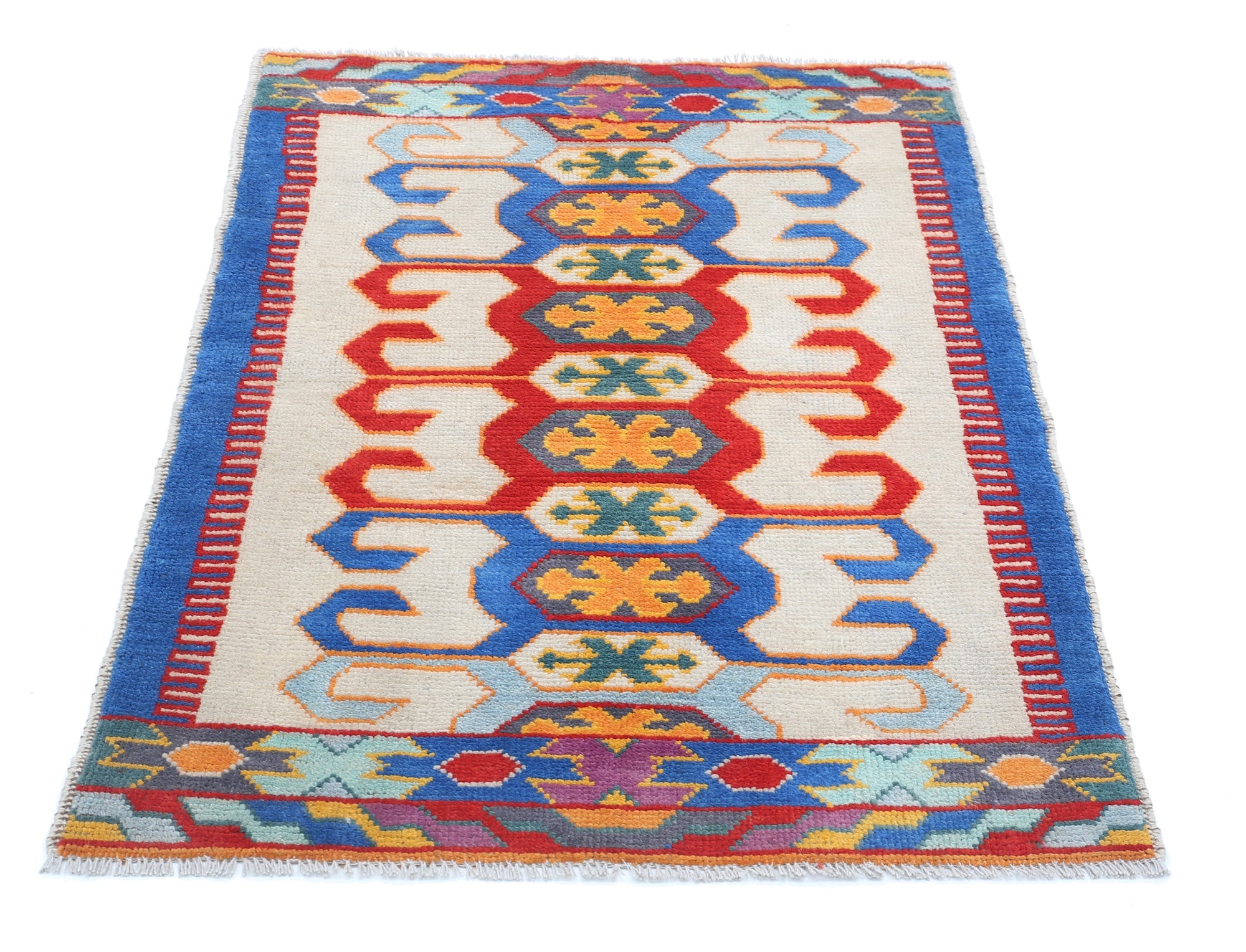 Hand-Knotted Tribal Geometric Wool Rug - 2'11" x 4'2"