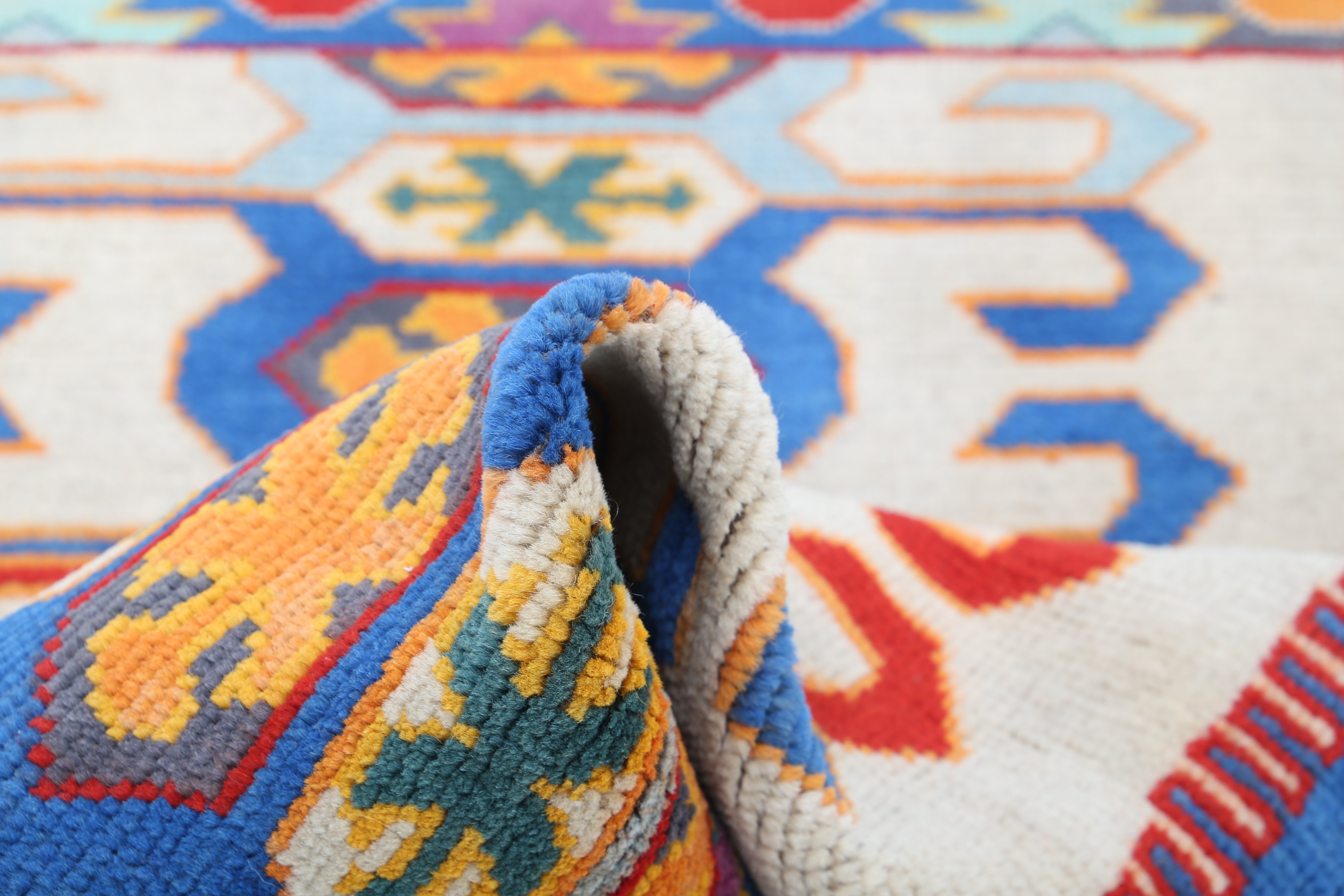 The hand-knotted Afghan wool rug features an intricate tribal geometric design, celebrated for its cultural heritage and timeless elegance. Woven by skilled artisans, it offers exceptional durability, making it ideal for high-traffic areas. Its unique patterns and premium wool blend tradition with modern sophistication, adding warmth and character to any interior.