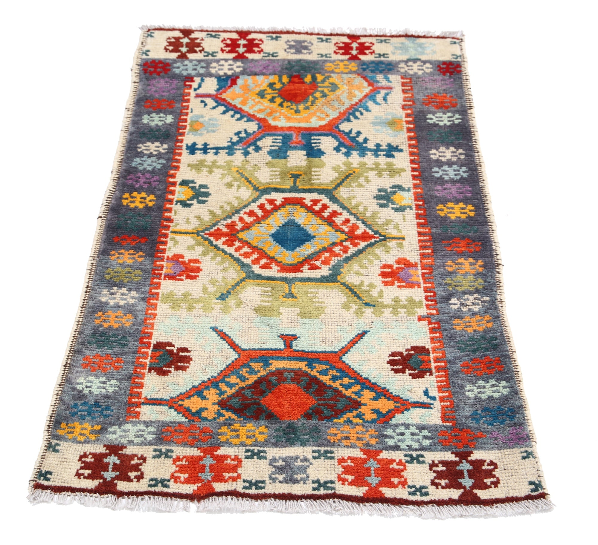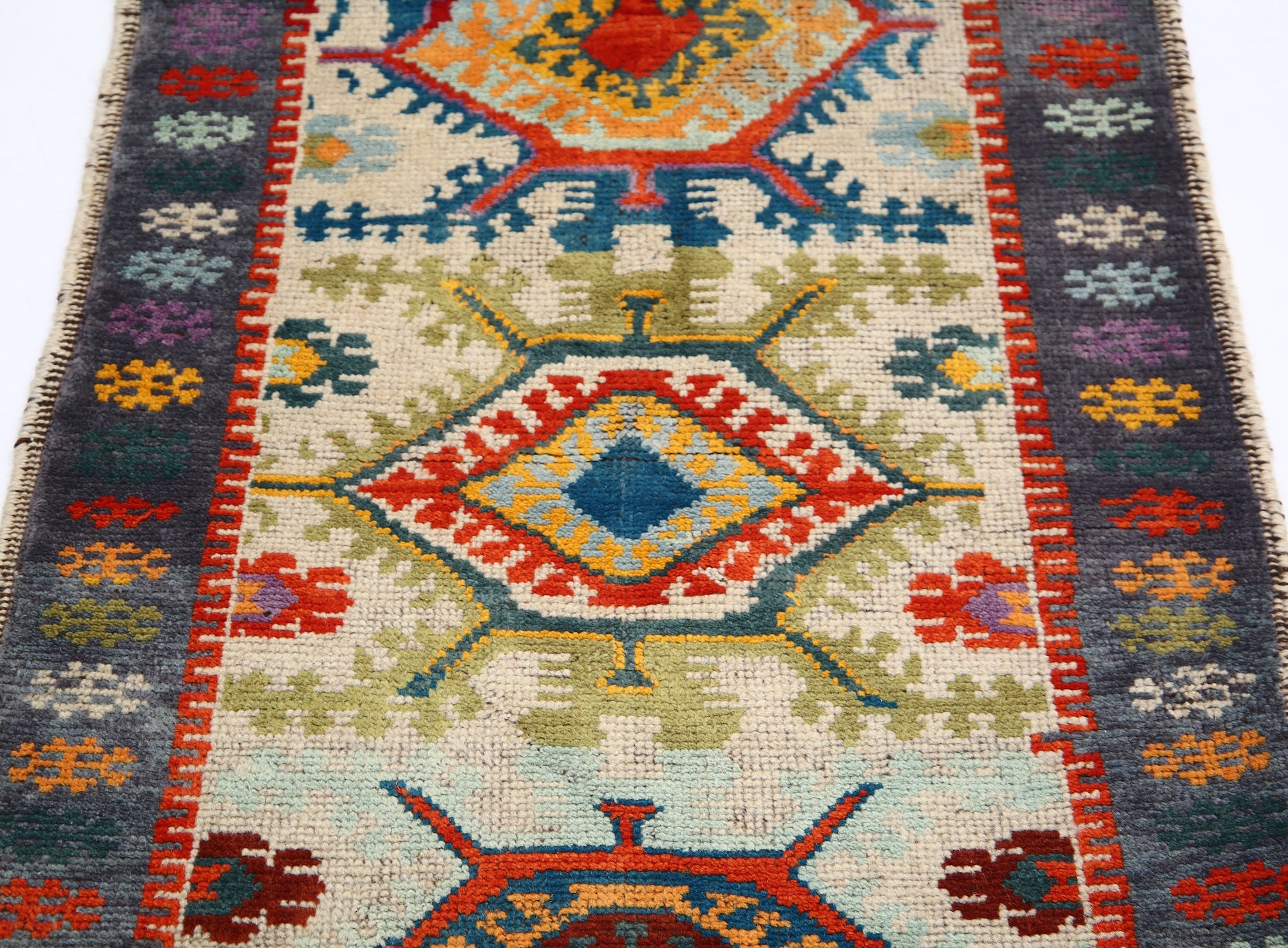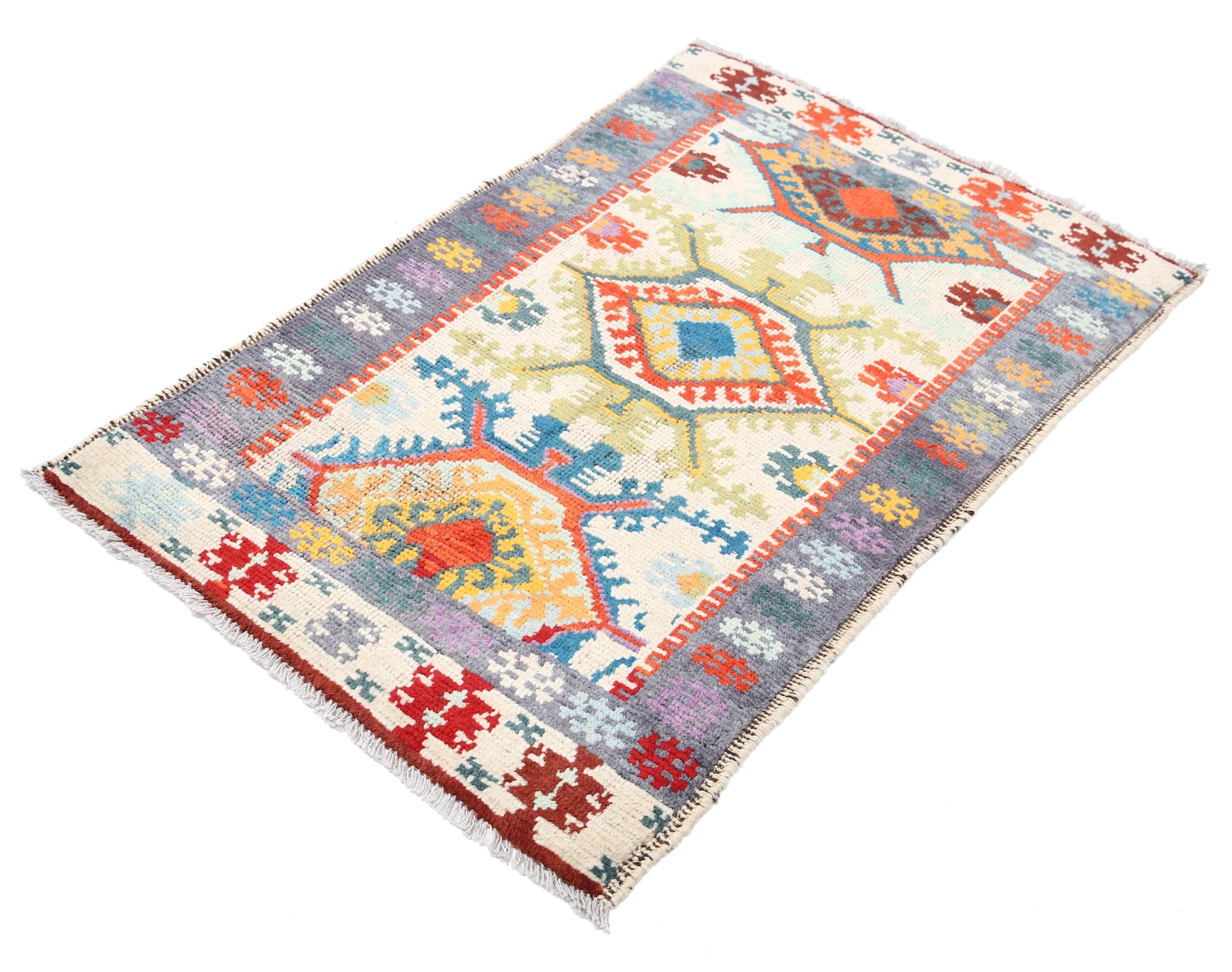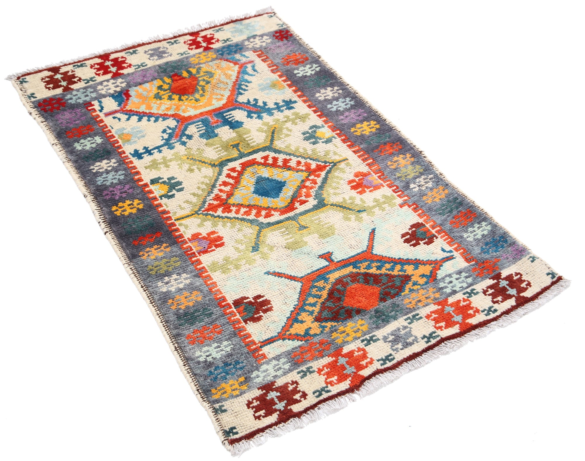 Hand-Knotted Tribal Geometric Wool Rug - 2'7" x 4'0"