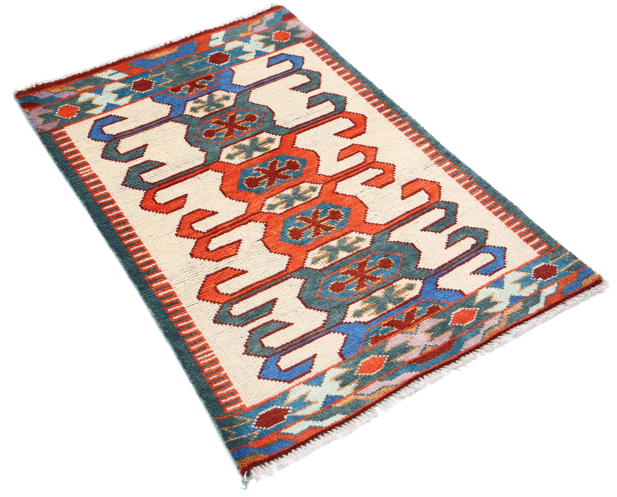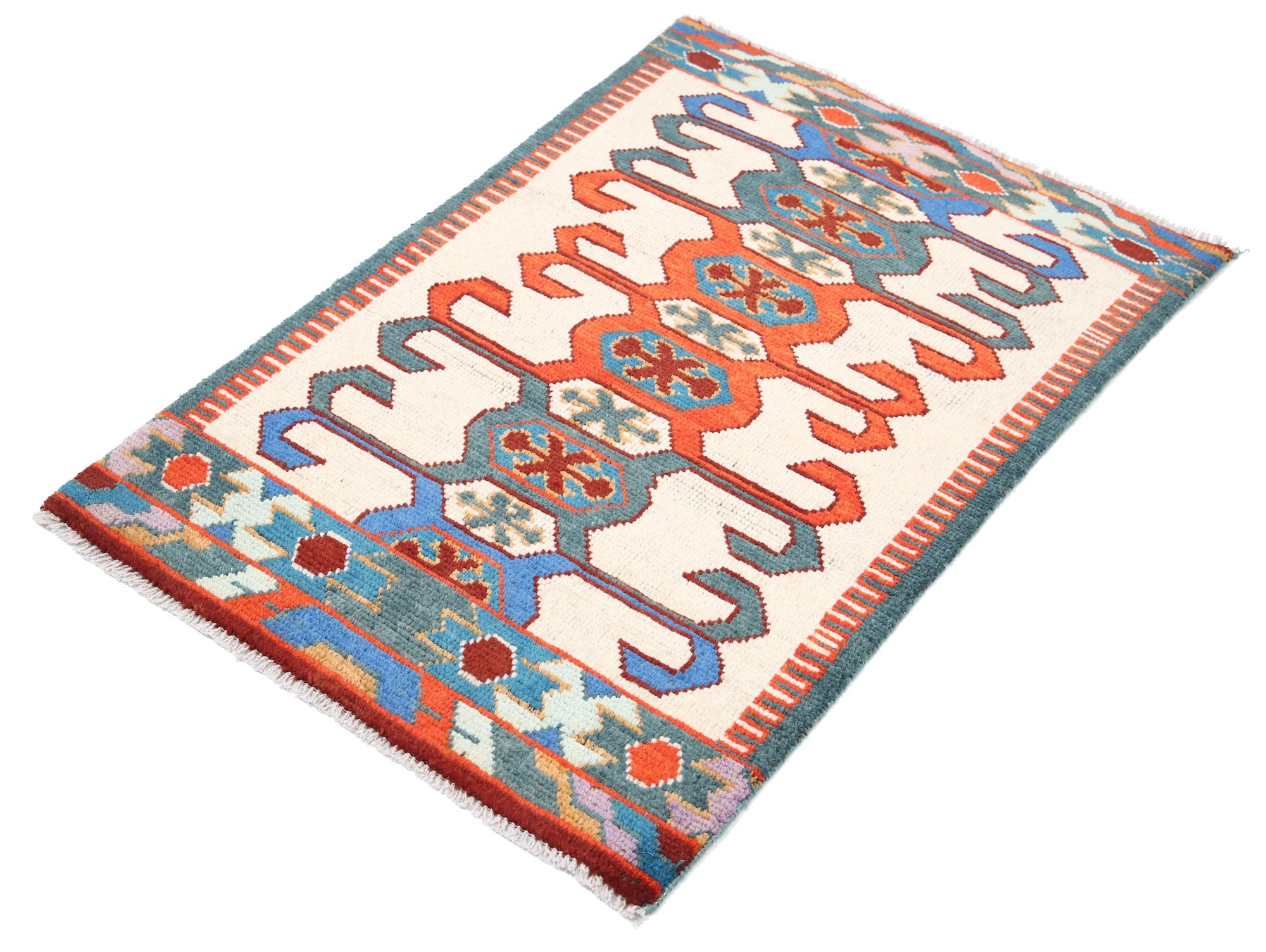 The hand-knotted Afghan wool rug features an intricate tribal geometric design, celebrated for its cultural heritage and timeless elegance. Woven by skilled artisans, it offers exceptional durability, making it ideal for high-traffic areas. Its unique patterns and premium wool blend tradition with modern sophistication, adding warmth and character to any interior.