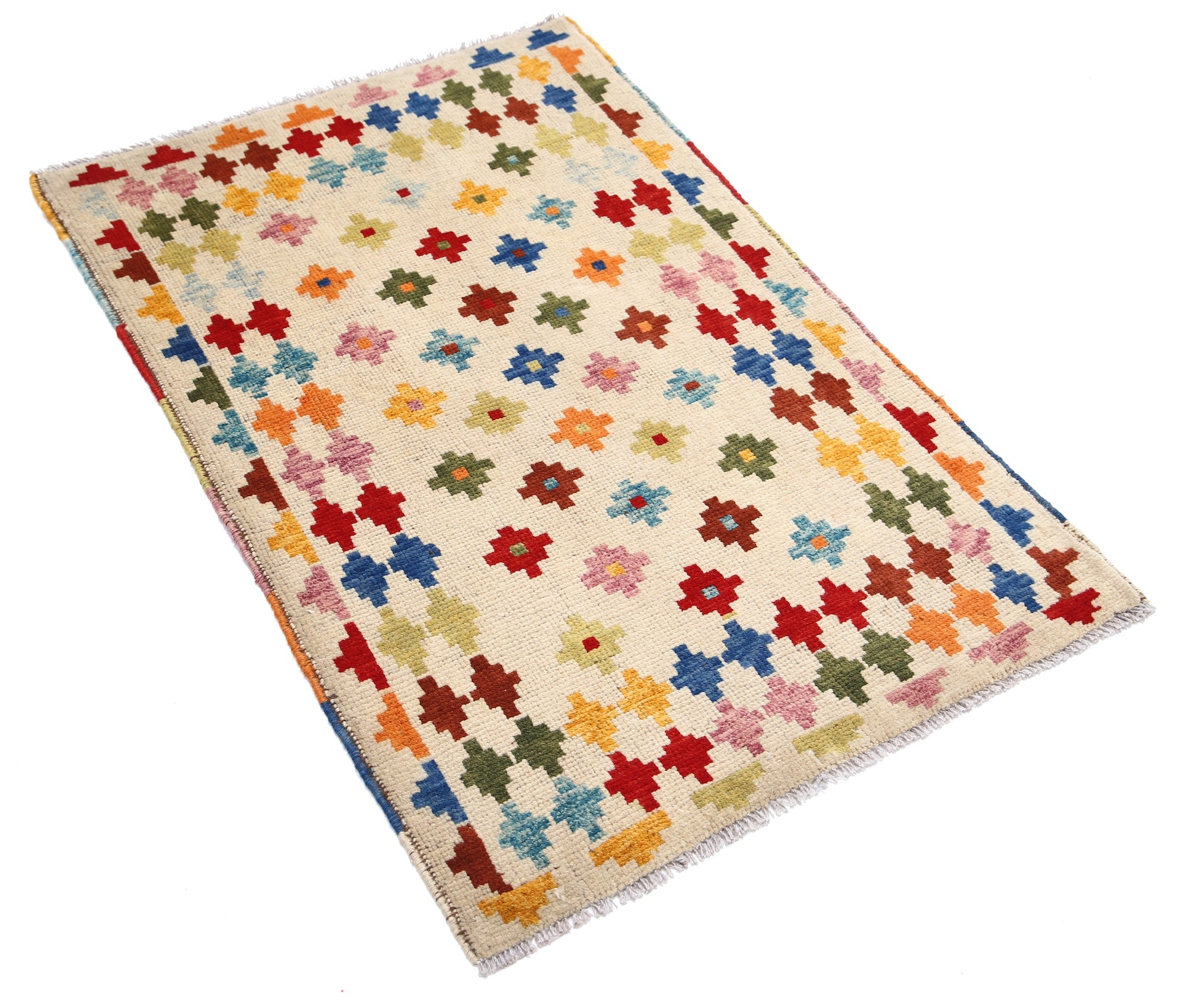Hand-Knotted Tribal Geometric Wool Rug - 2'8" x 4'2"