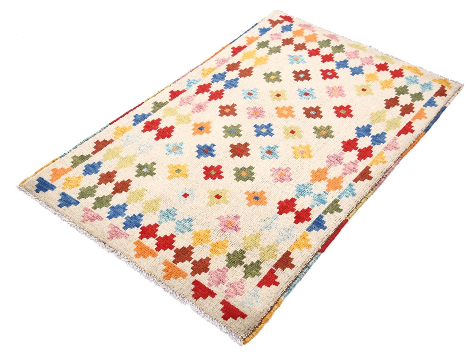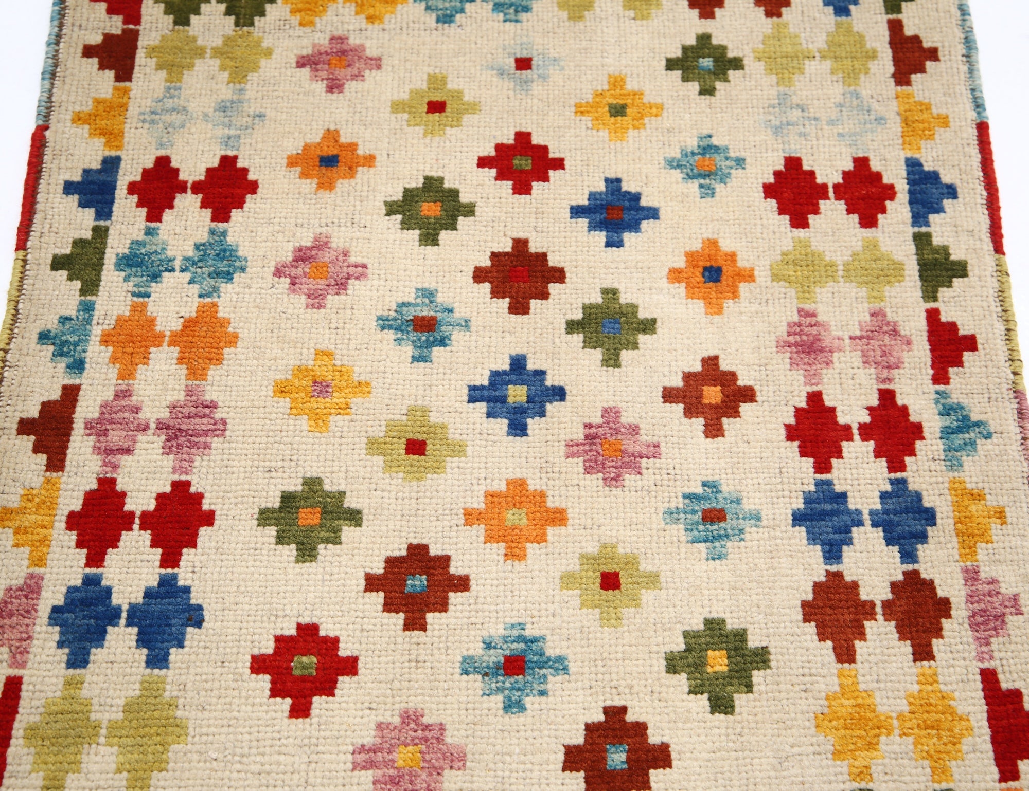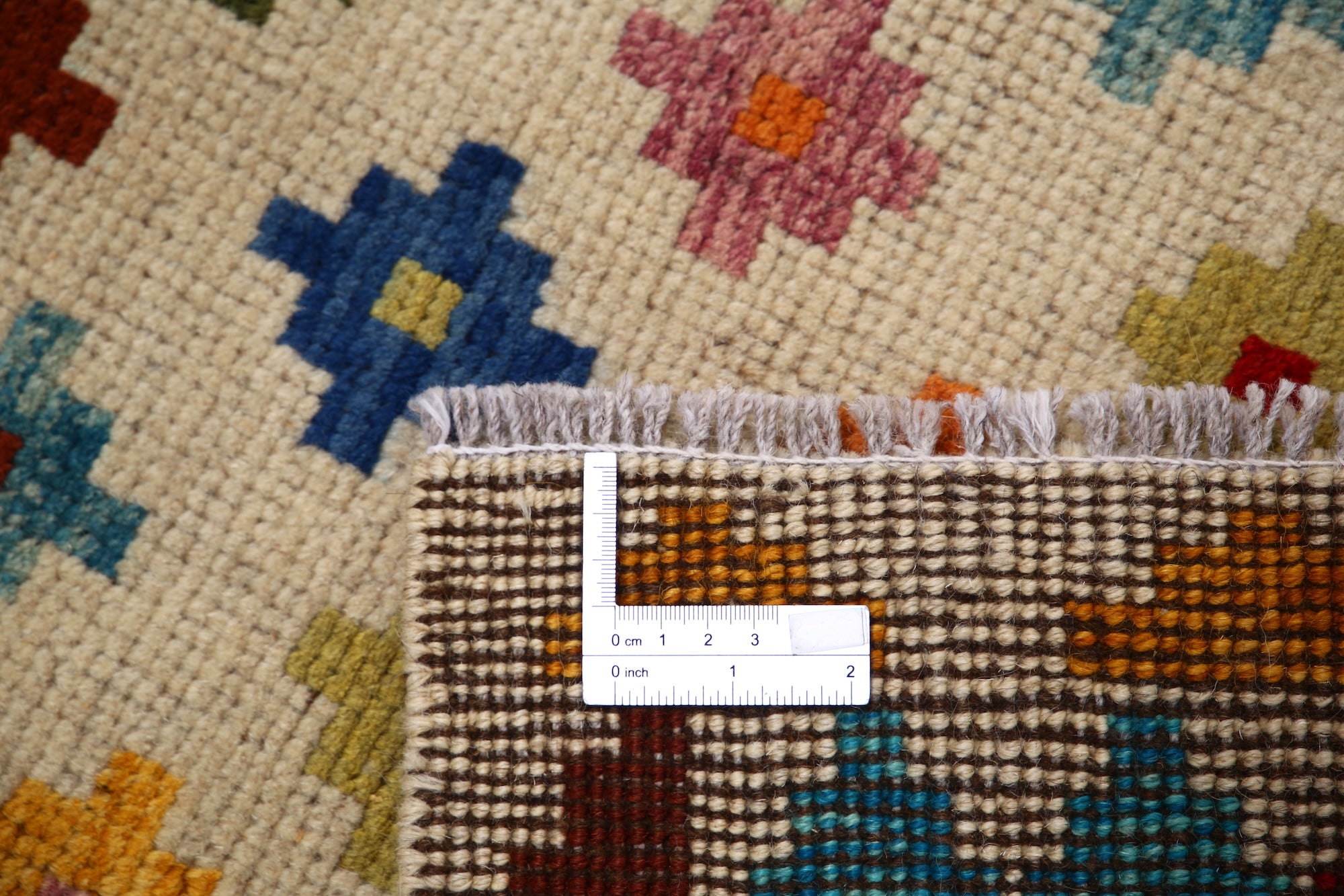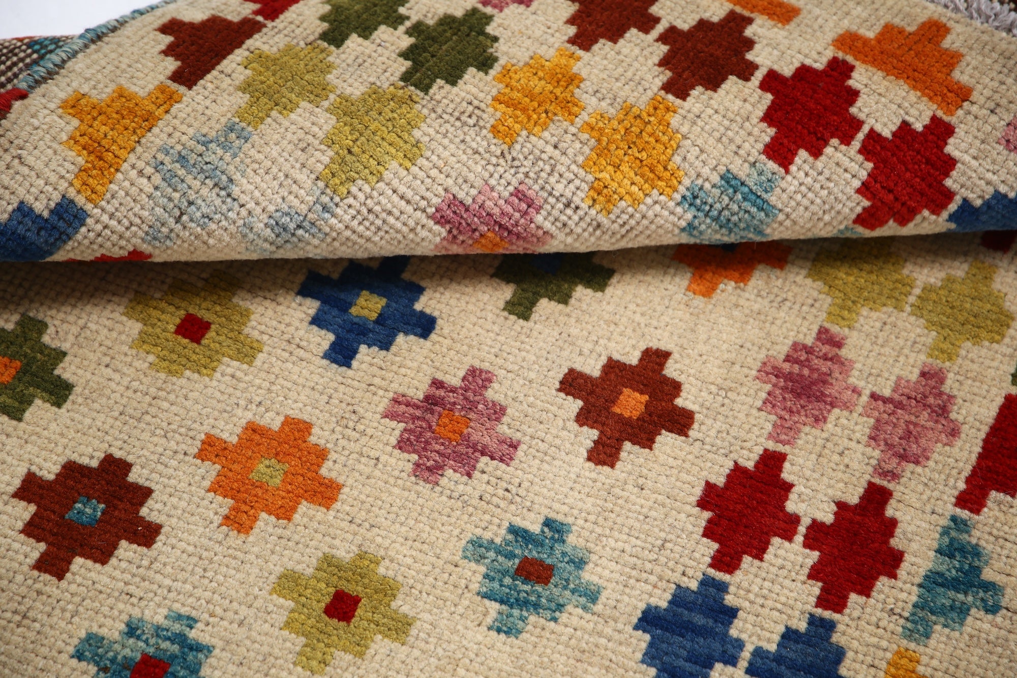 The hand-knotted Afghan wool rug features an intricate tribal geometric design, celebrated for its cultural heritage and timeless elegance. Woven by skilled artisans, it offers exceptional durability, making it ideal for high-traffic areas. Its unique patterns and premium wool blend tradition with modern sophistication, adding warmth and character to any interior.