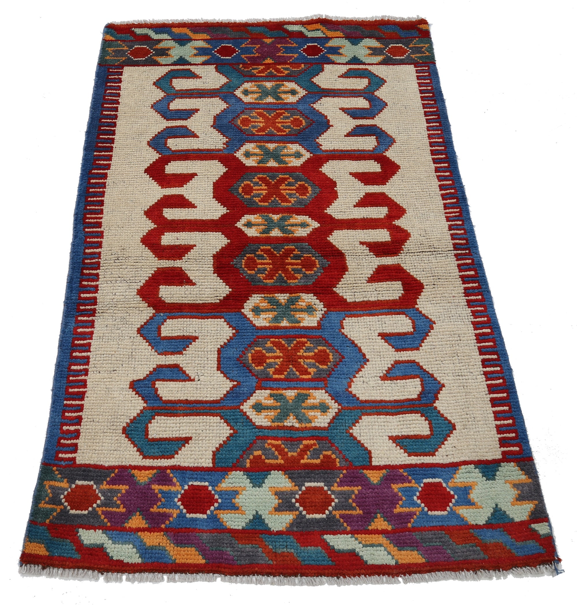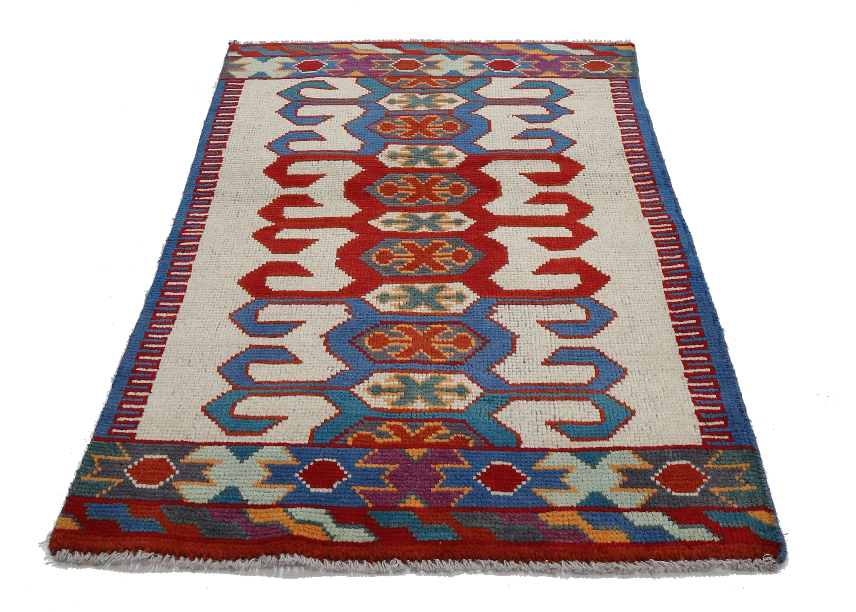 Hand-Knotted Tribal Geometric Wool Rug - 2'9" x 4'5"