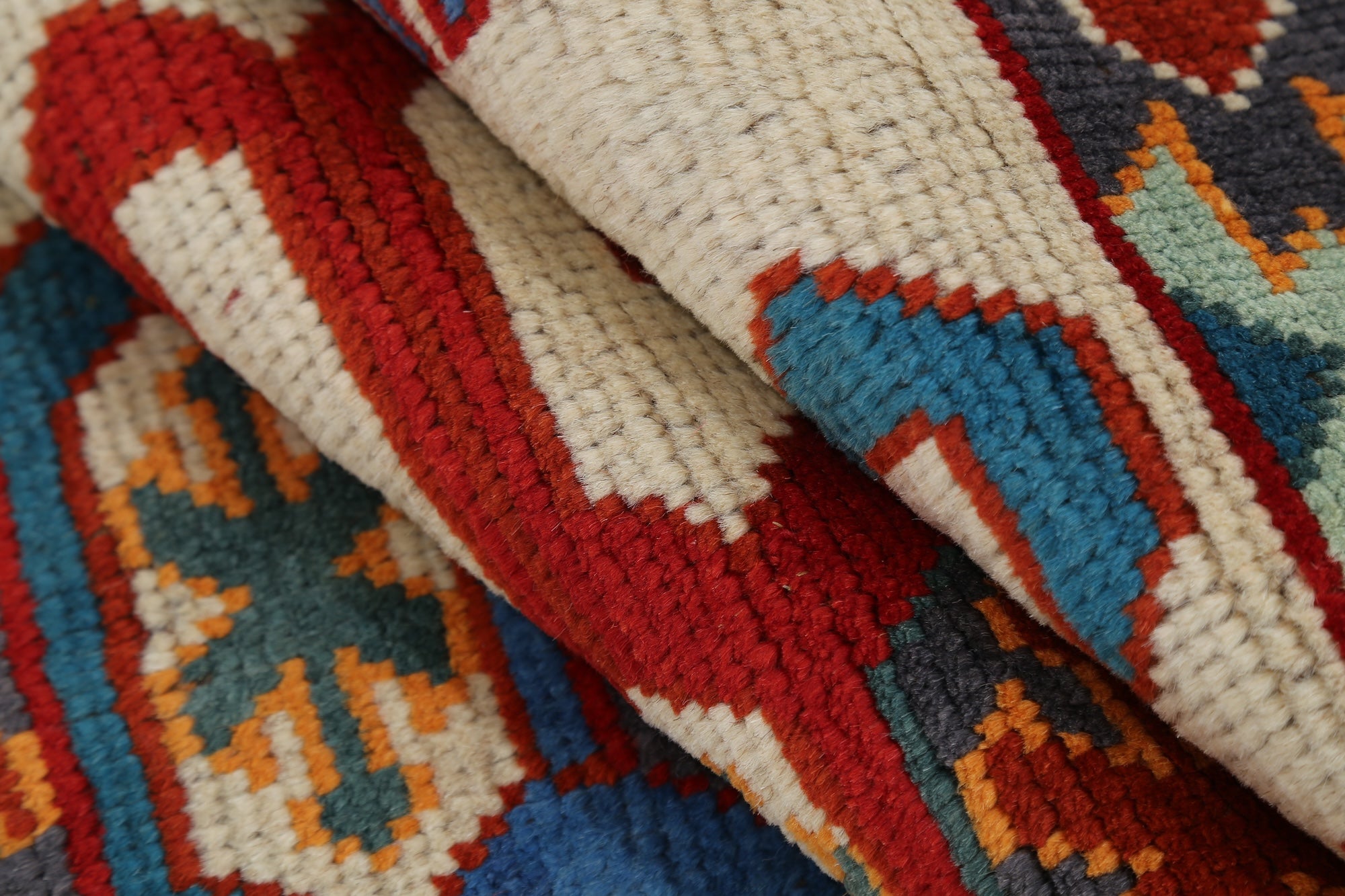 The hand-knotted Afghan wool rug features an intricate tribal geometric design, celebrated for its cultural heritage and timeless elegance. Woven by skilled artisans, it offers exceptional durability, making it ideal for high-traffic areas. Its unique patterns and premium wool blend tradition with modern sophistication, adding warmth and character to any interior.
