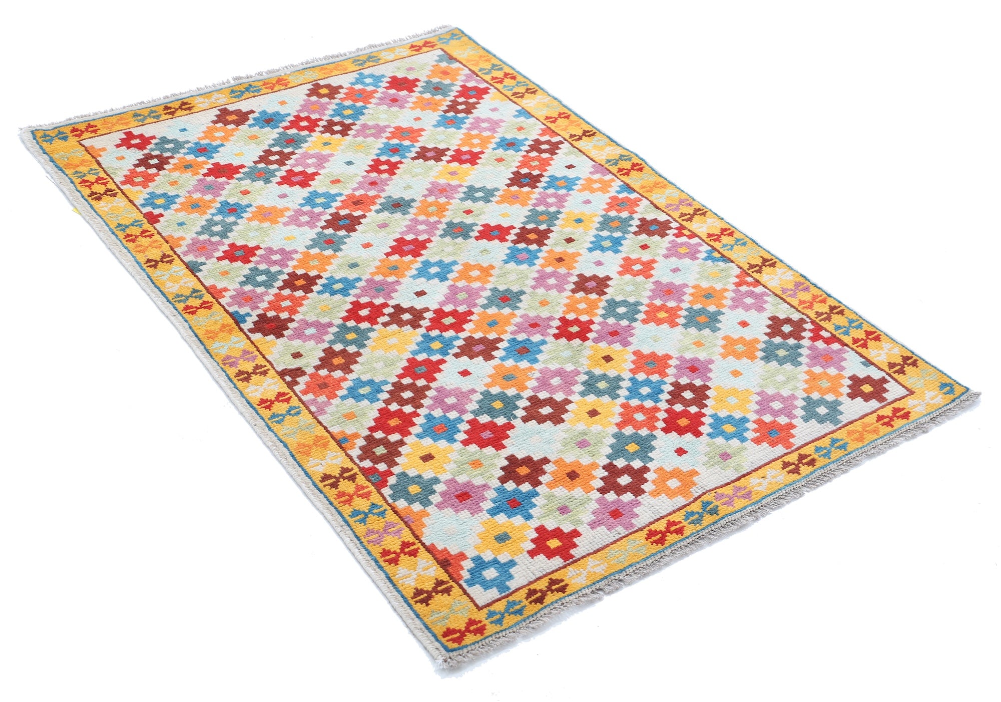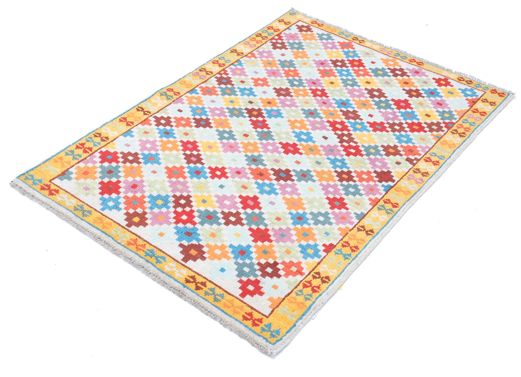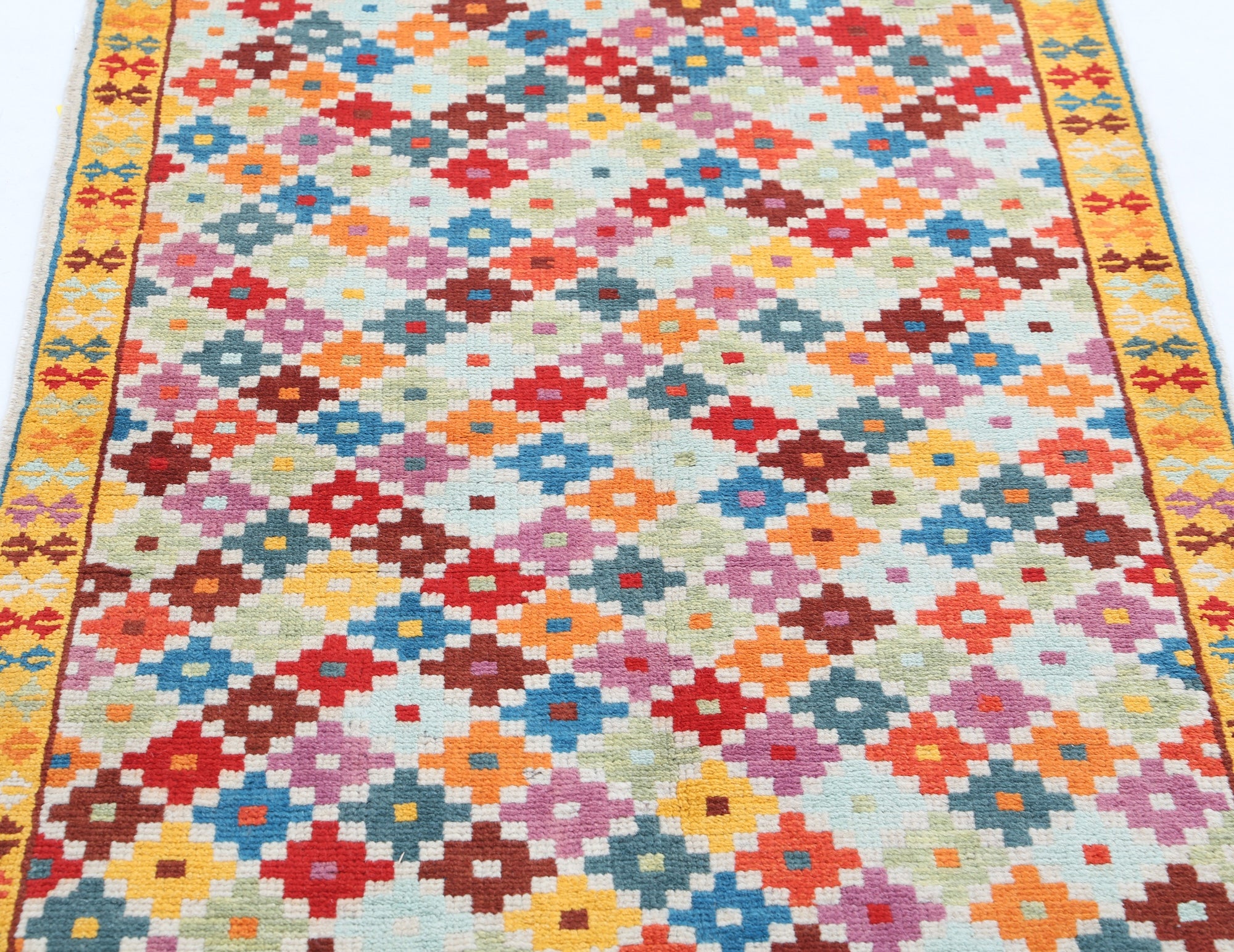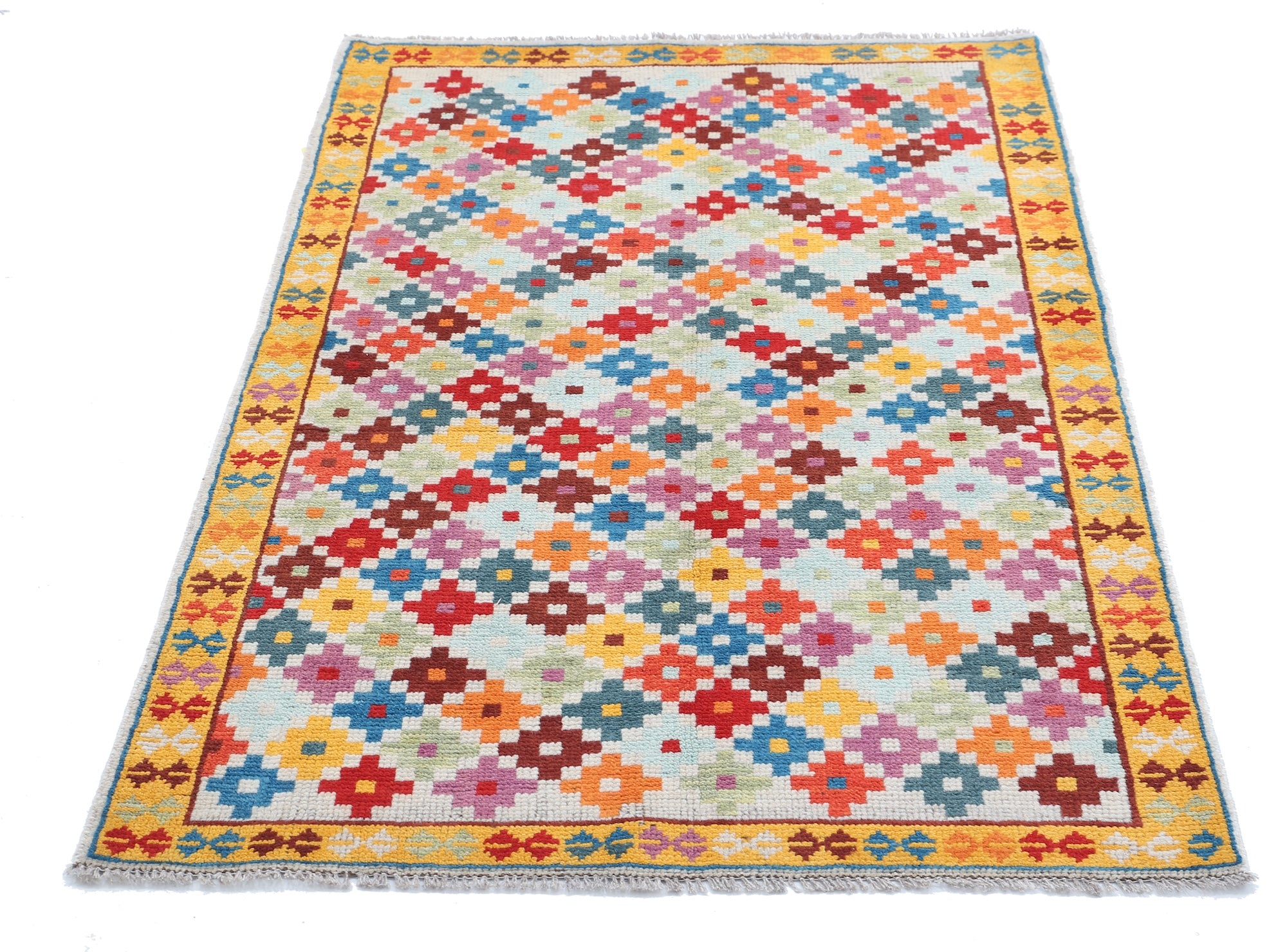 Hand-Knotted Tribal Geometric Wool Rug - 3'3" x 4'9"