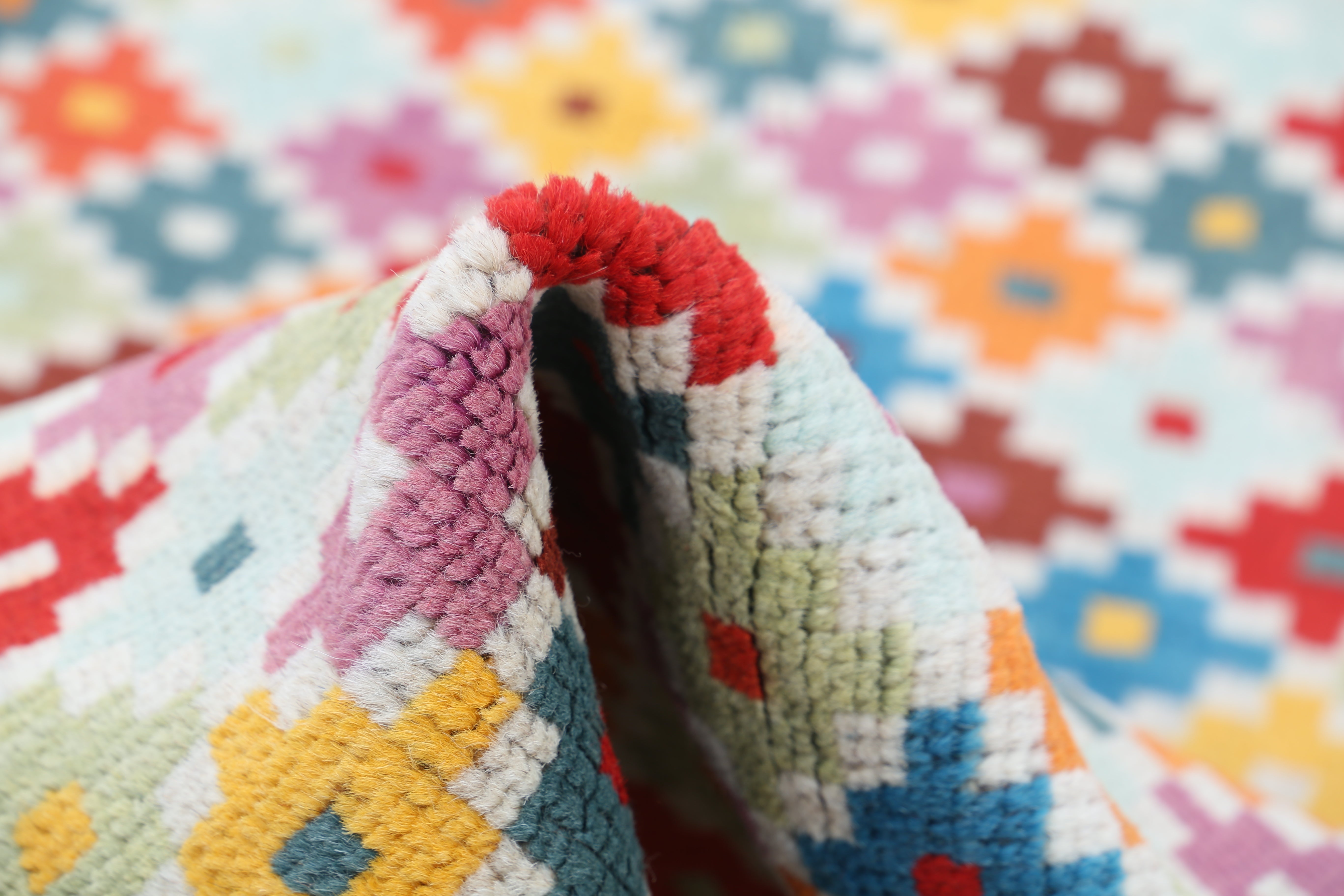 The hand-knotted Afghan wool rug features an intricate tribal geometric design, celebrated for its cultural heritage and timeless elegance. Woven by skilled artisans, it offers exceptional durability, making it ideal for high-traffic areas. Its unique patterns and premium wool blend tradition with modern sophistication, adding warmth and character to any interior.