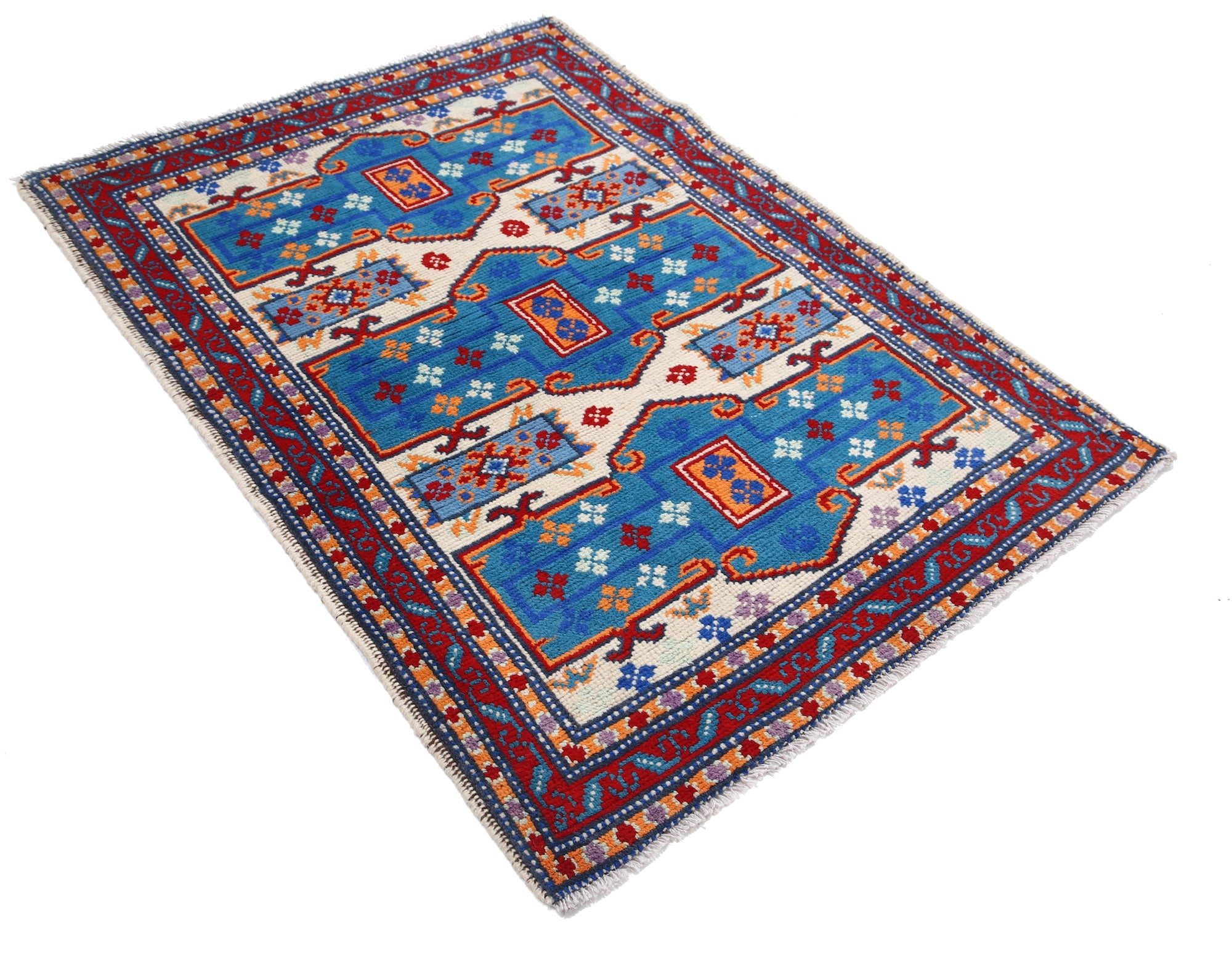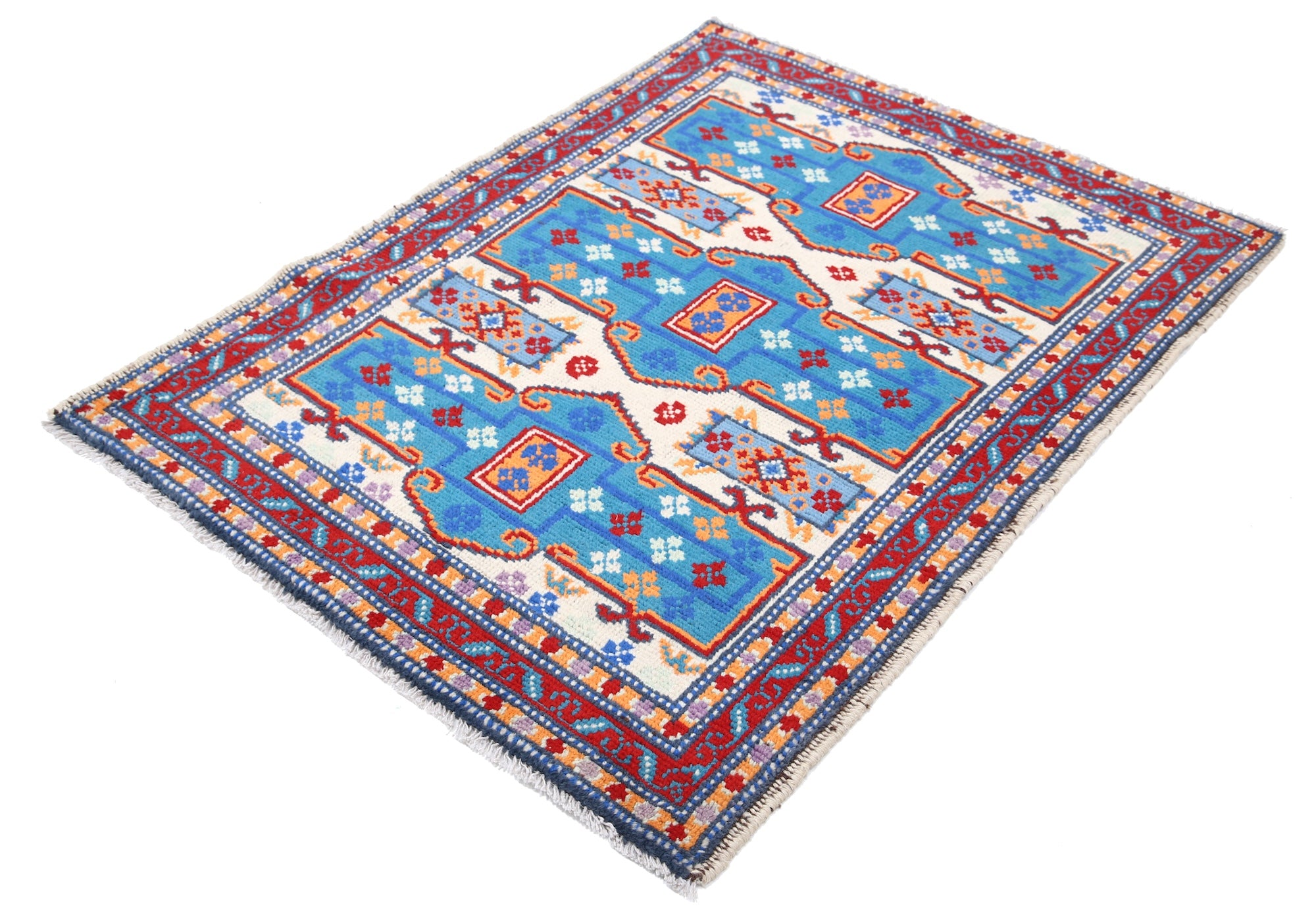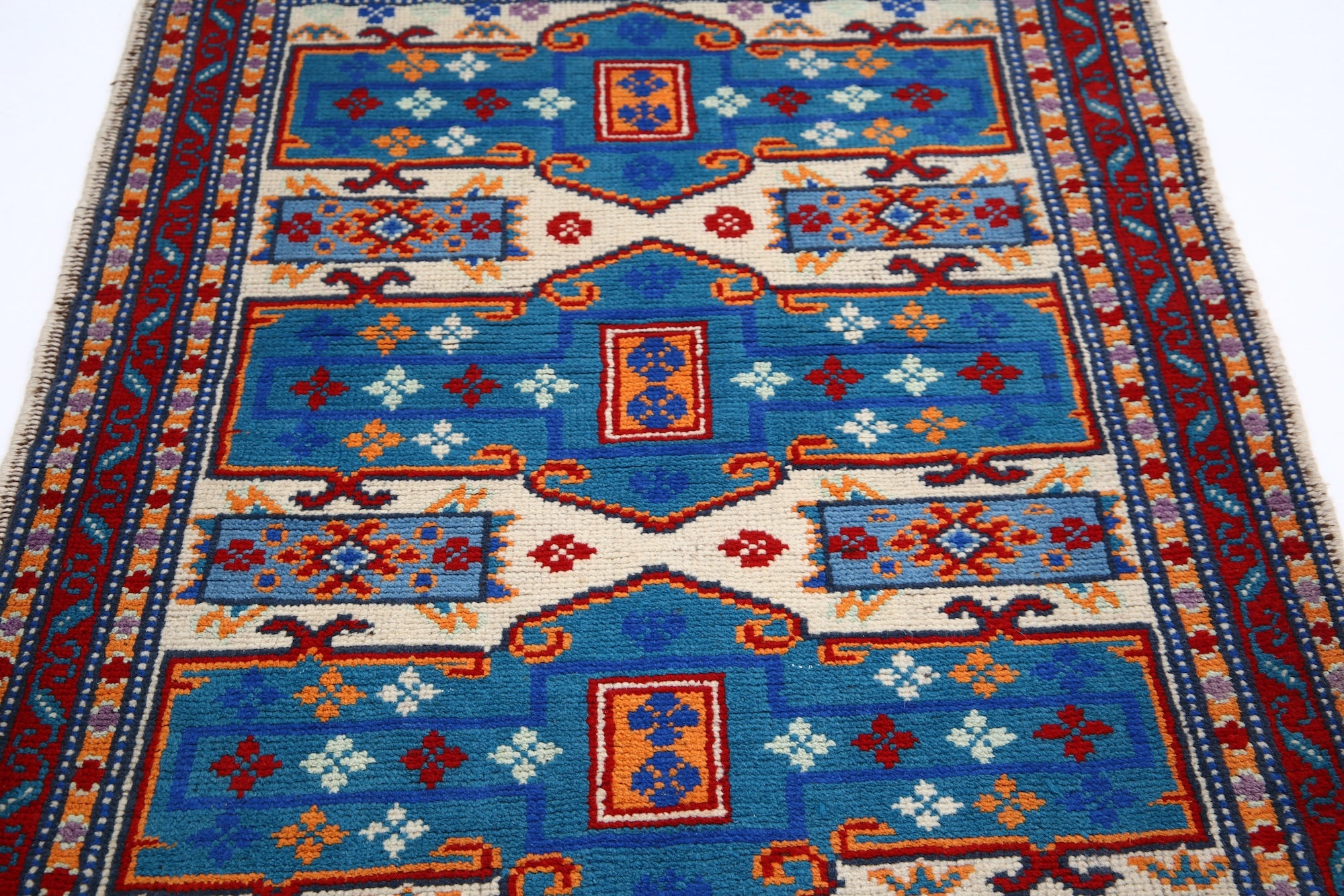 Hand-Knotted Tribal Geometric Wool Rug - 3'8" x 4'11"