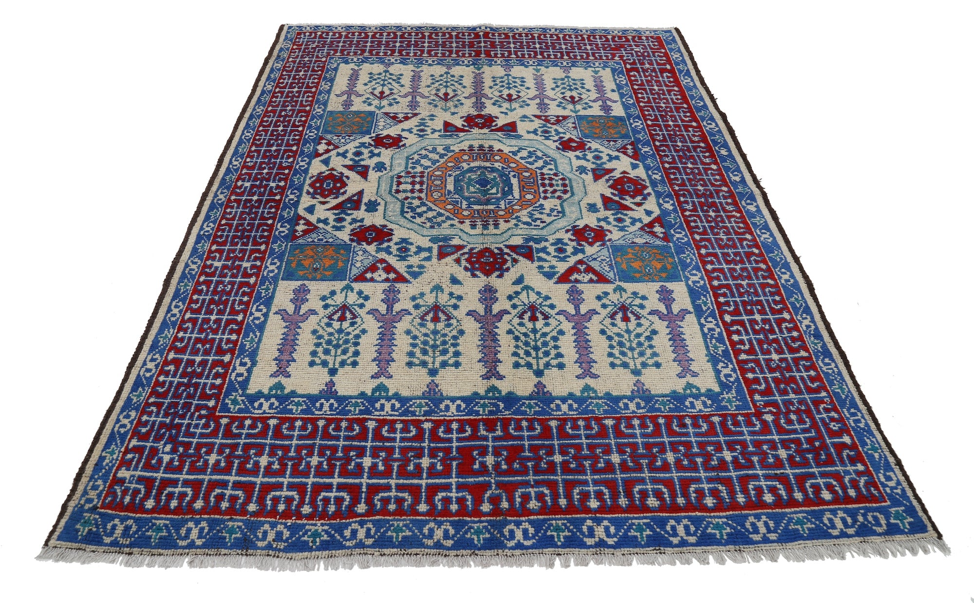 Hand-Knotted Tribal Geometric Wool Rug - 5'6" x 7'7"