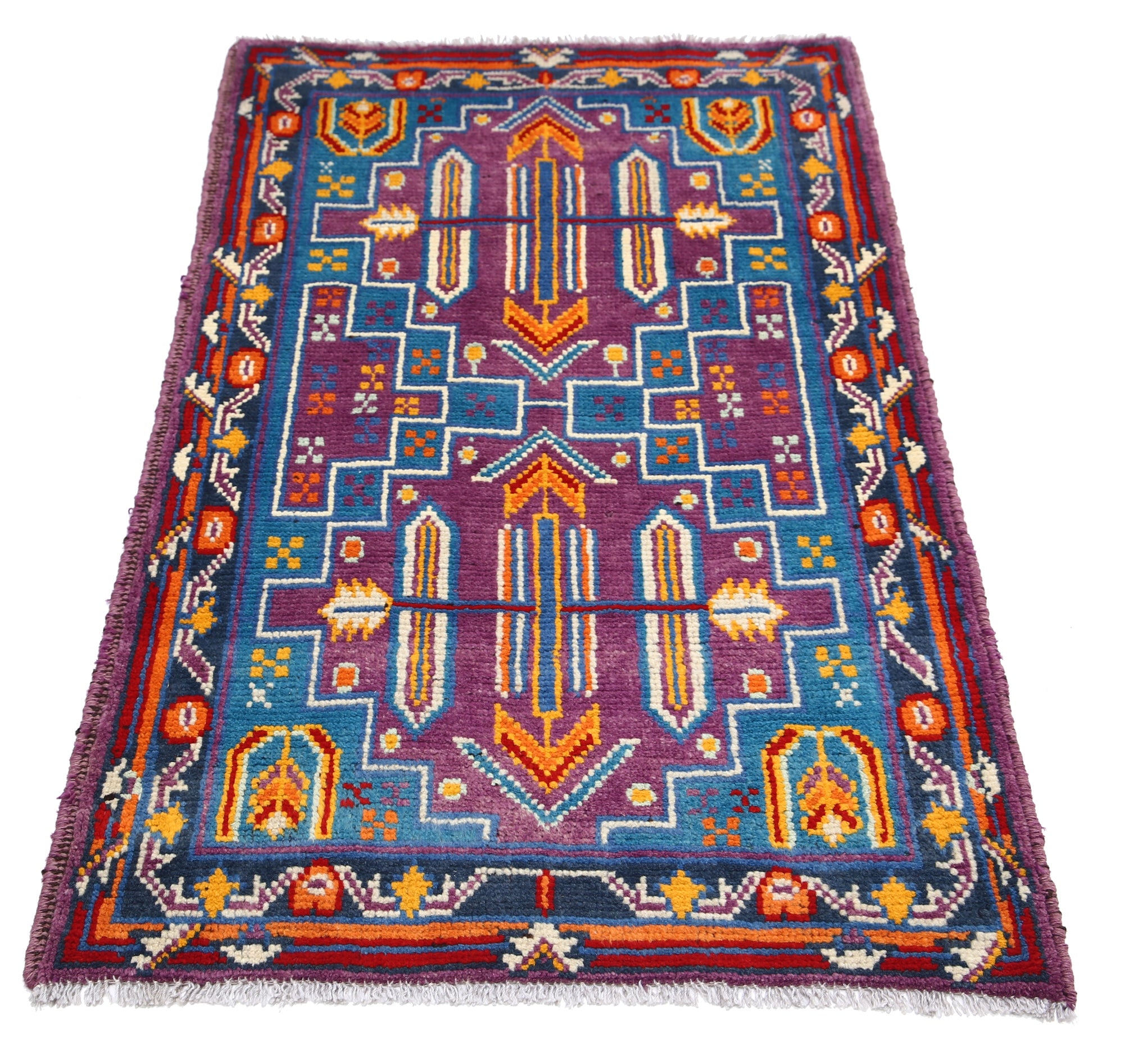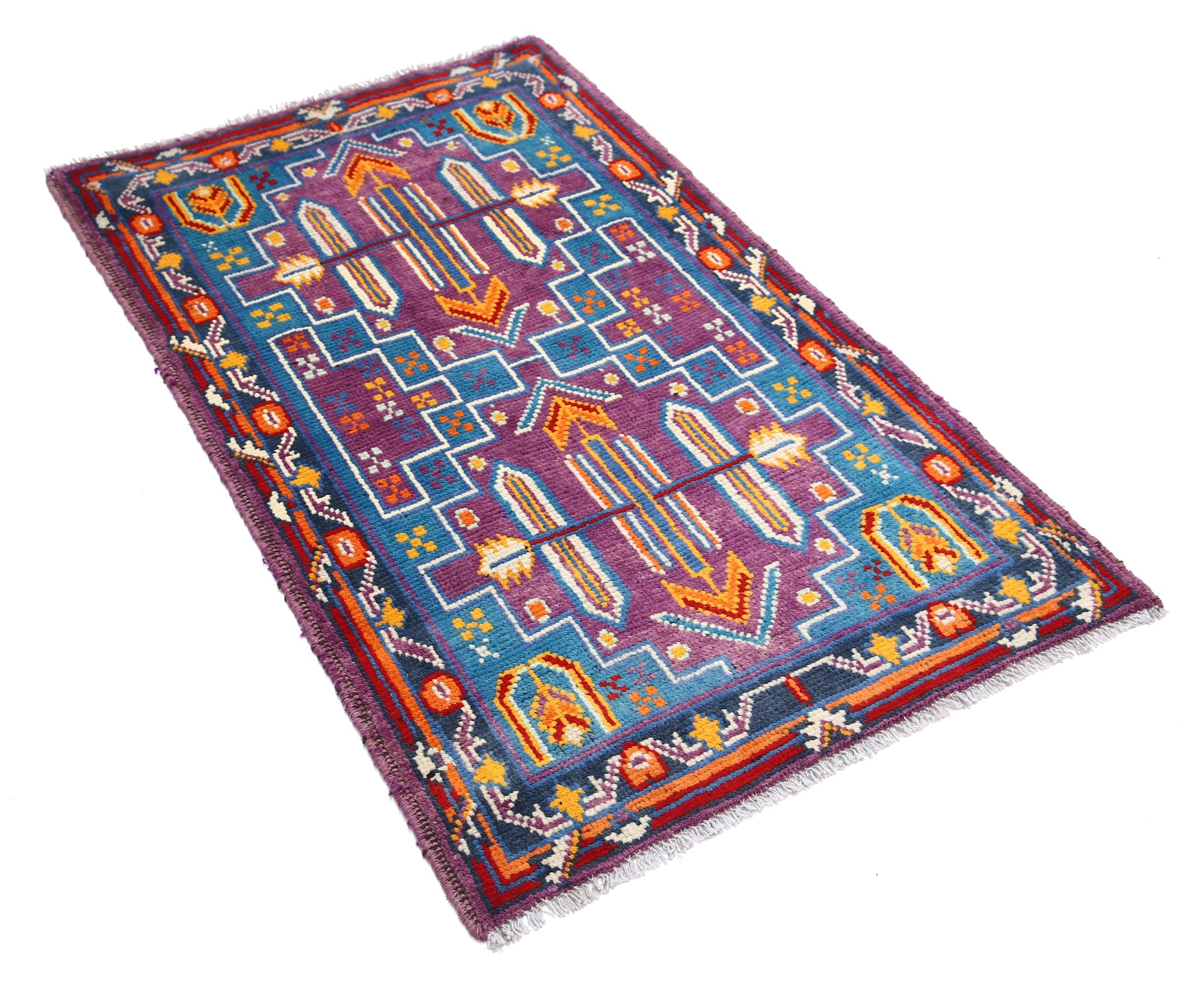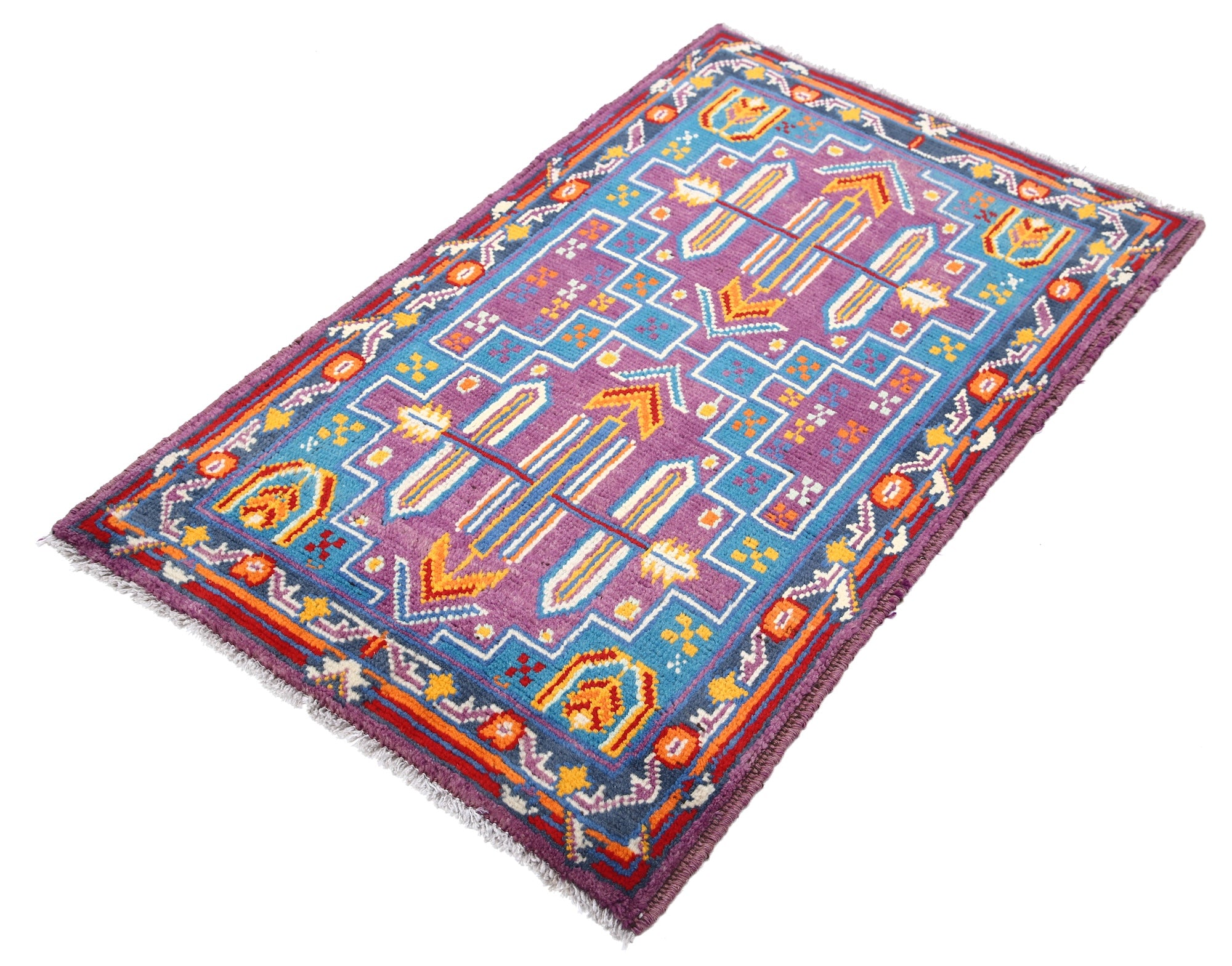 Hand-Knotted Tribal Geometric Wool Rug - 2'9" x 4'5"