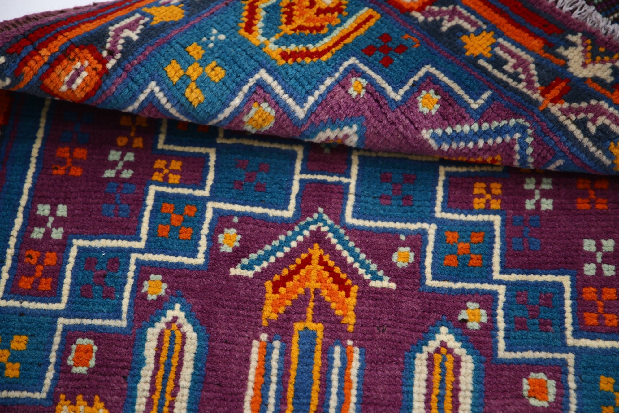 The hand-knotted Afghan wool rug features an intricate tribal geometric design, celebrated for its cultural heritage and timeless elegance. Woven by skilled artisans, it offers exceptional durability, making it ideal for high-traffic areas. Its unique patterns and premium wool blend tradition with modern sophistication, adding warmth and character to any interior.