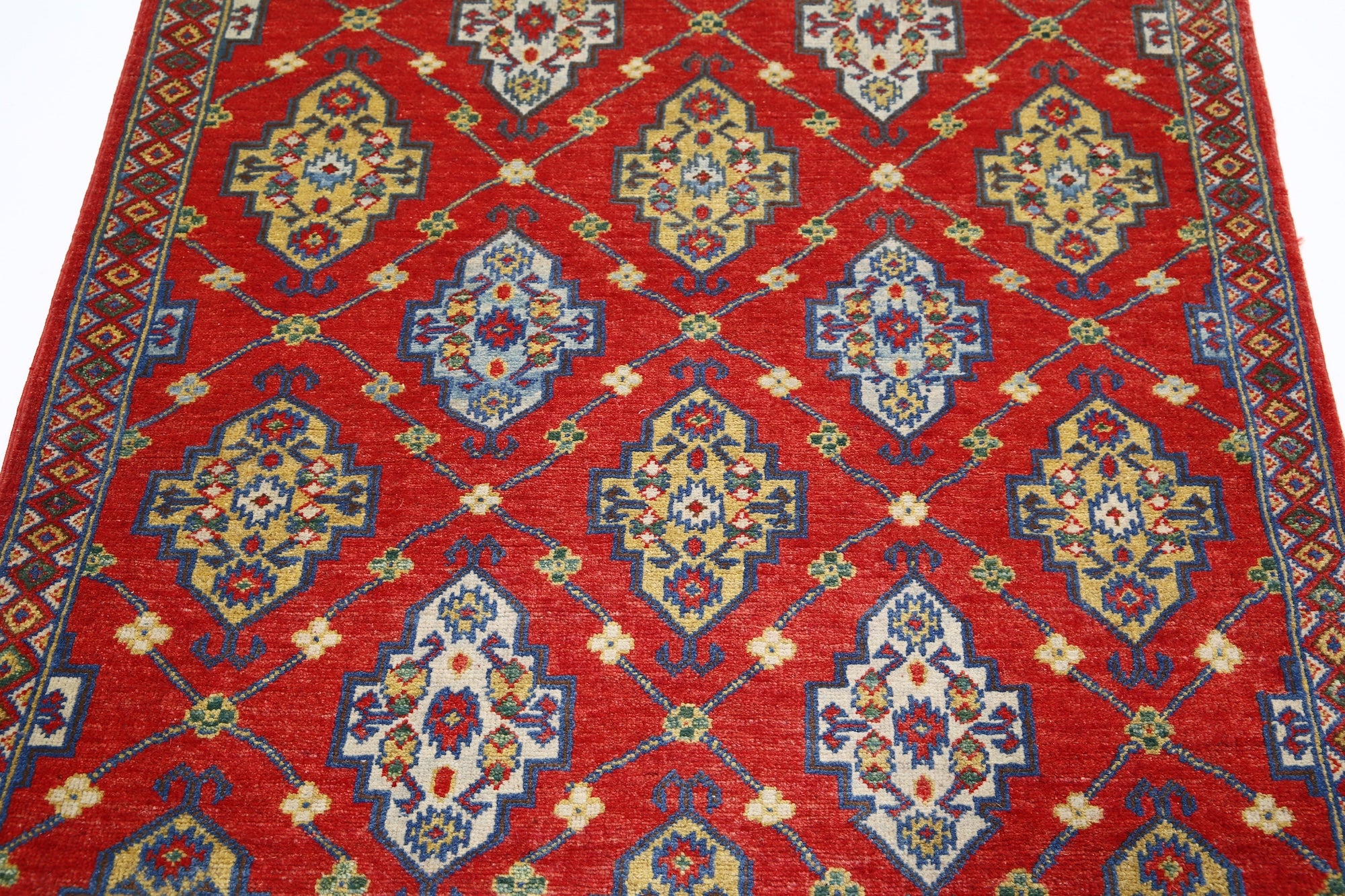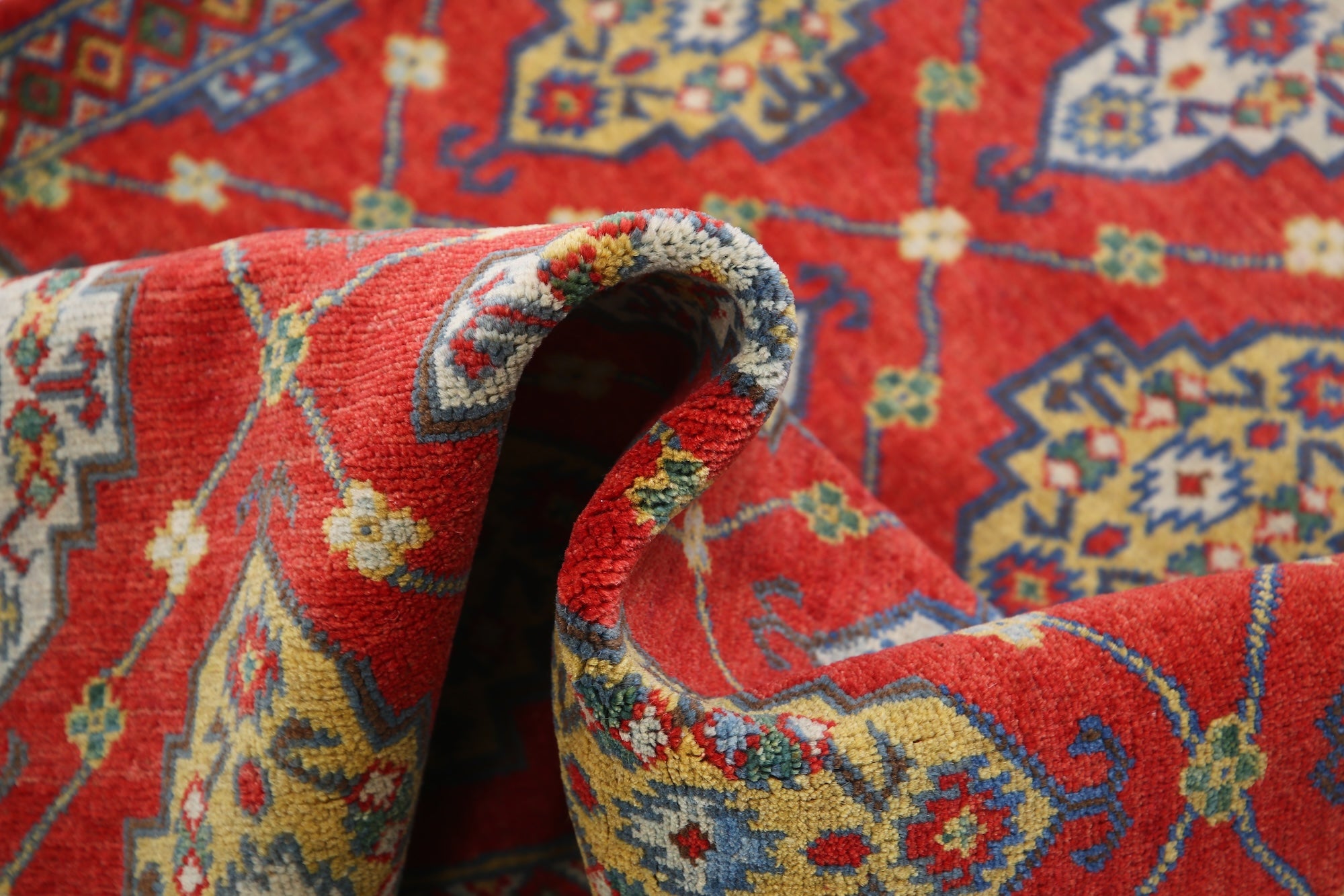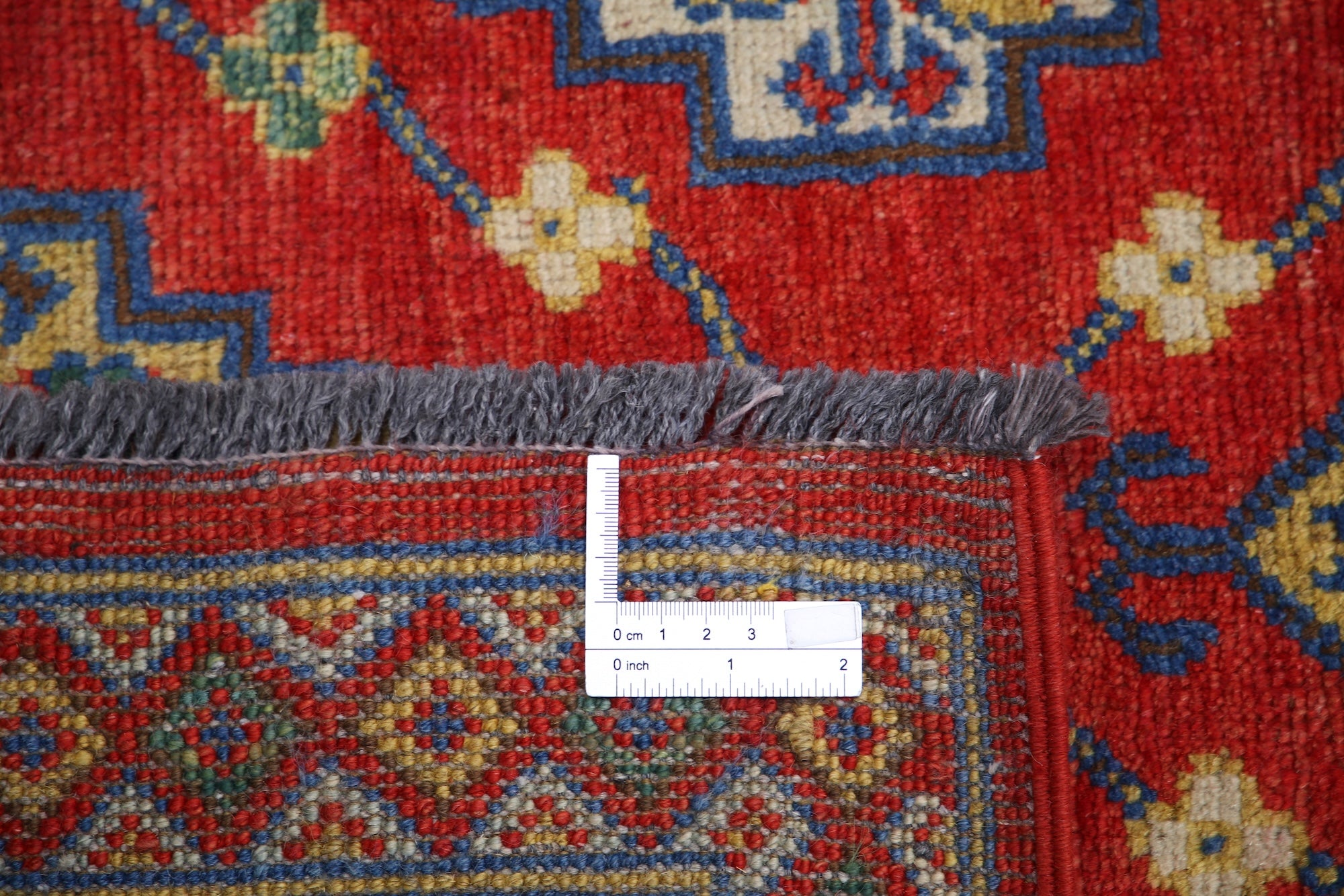 This artisan-crafted Afghan wool rug features a striking geometric tribal pattern, renowned for its cultural heritage and timeless appeal. Expertly hand-knotted by skilled weavers, it offers superior durability, making it perfect for high-traffic areas. Its intricate design and premium wool blend traditional craftsmanship with modern elegance, adding warmth and character to any space.