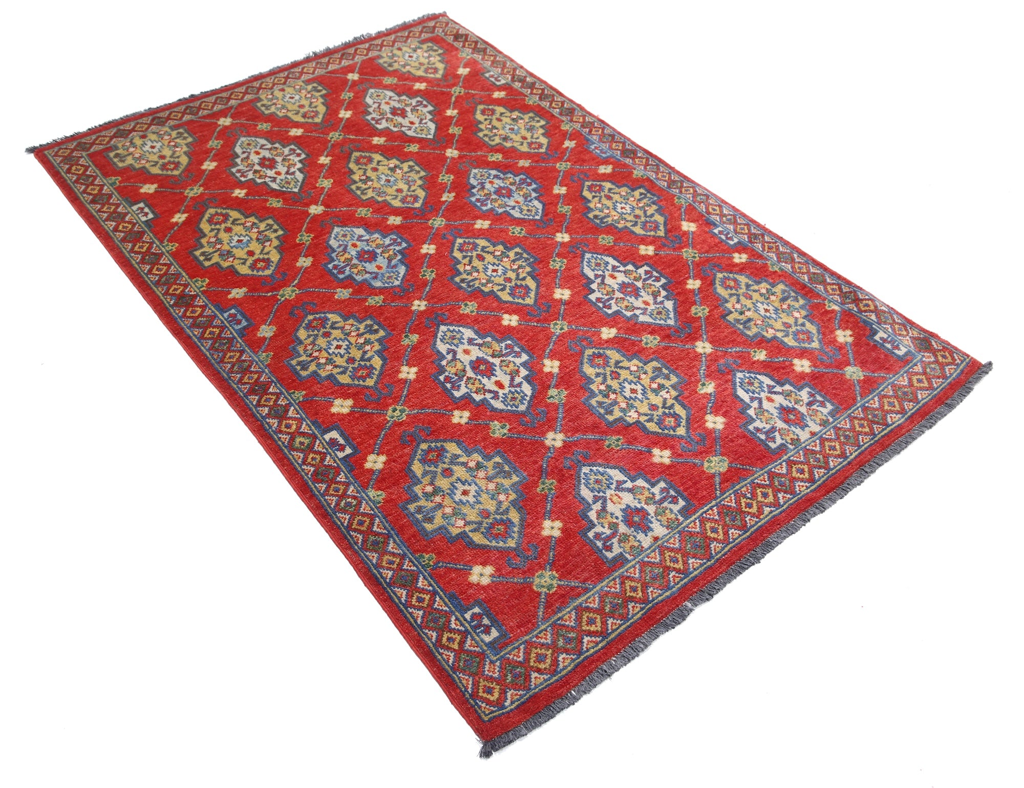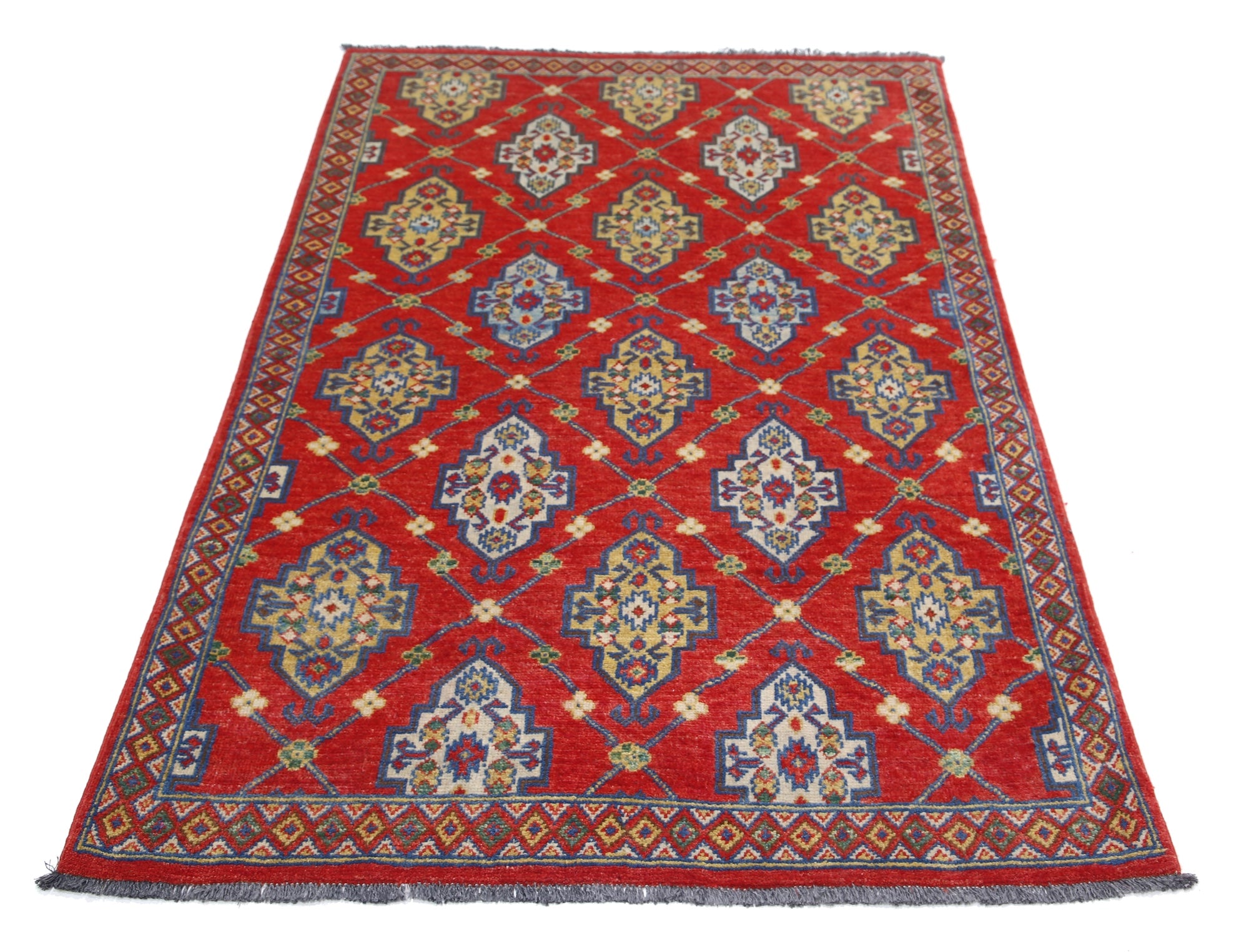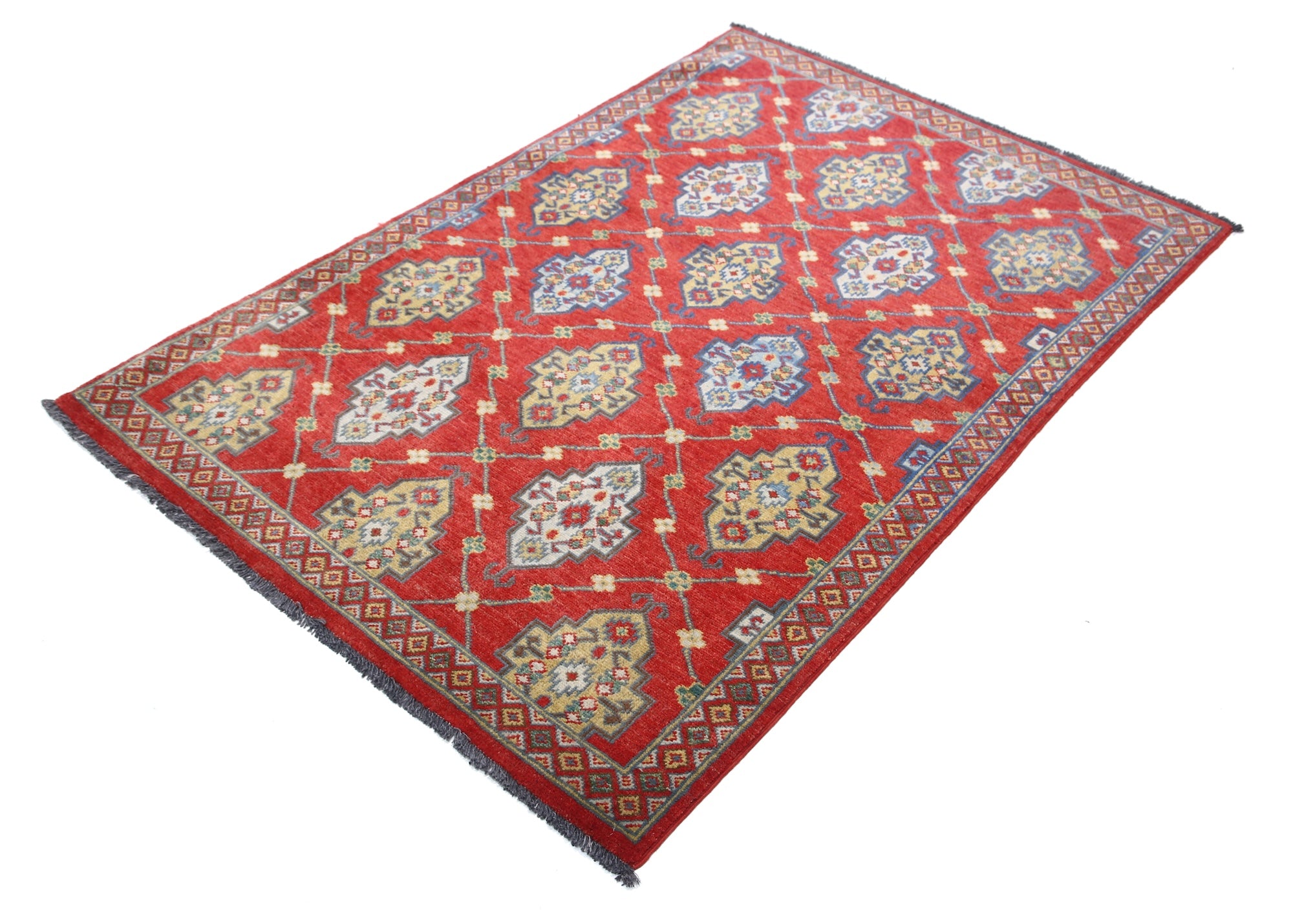 This artisan-crafted Afghan wool rug features a striking geometric tribal pattern, renowned for its cultural heritage and timeless appeal. Expertly hand-knotted by skilled weavers, it offers superior durability, making it perfect for high-traffic areas. Its intricate design and premium wool blend traditional craftsmanship with modern elegance, adding warmth and character to any space.