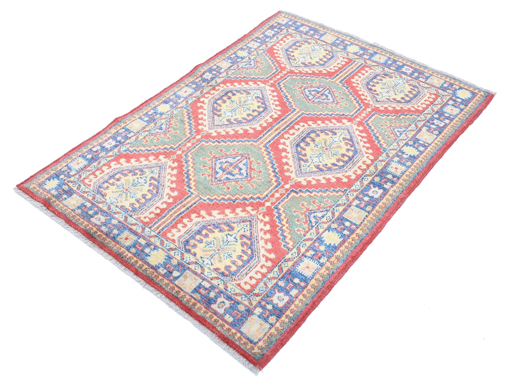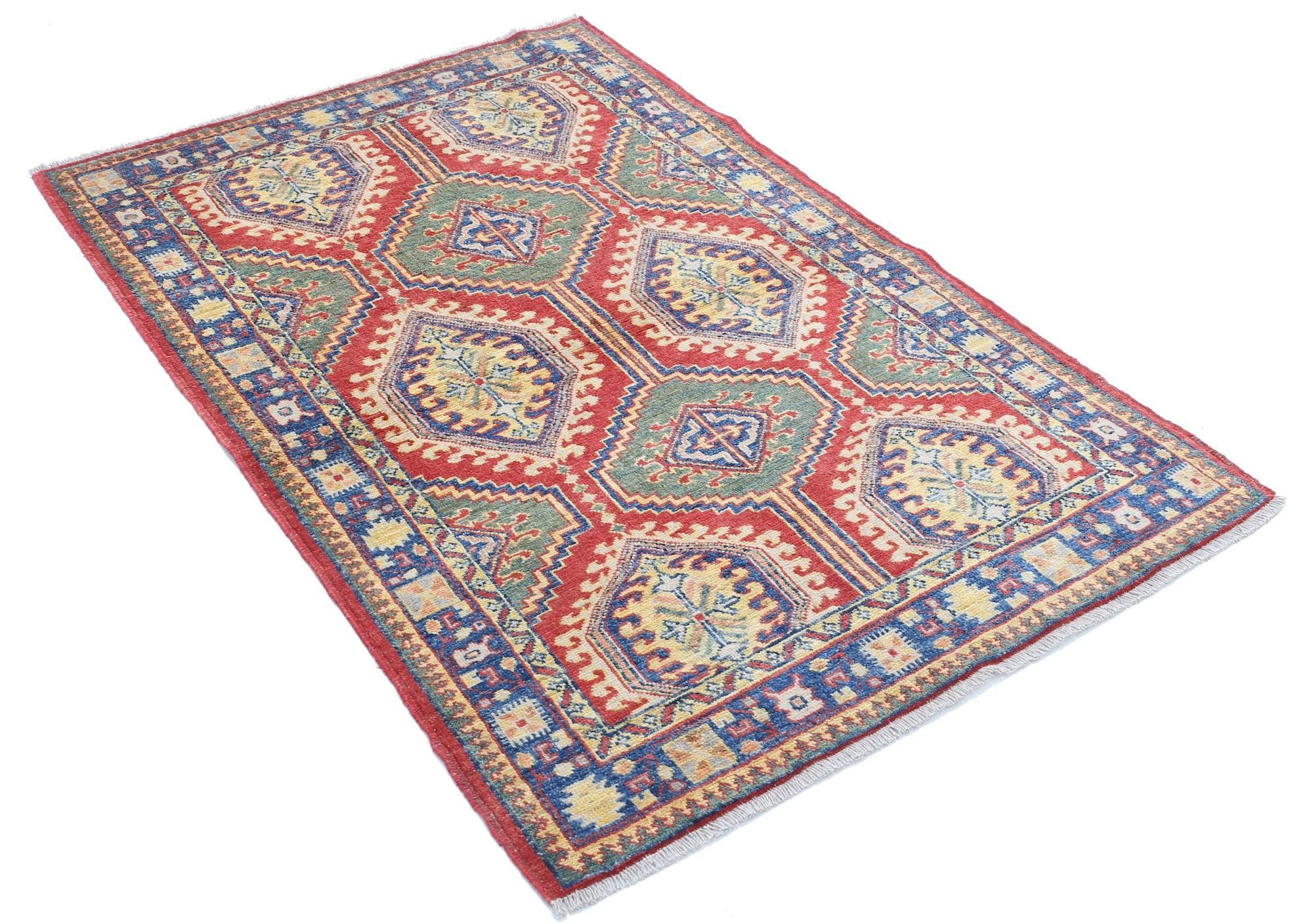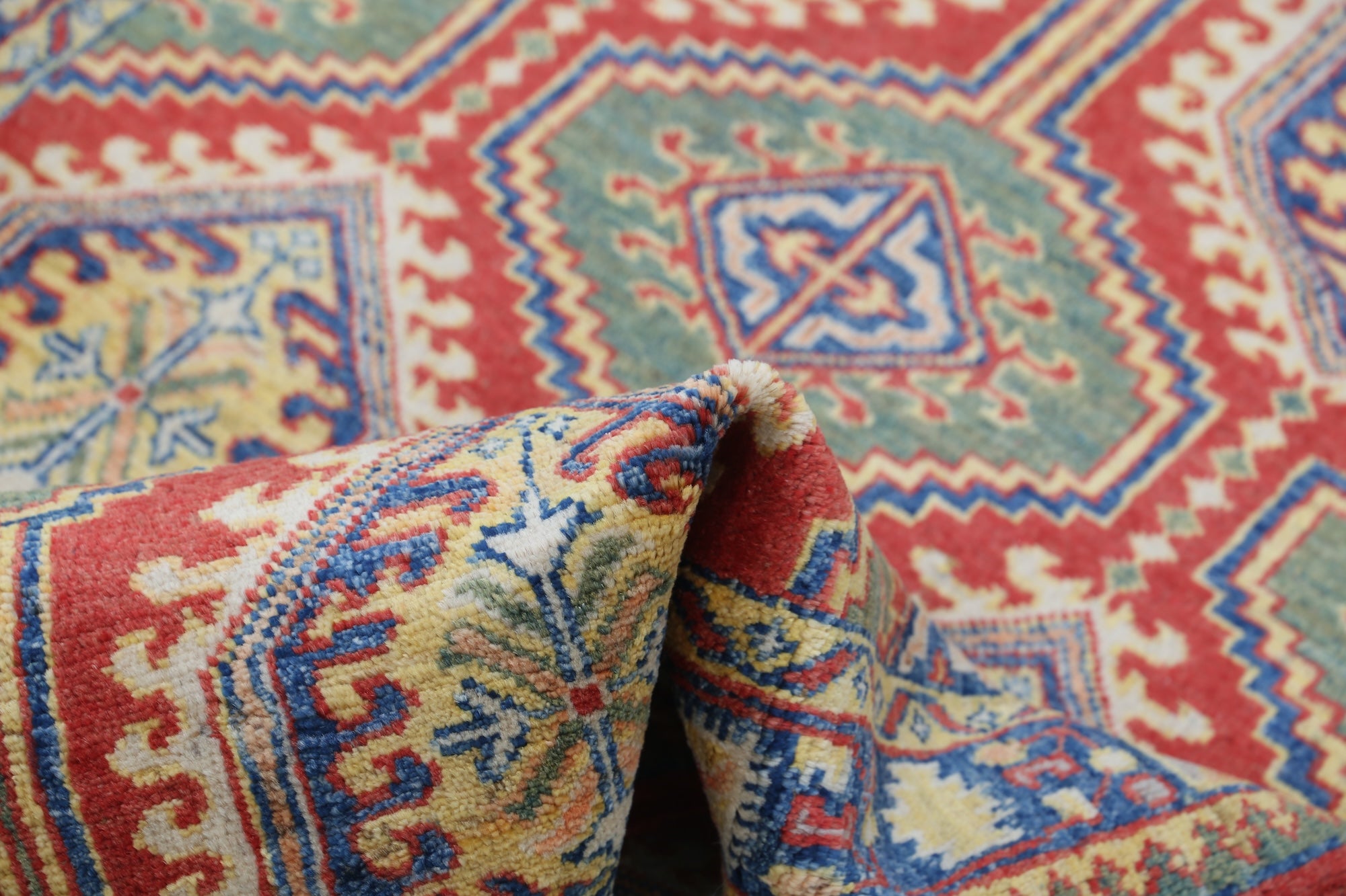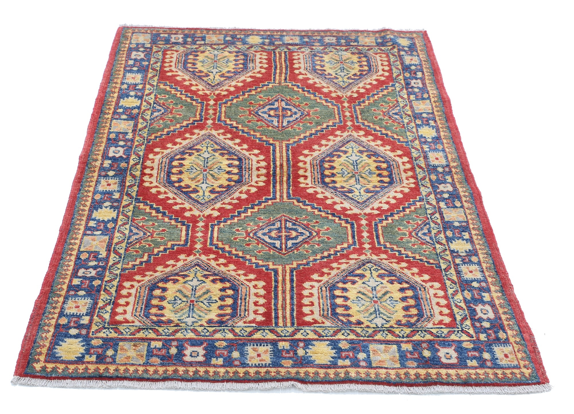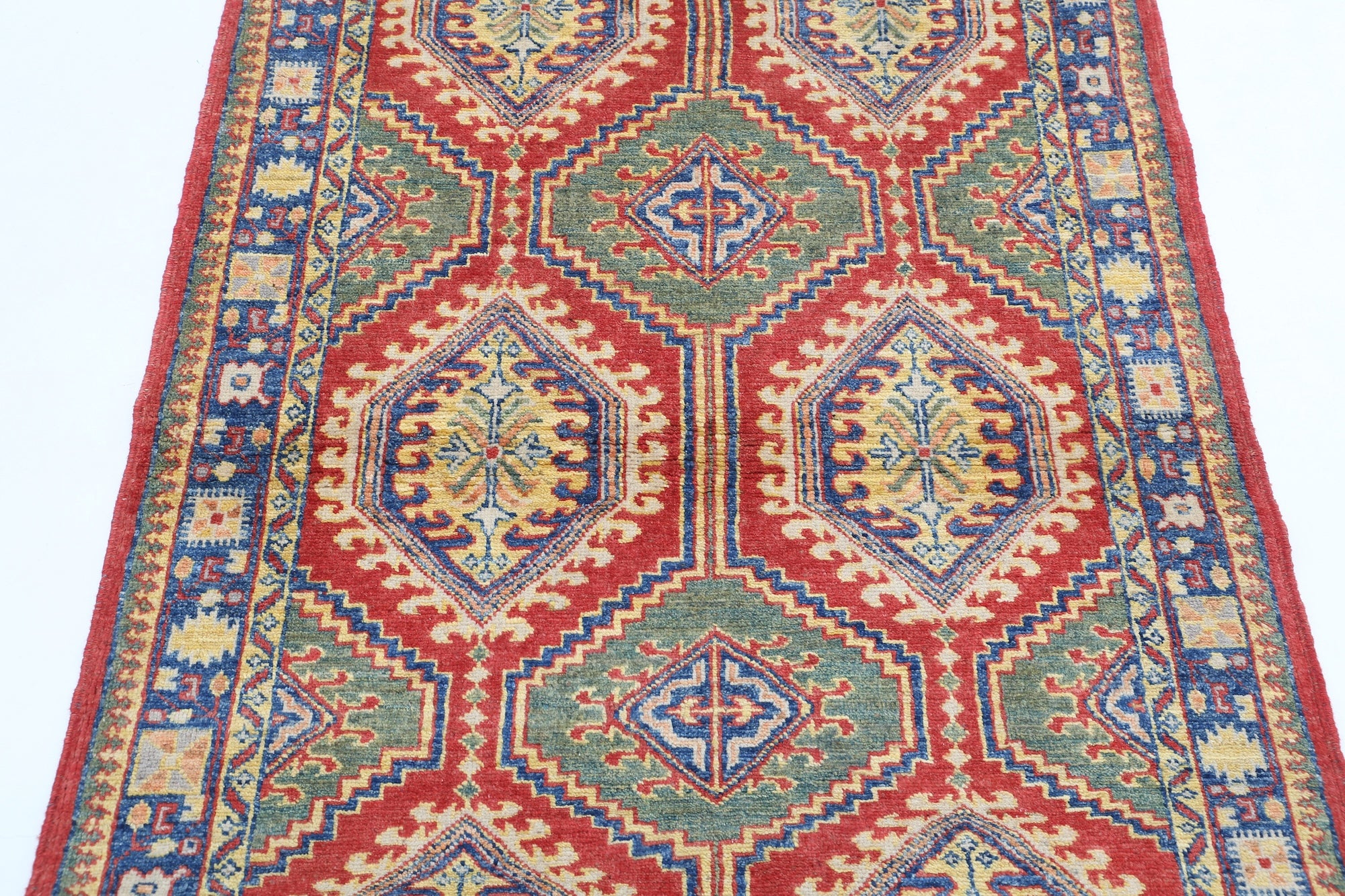 This artisan-crafted Afghan wool rug features a striking geometric tribal pattern, renowned for its cultural heritage and timeless appeal. Expertly hand-knotted by skilled weavers, it offers superior durability, making it perfect for high-traffic areas. Its intricate design and premium wool blend traditional craftsmanship with modern elegance, adding warmth and character to any space.