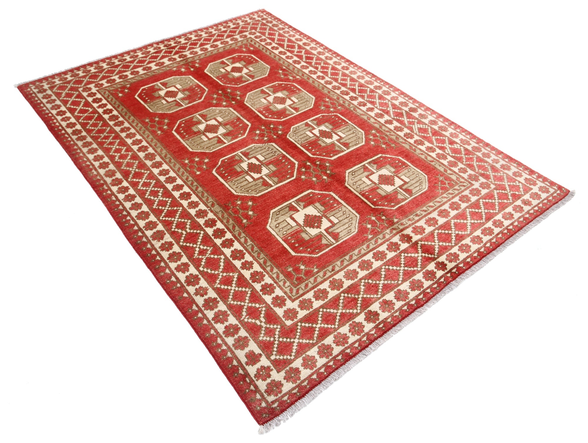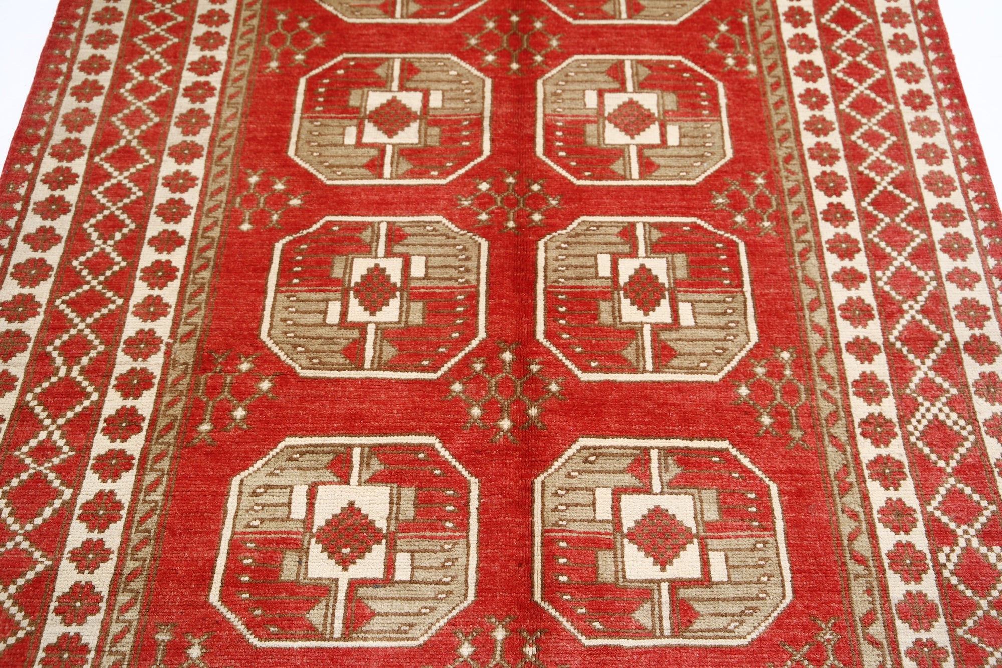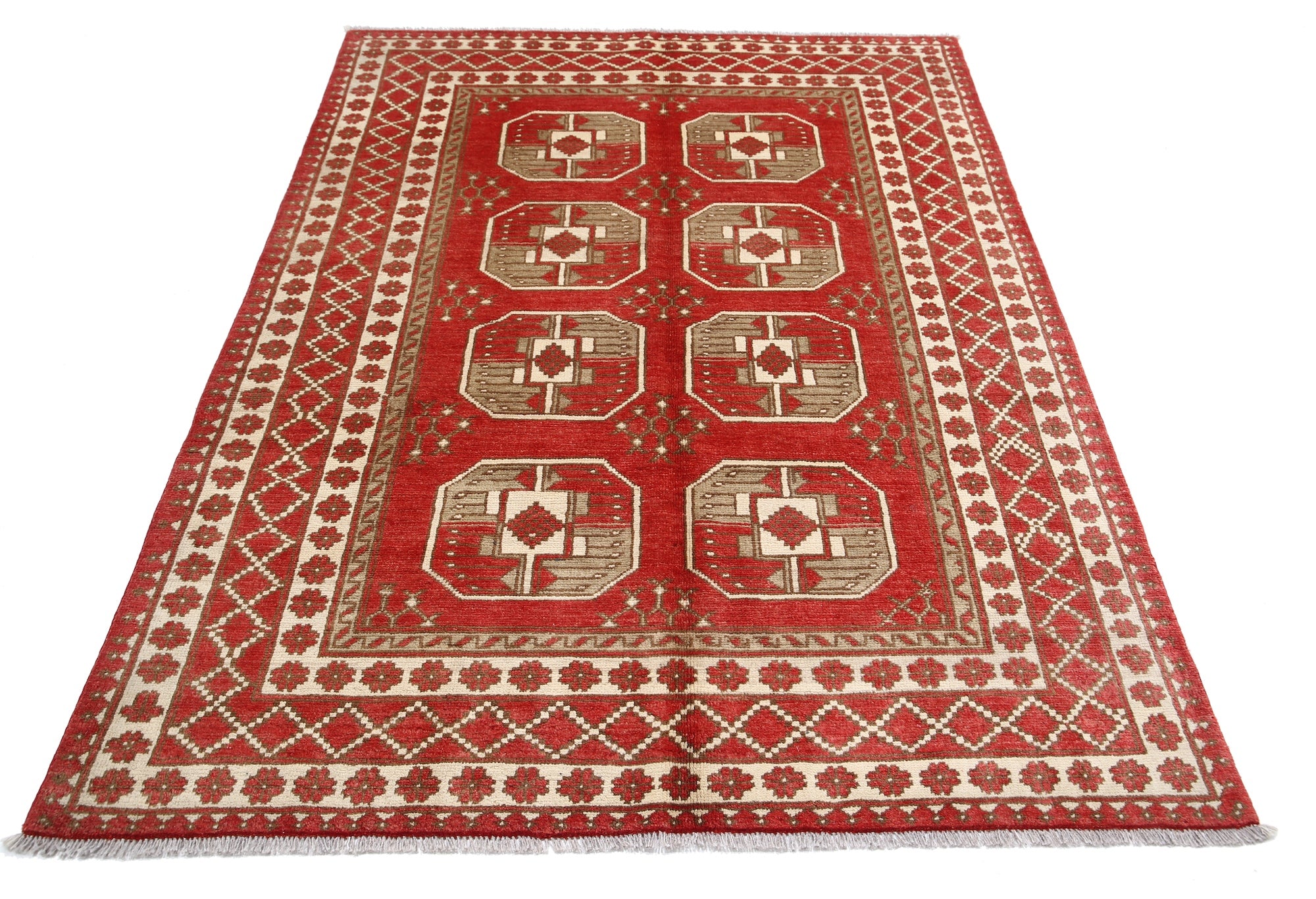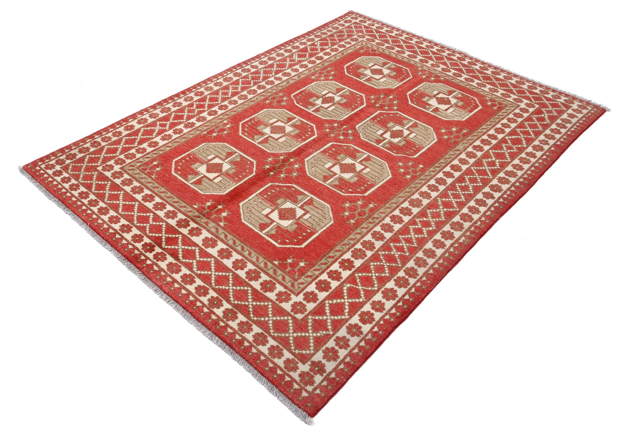 This artisan-crafted Afghan wool rug features a striking geometric tribal pattern, renowned for its cultural heritage and timeless appeal. Expertly hand-knotted by skilled weavers, it offers superior durability, making it perfect for high-traffic areas. Its intricate design and premium wool blend traditional craftsmanship with modern elegance, adding warmth and character to any space.