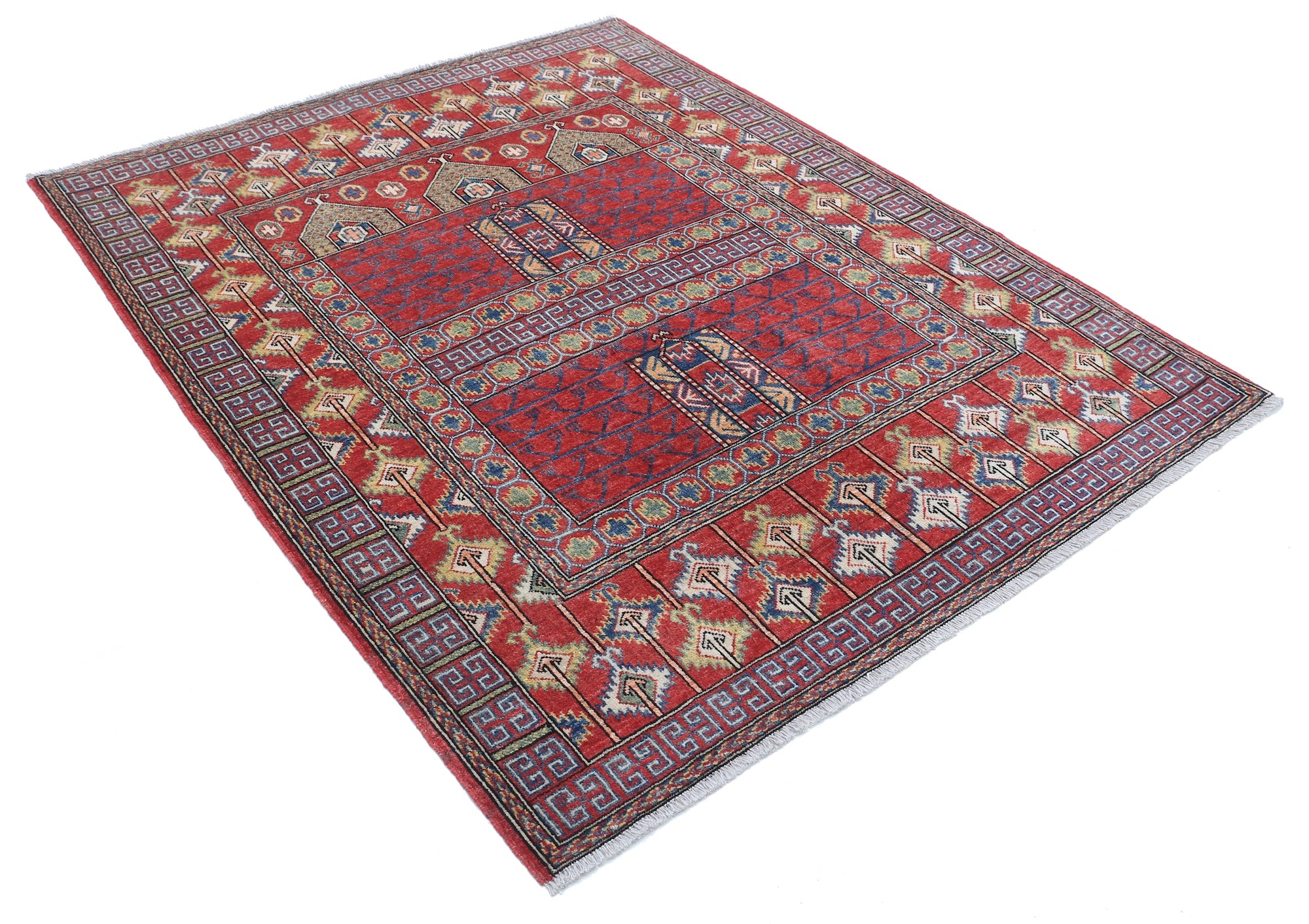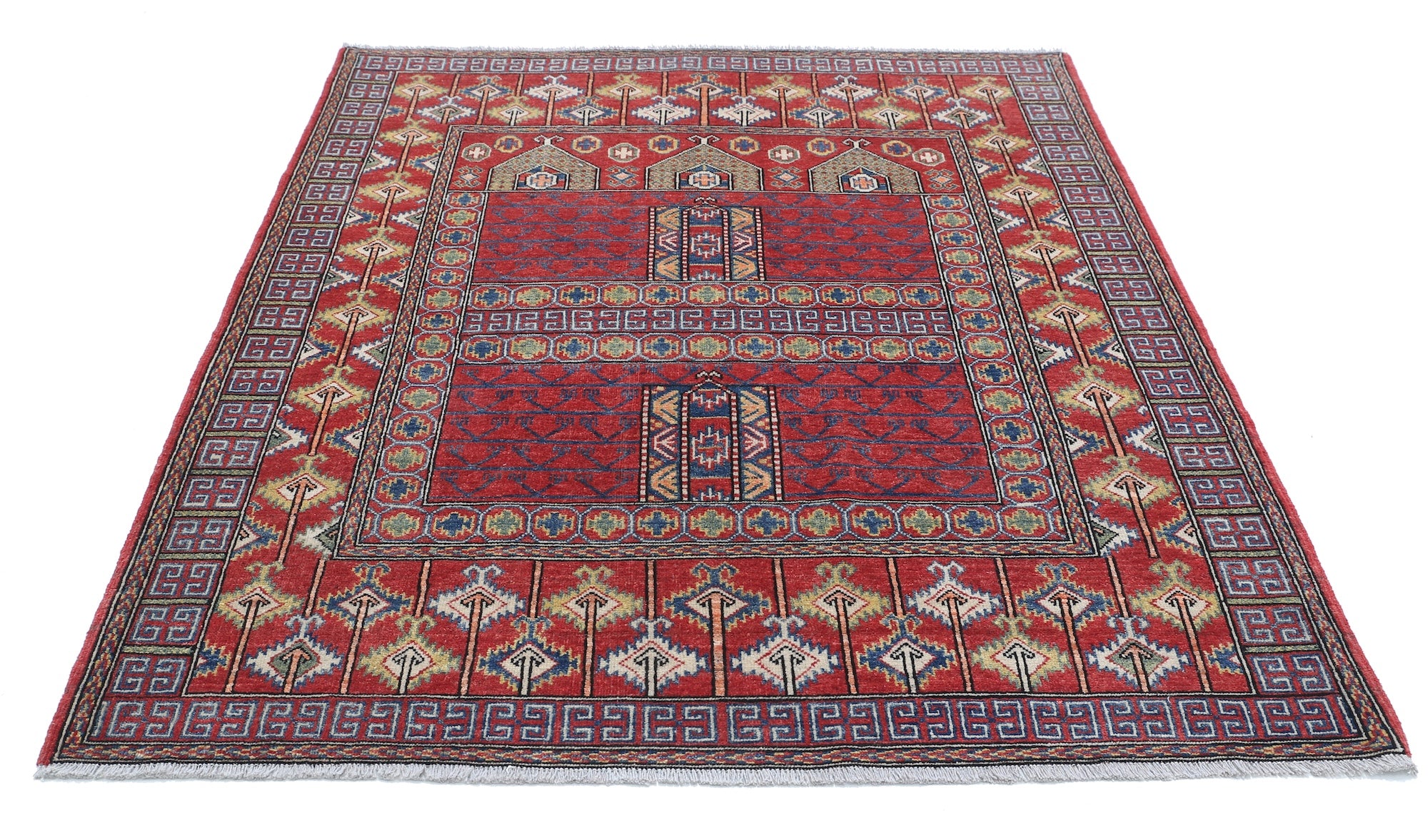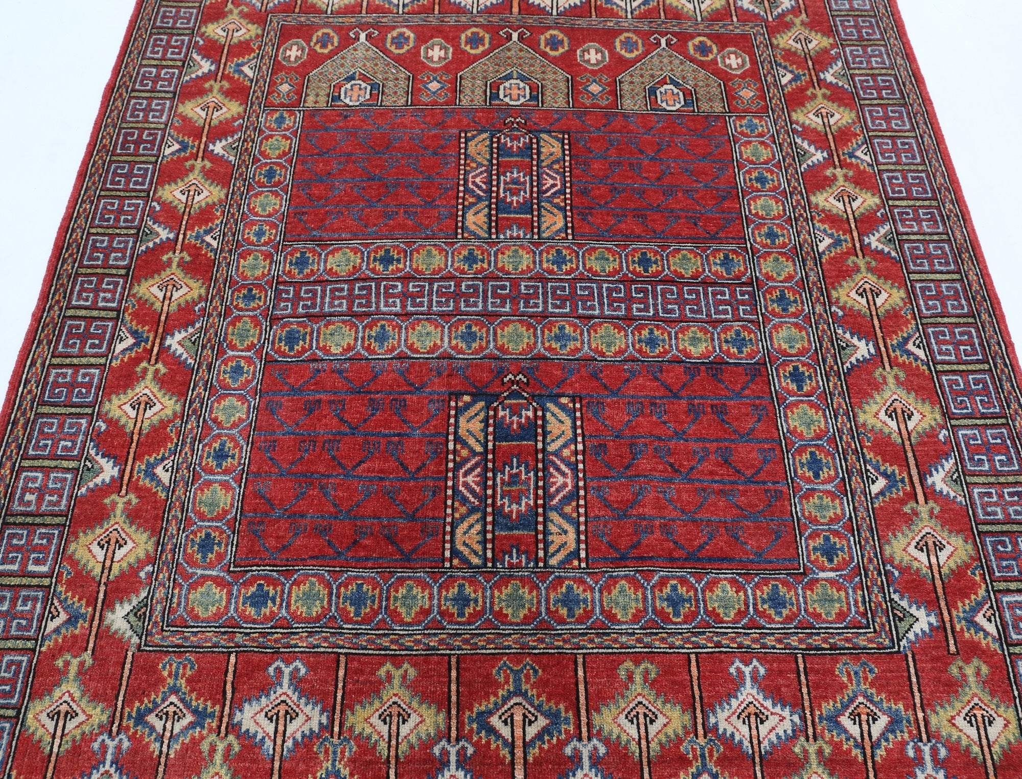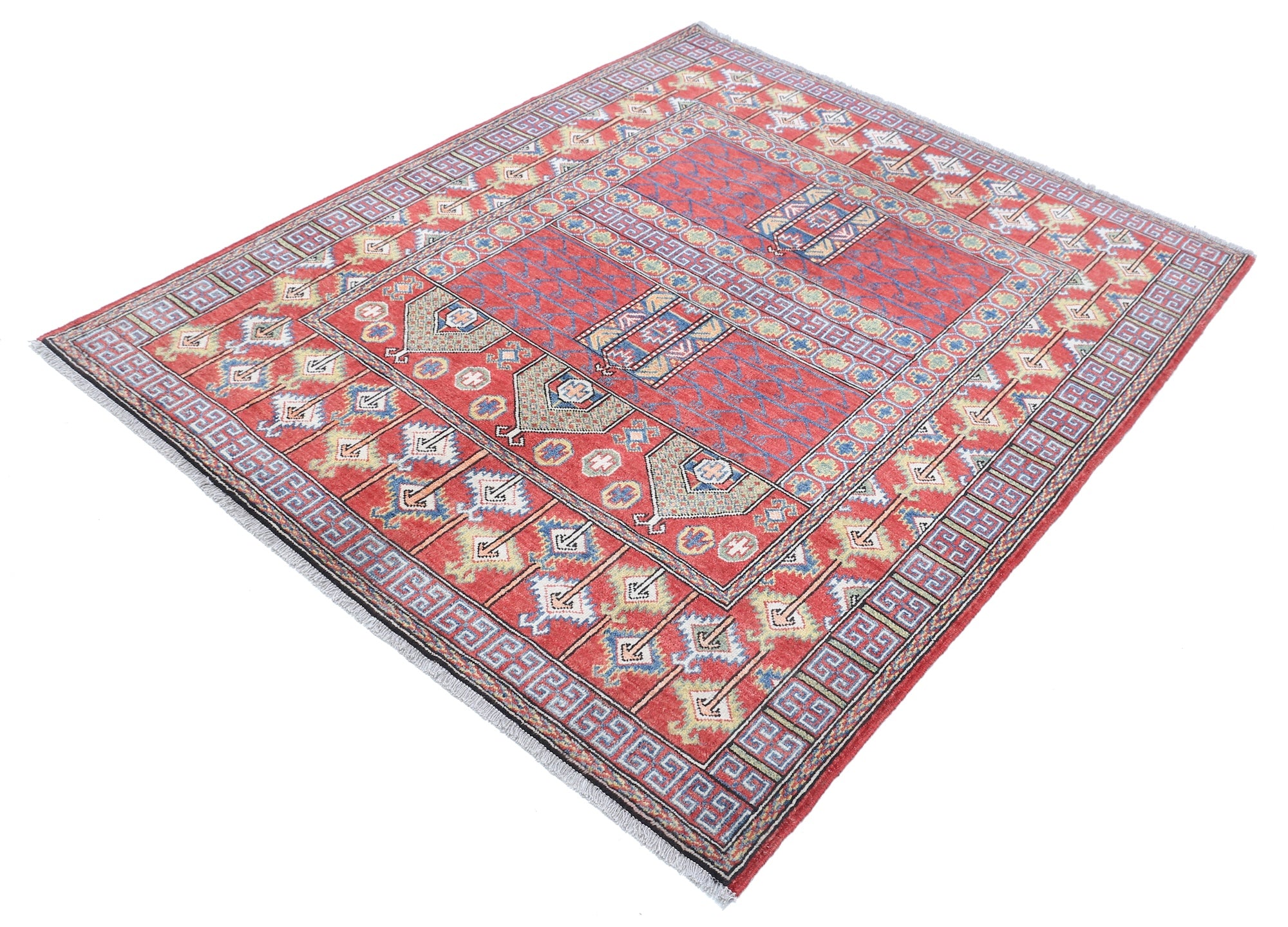 This artisan-crafted Afghan wool rug features a striking geometric tribal pattern, renowned for its cultural heritage and timeless appeal. Expertly hand-knotted by skilled weavers, it offers superior durability, making it perfect for high-traffic areas. Its intricate design and premium wool blend traditional craftsmanship with modern elegance, adding warmth and character to any space.