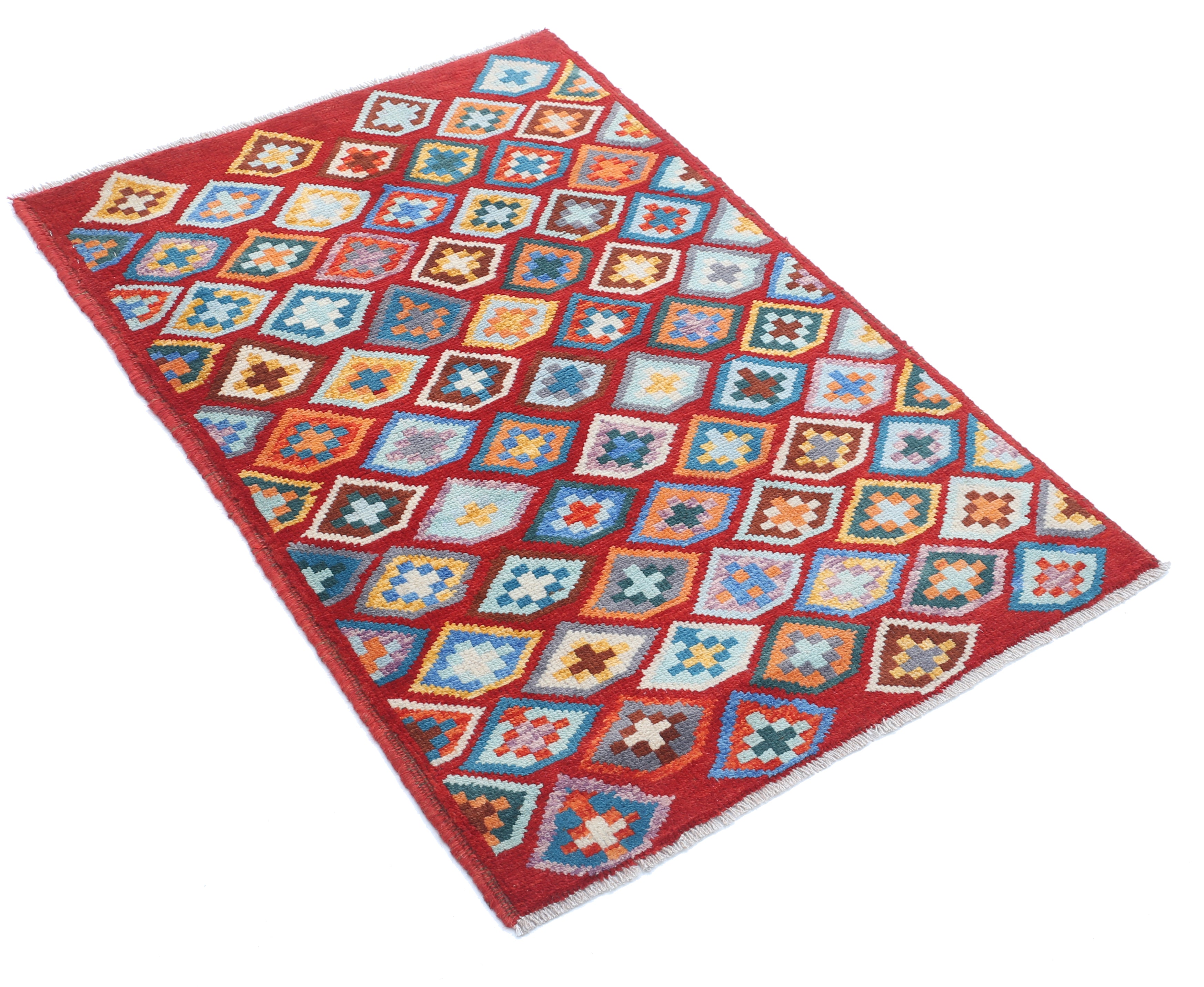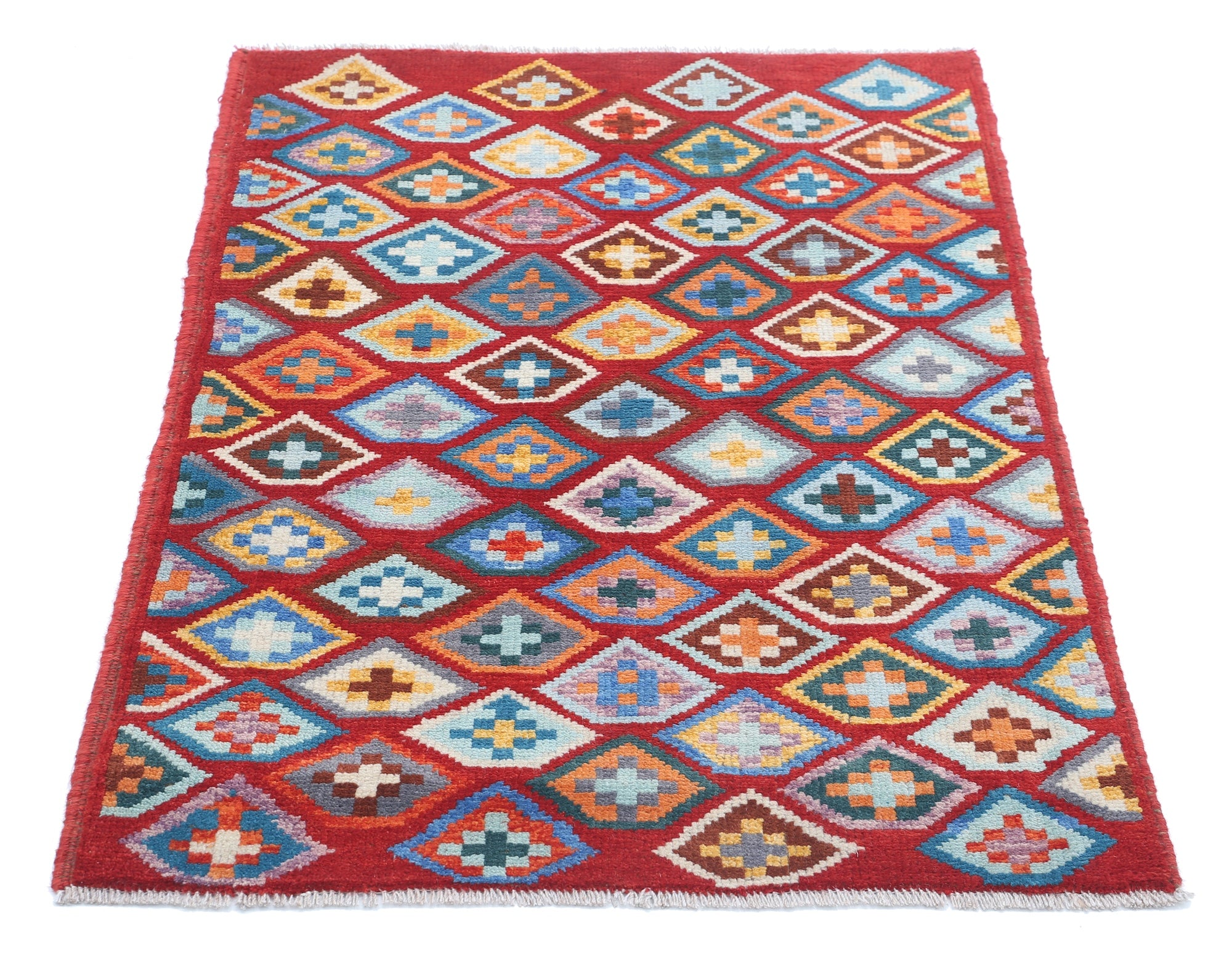 Hand-Knotted Tribal Geometric Wool Rug - 2'7" x 3'9"