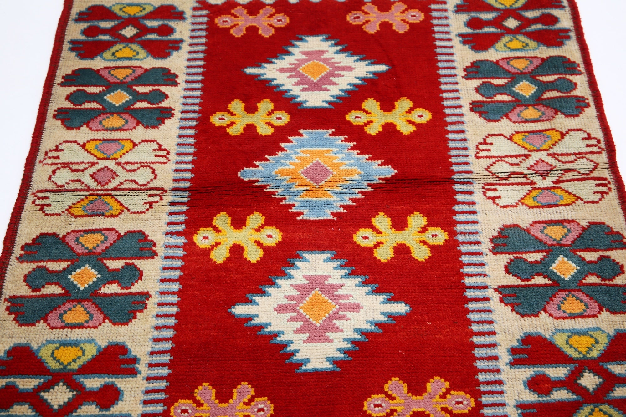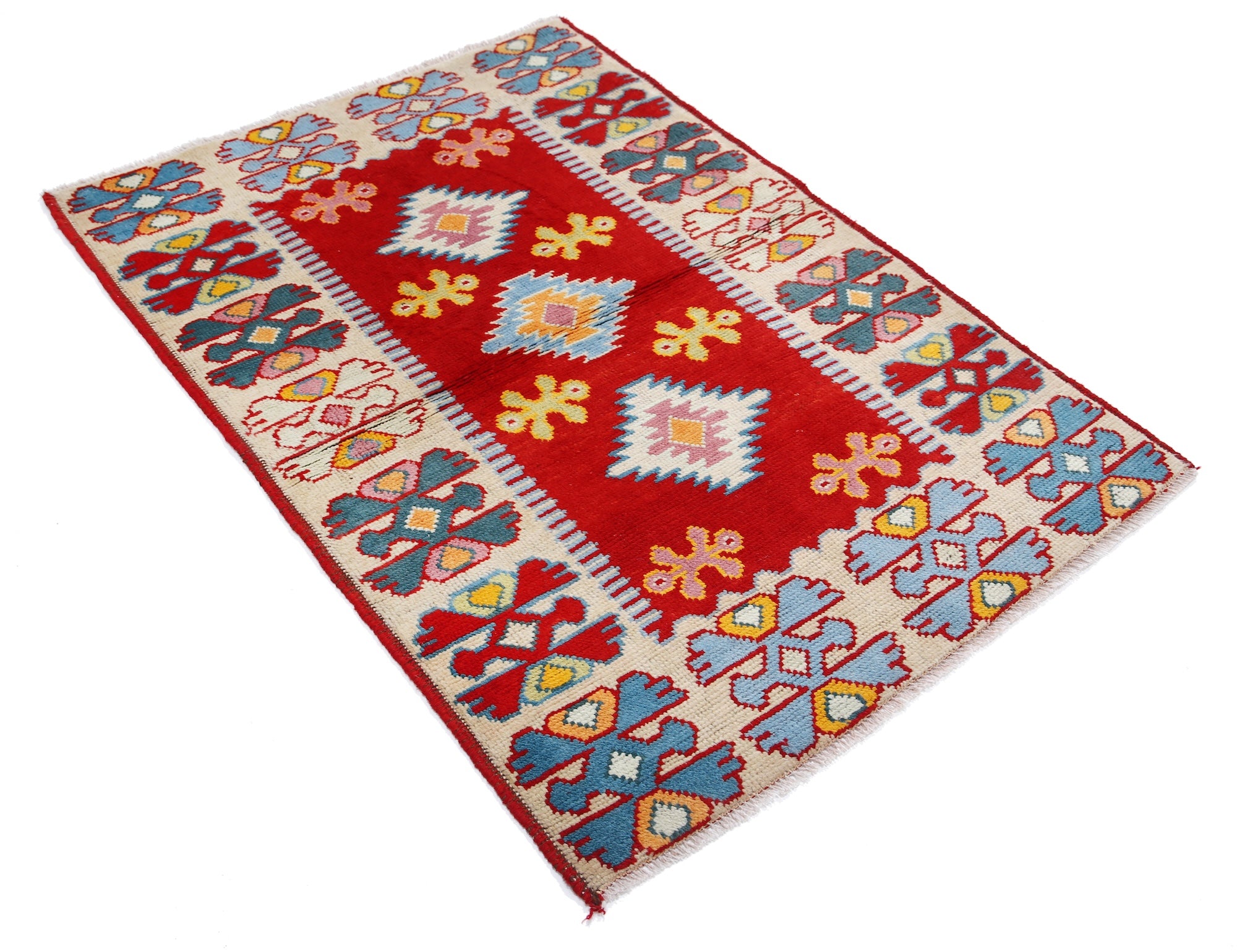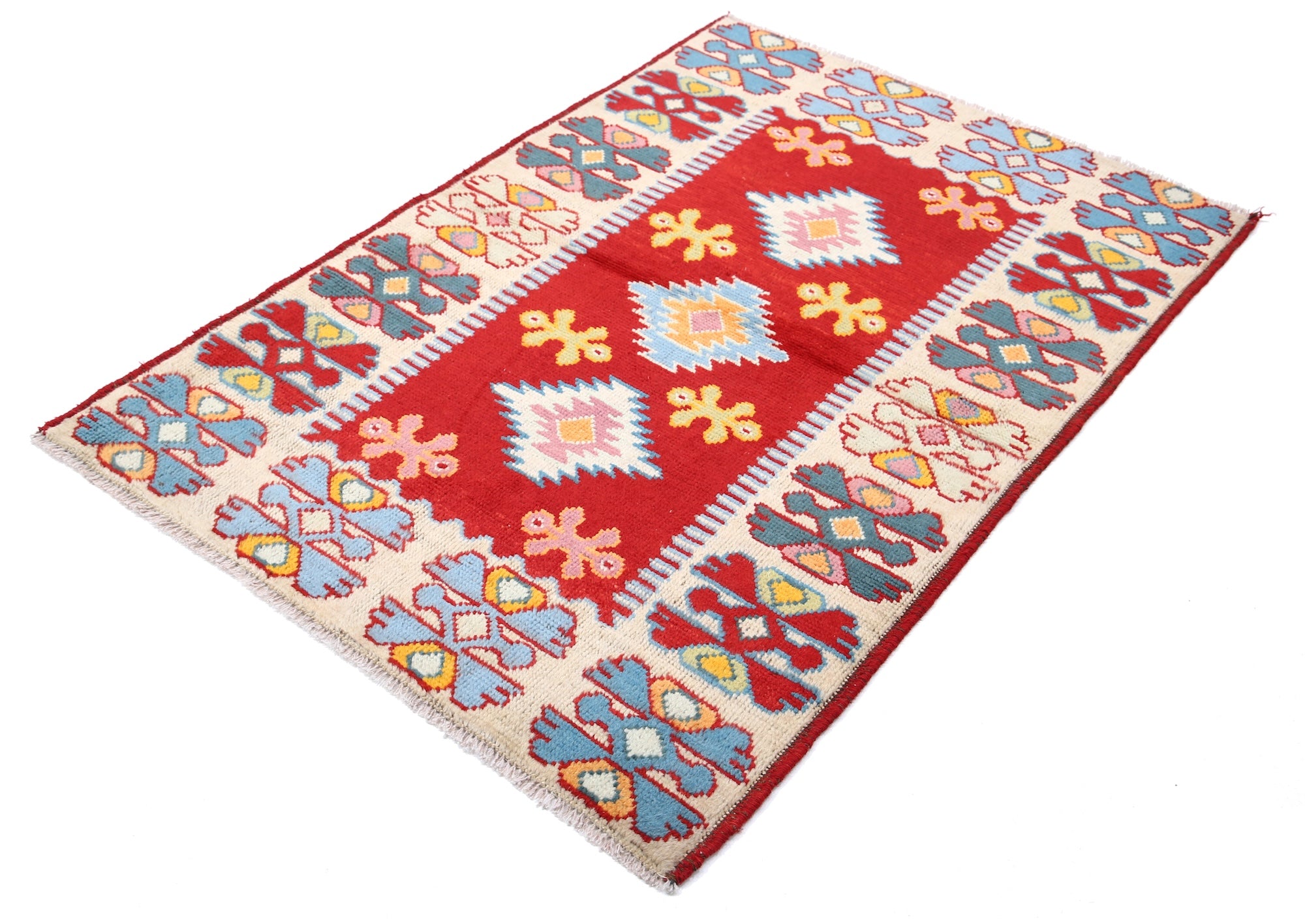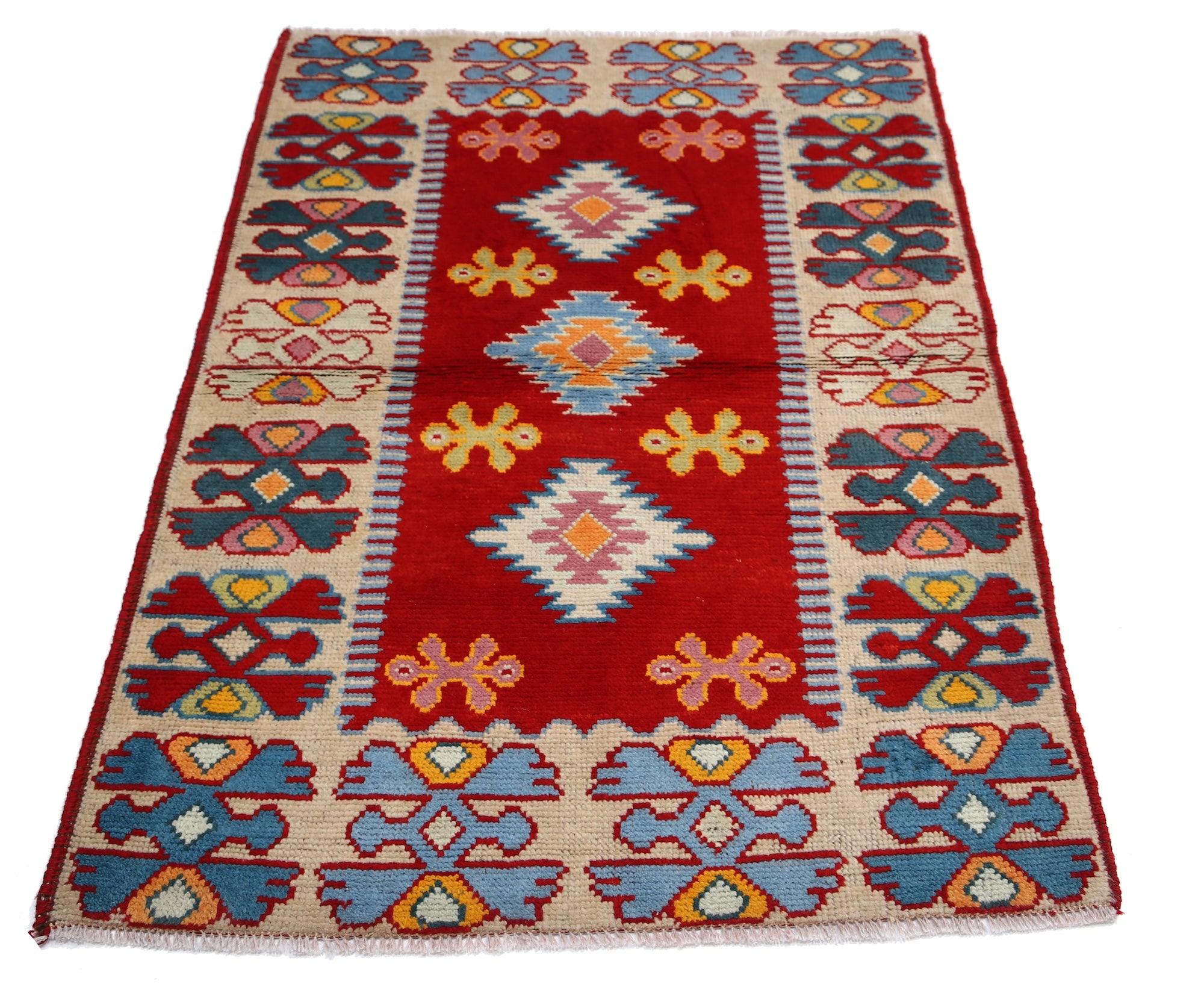 Hand-Knotted Tribal Geometric Wool Rug - 3'3" x 4'10"