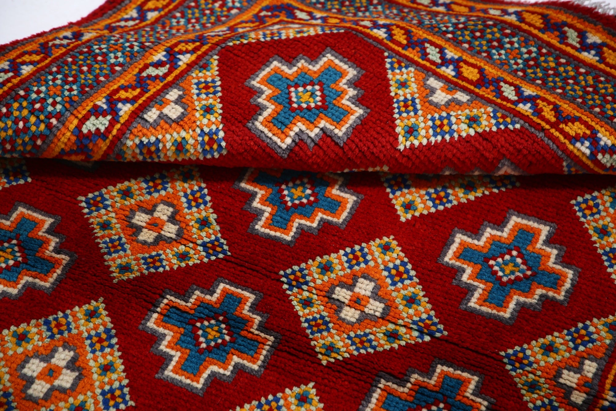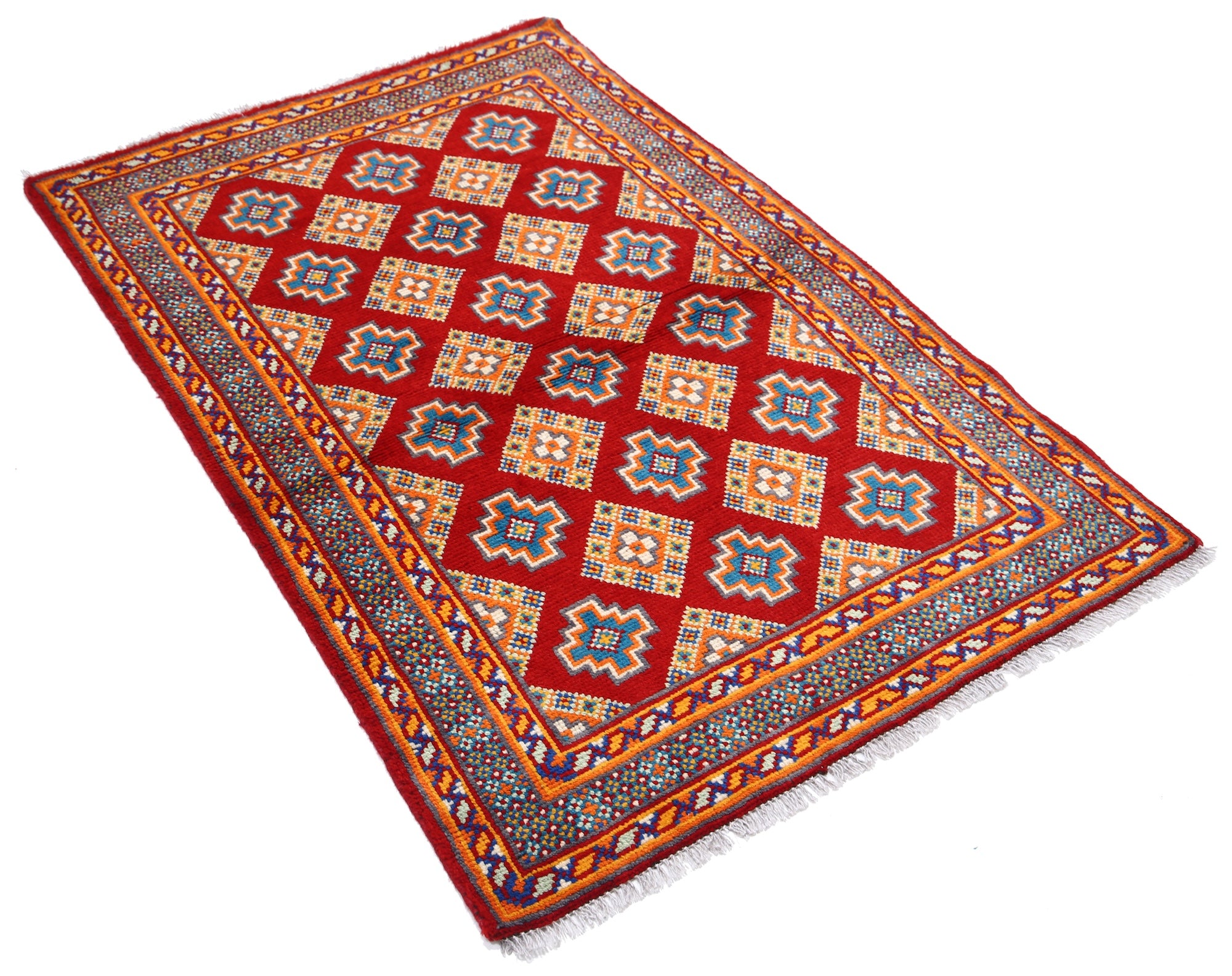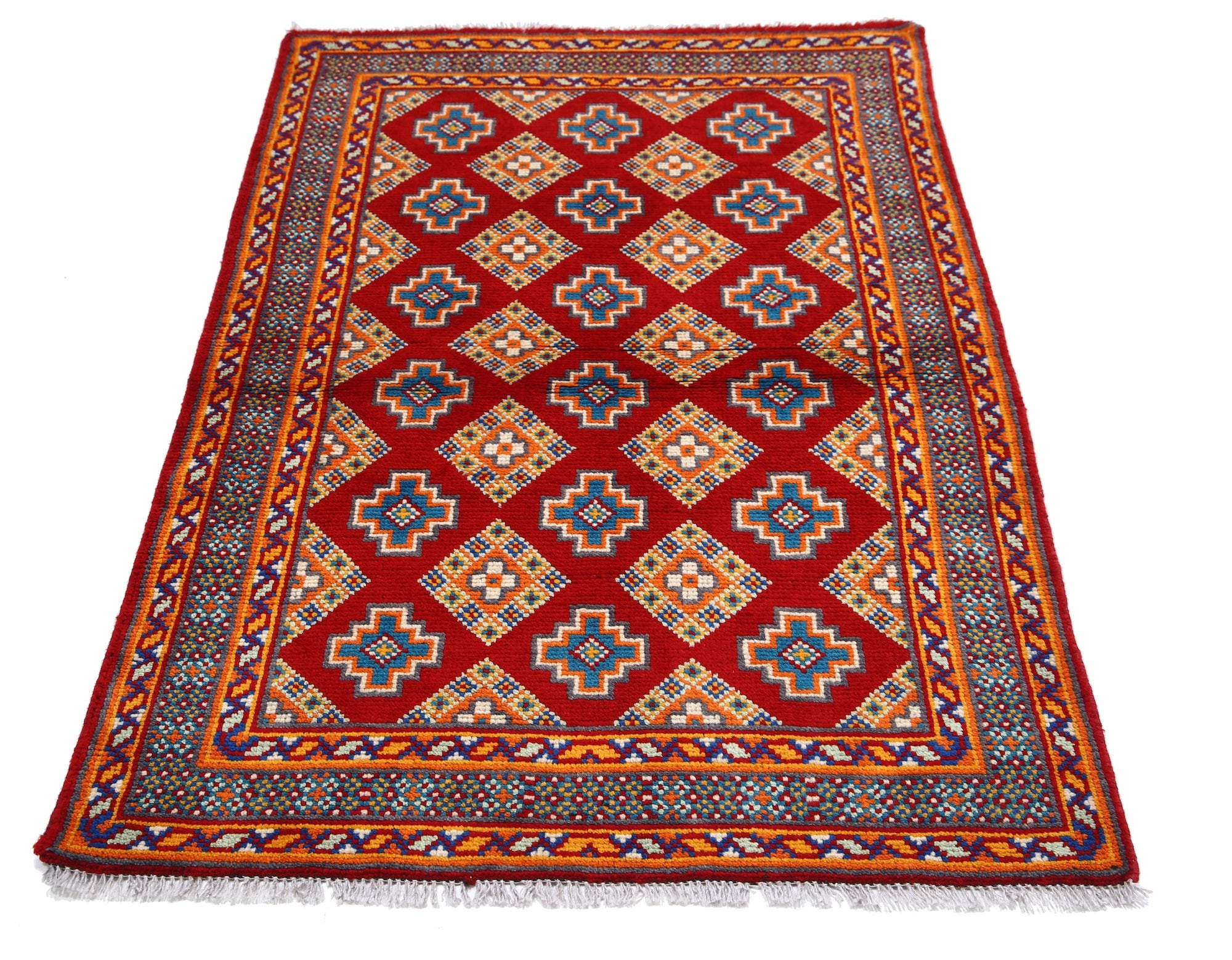 The hand-knotted Afghan wool rug features an intricate tribal geometric design, celebrated for its cultural heritage and timeless elegance. Woven by skilled artisans, it offers exceptional durability, making it ideal for high-traffic areas. Its unique patterns and premium wool blend tradition with modern sophistication, adding warmth and character to any interior.