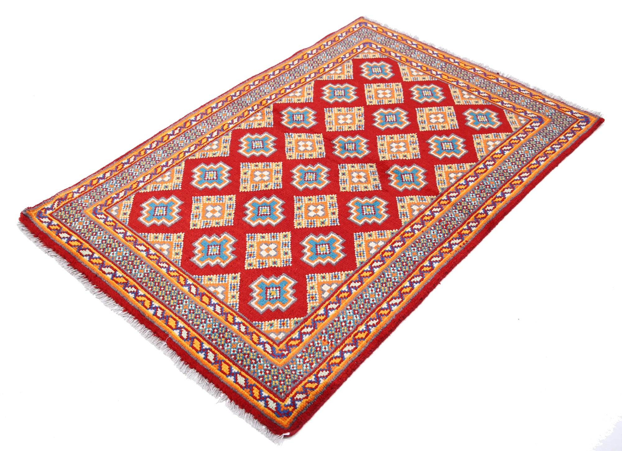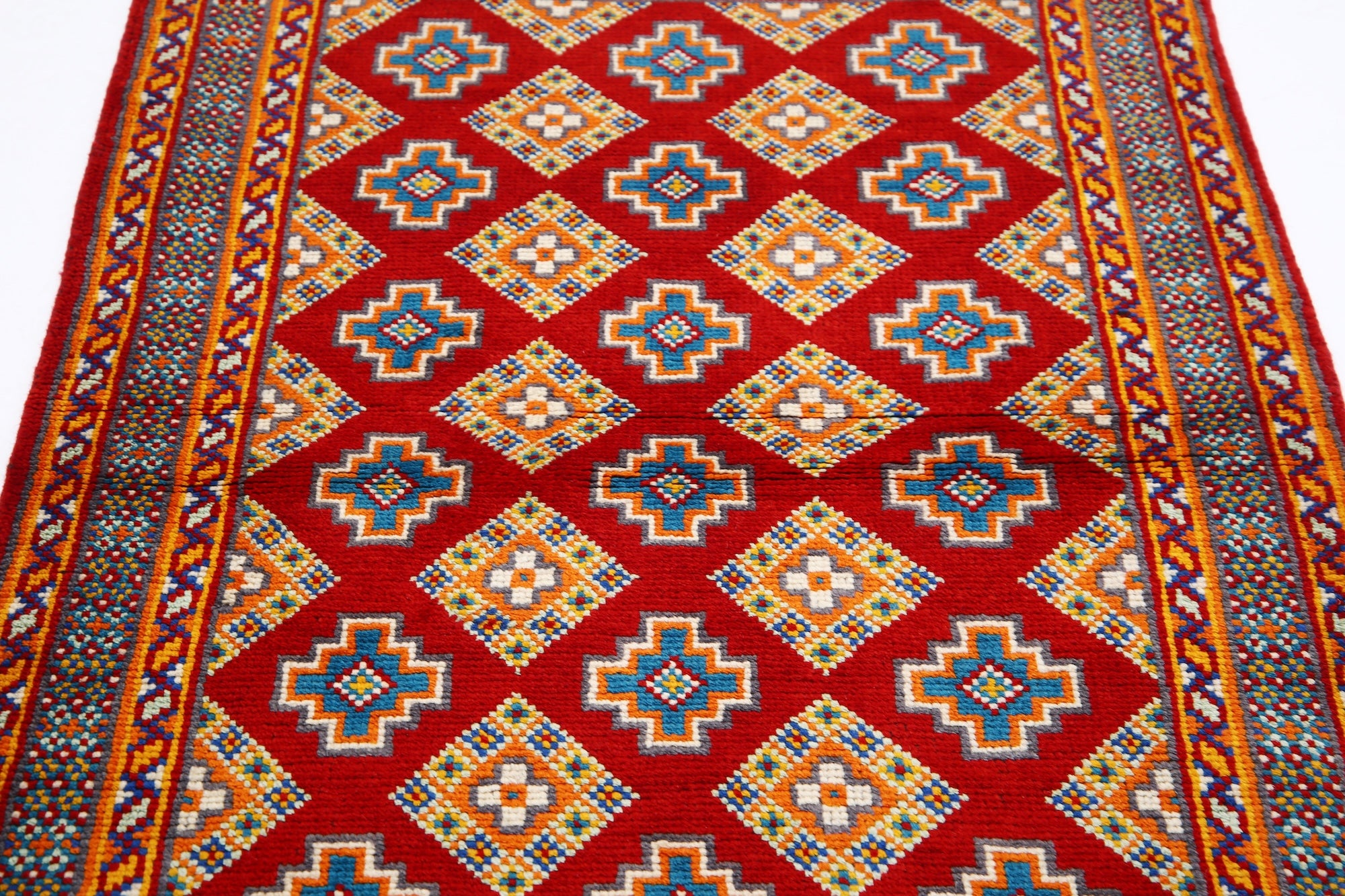 Hand-Knotted Tribal Geometric Wool Rug - 3'4" x 5'1"