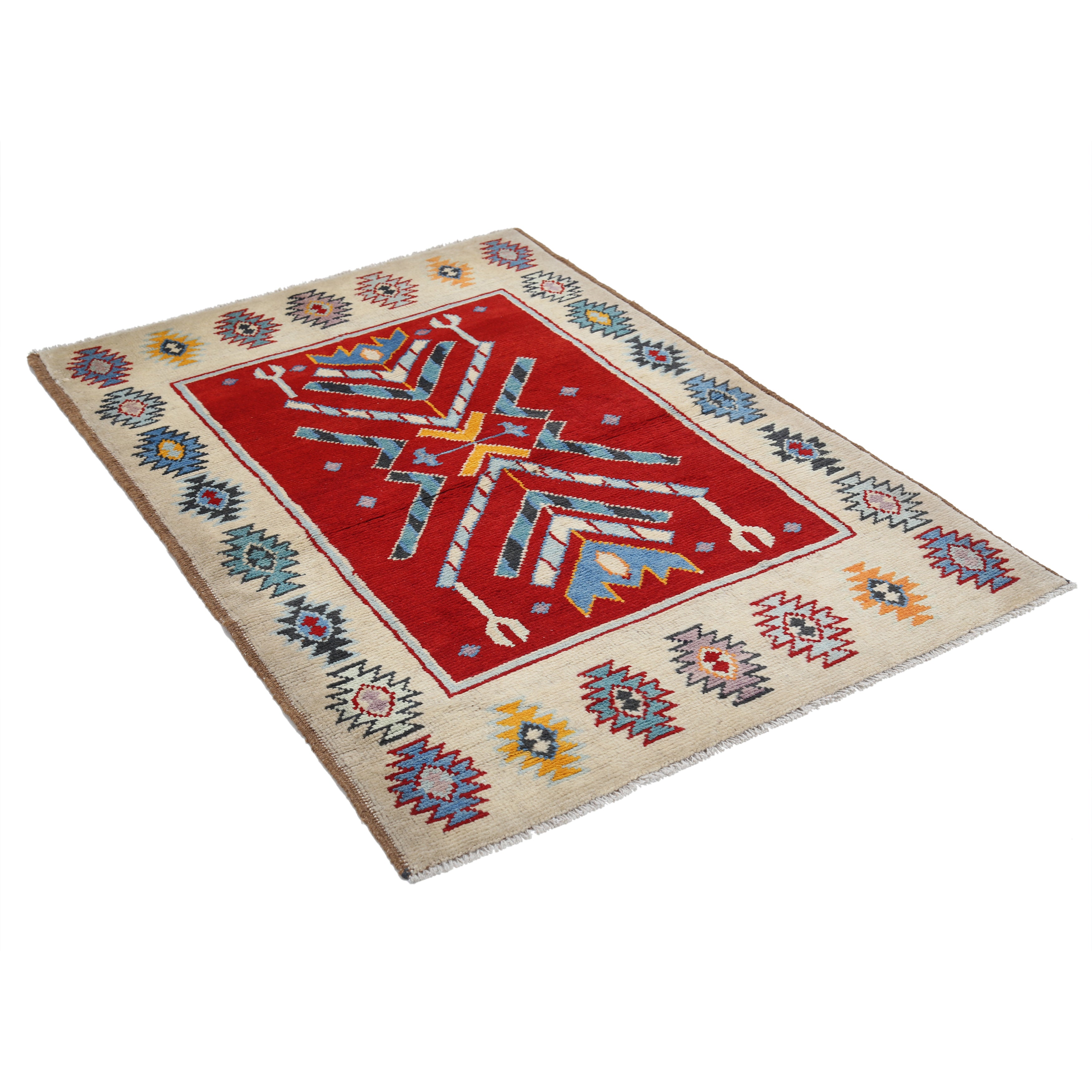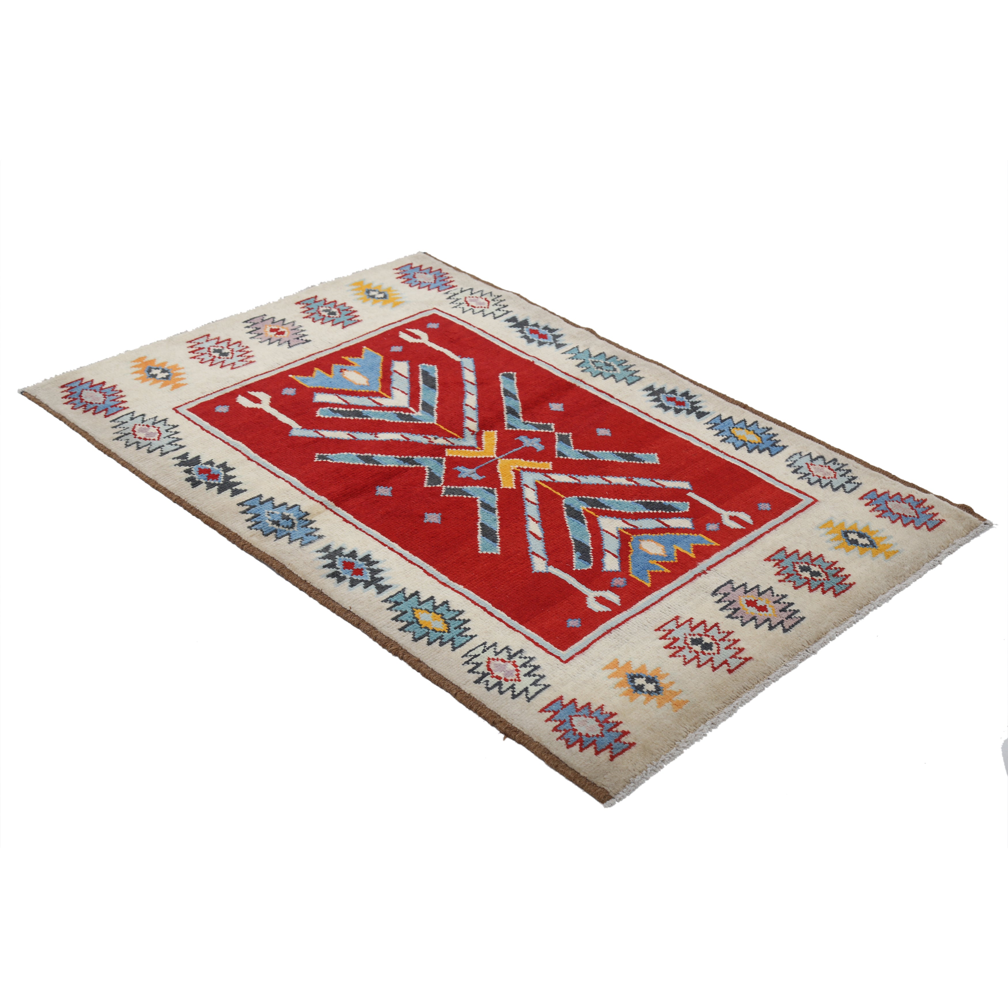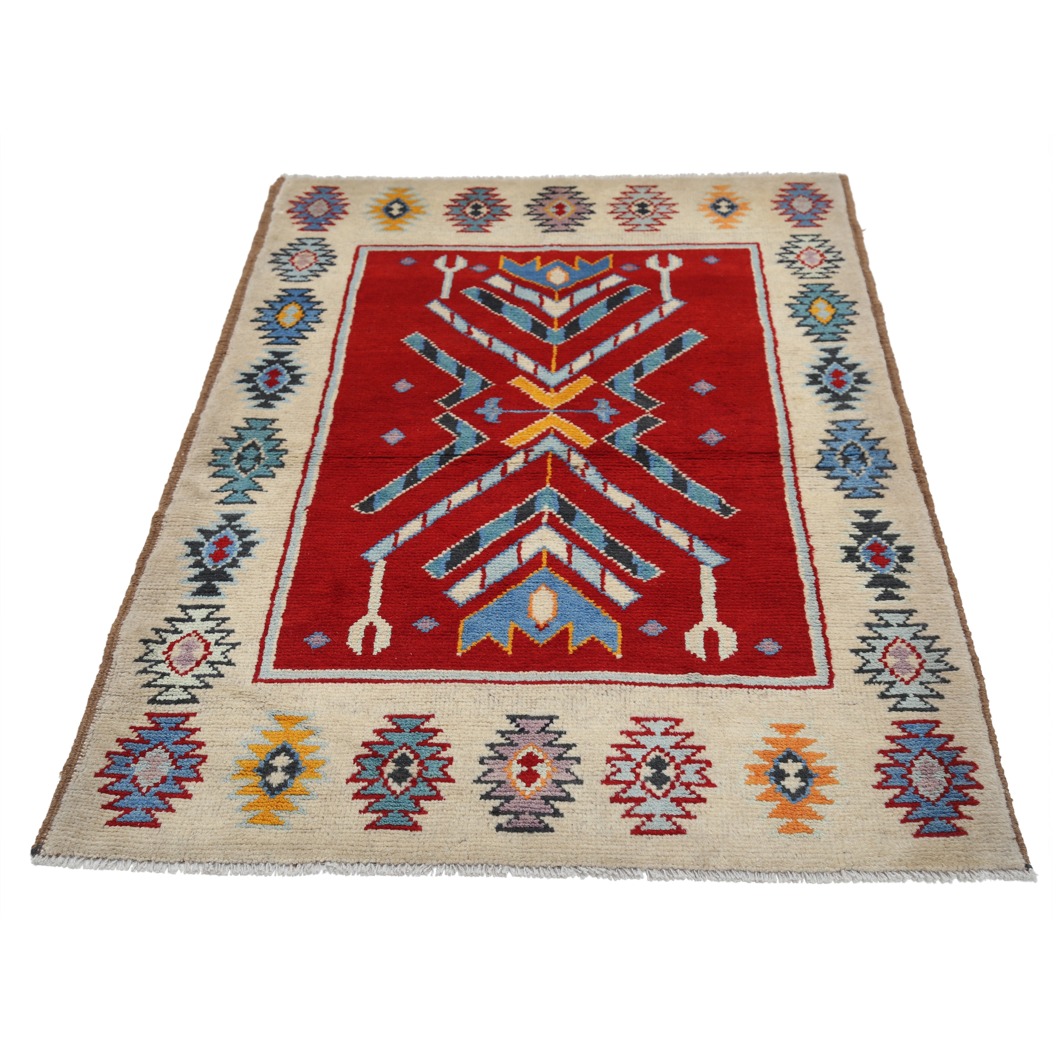 Hand-Knotted Tribal Geometric Wool Rug - 3'5" x 4'11"