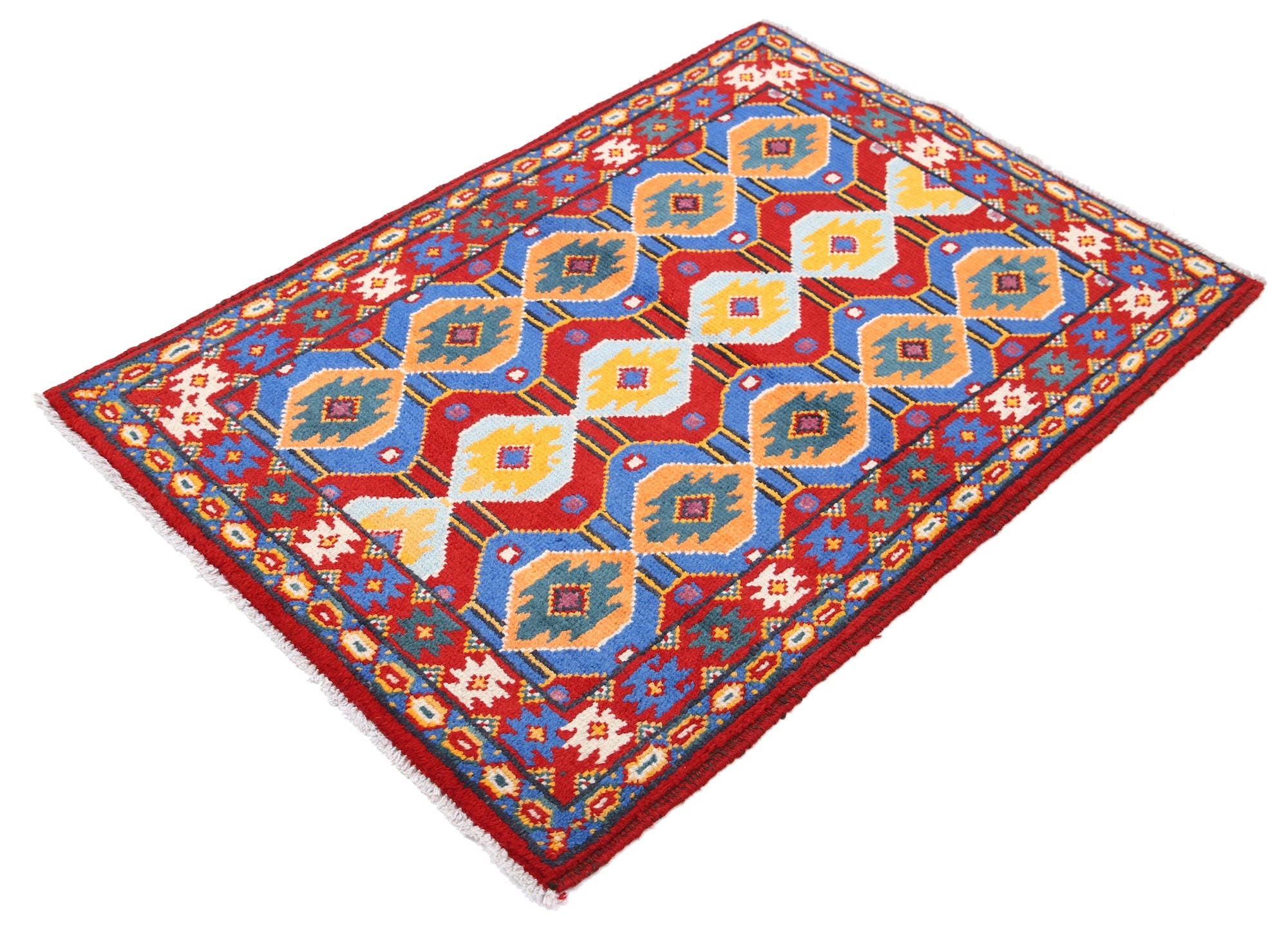 Hand-Knotted Tribal Geometric Wool Rug - 3'5" x 4'11"