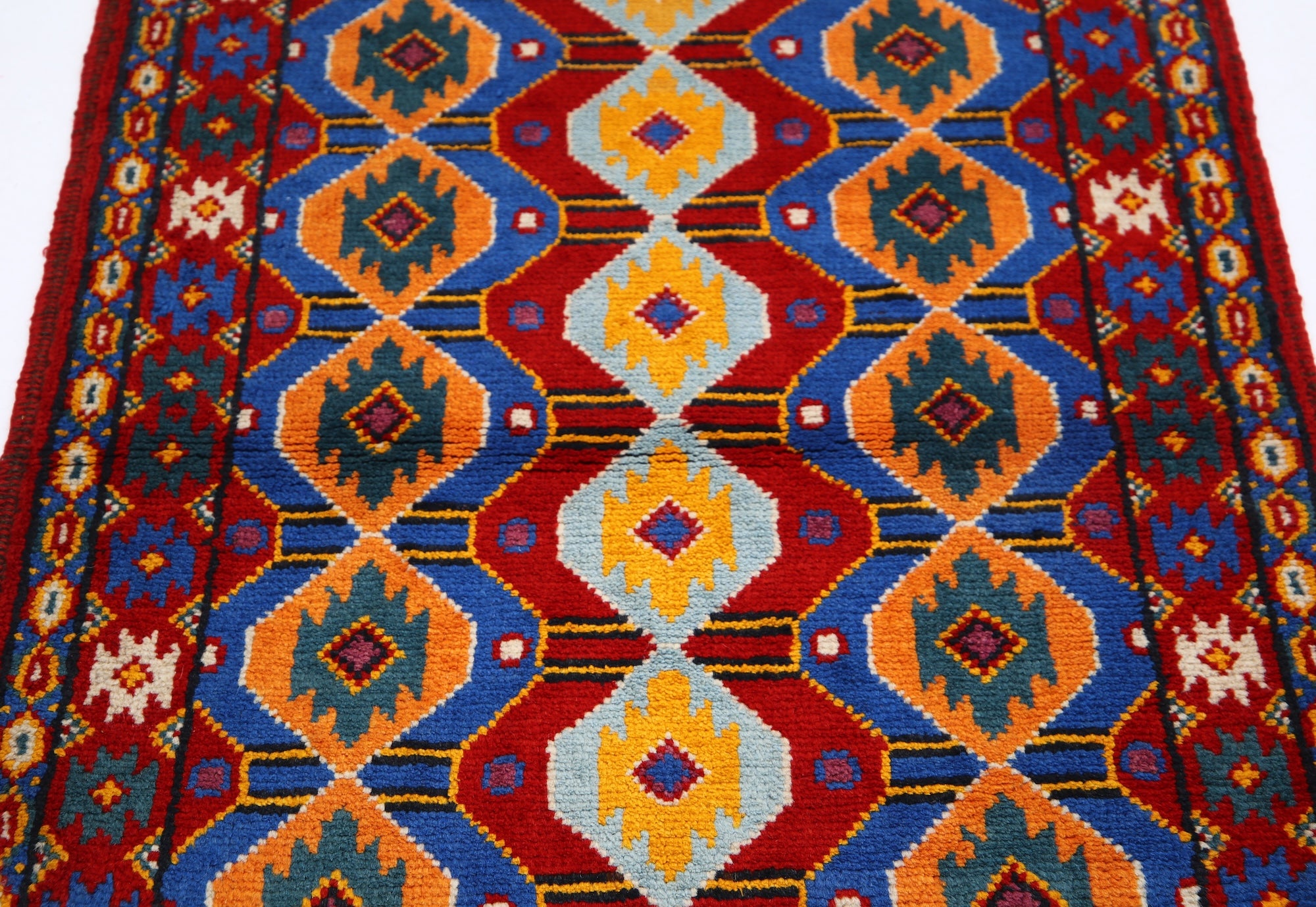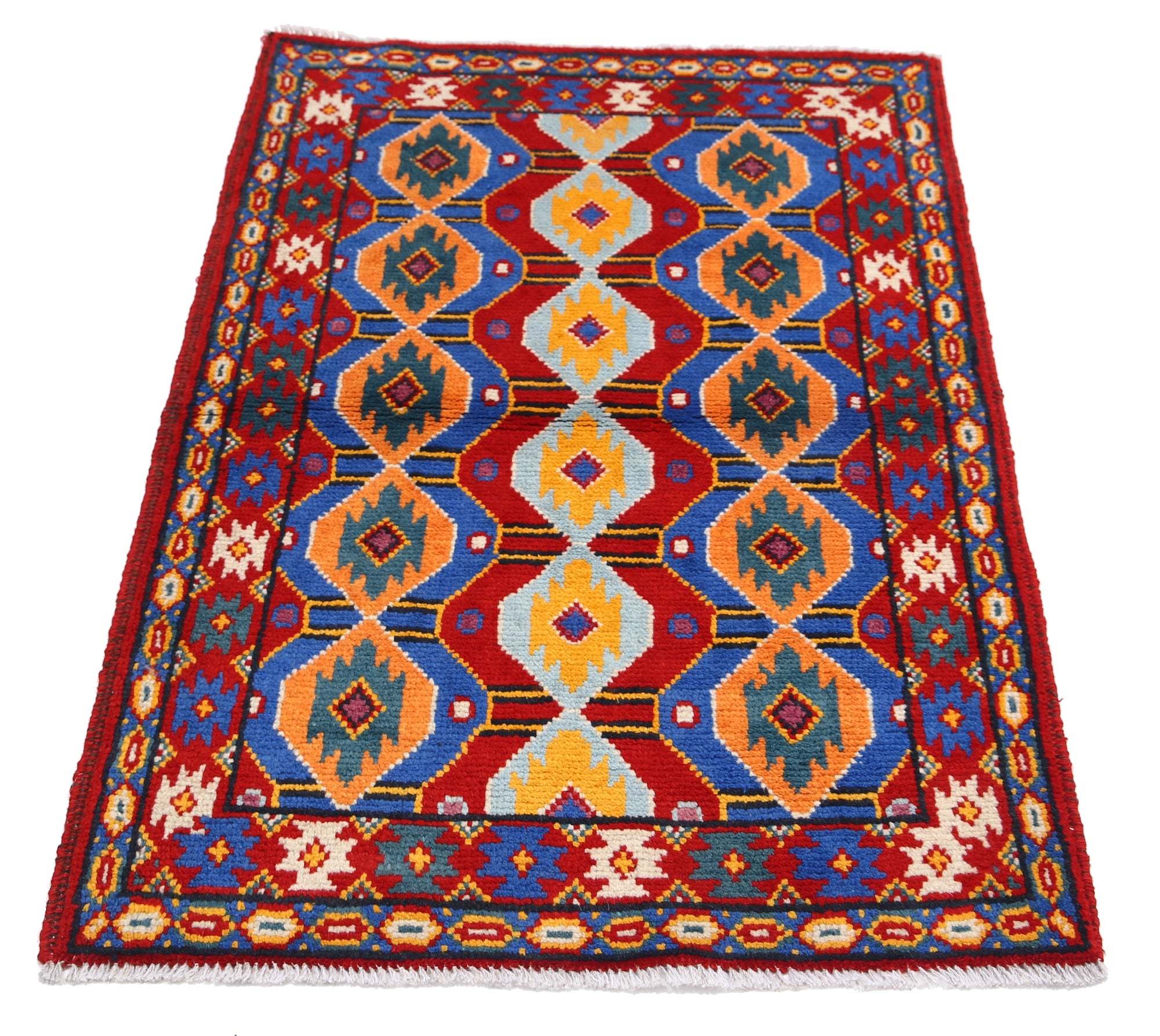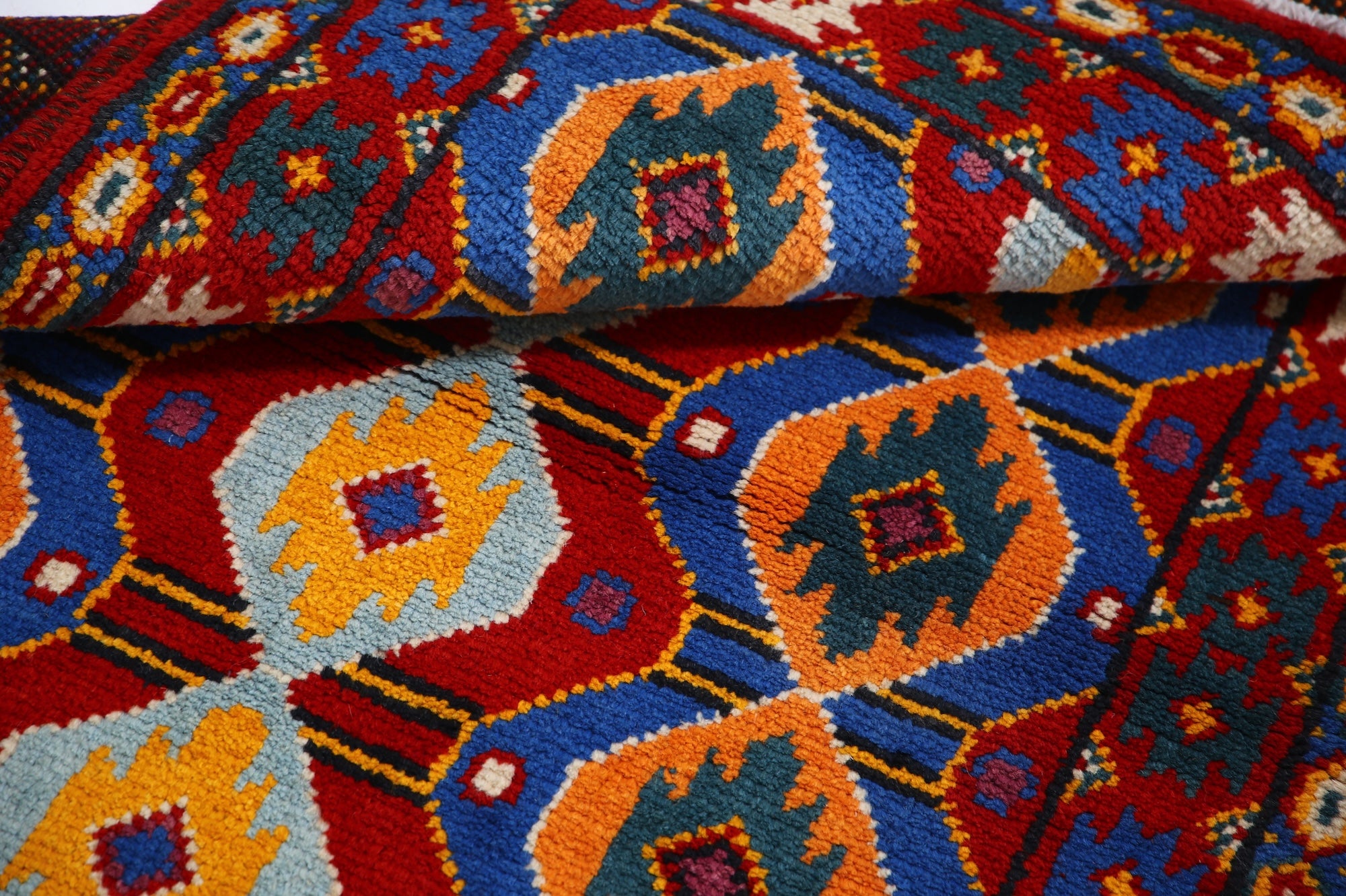 The hand-knotted Afghan wool rug features an intricate tribal geometric design, celebrated for its cultural heritage and timeless elegance. Woven by skilled artisans, it offers exceptional durability, making it ideal for high-traffic areas. Its unique patterns and premium wool blend tradition with modern sophistication, adding warmth and character to any interior.