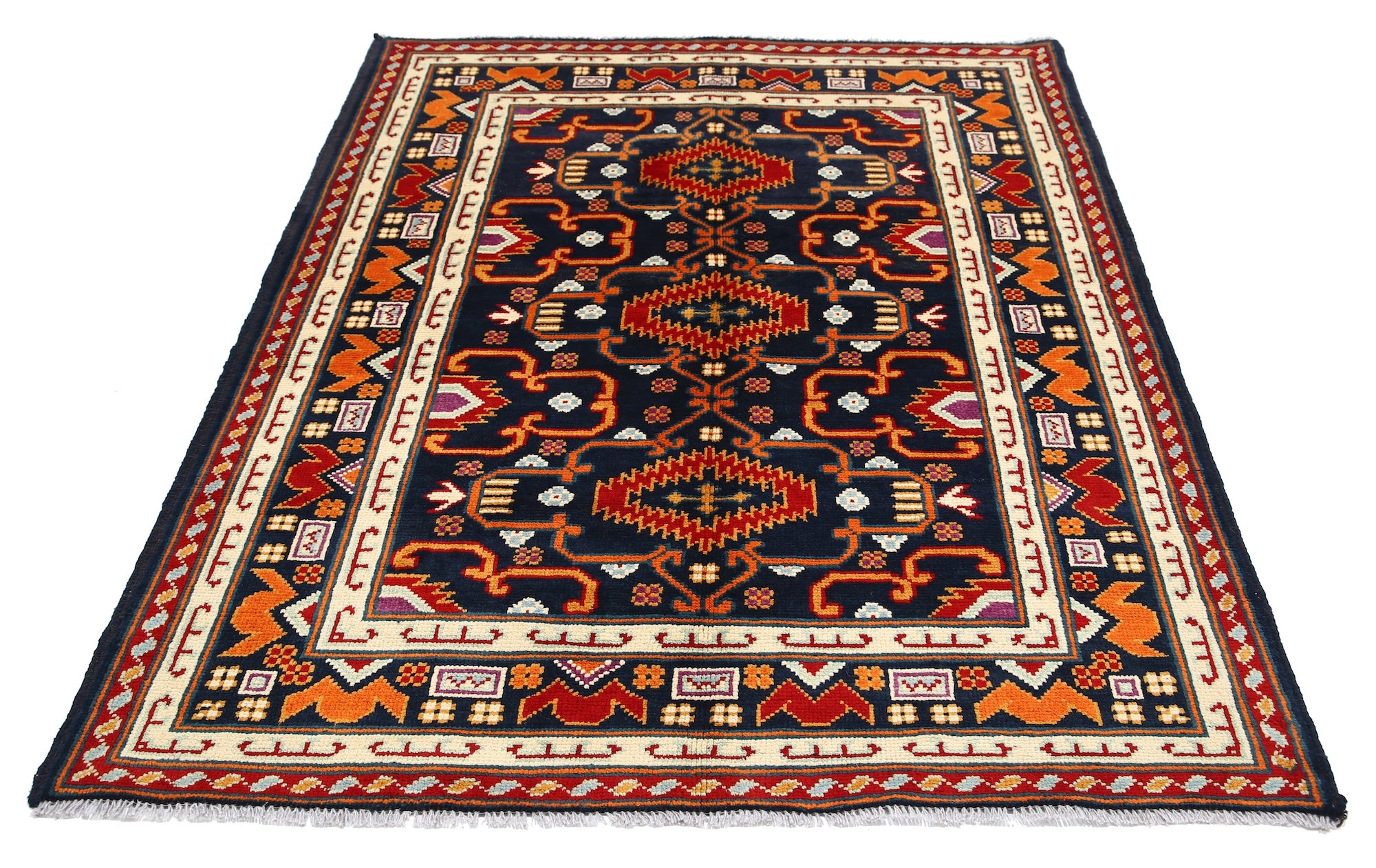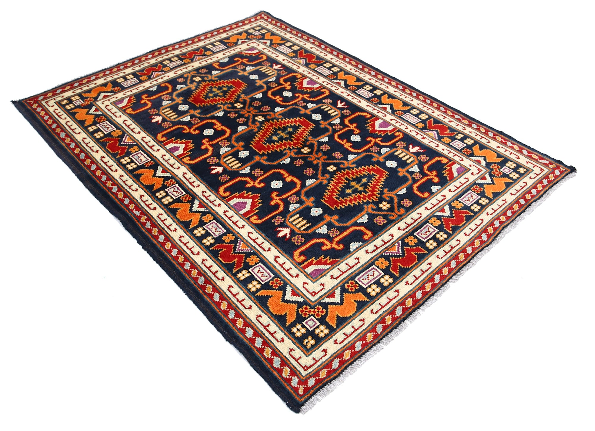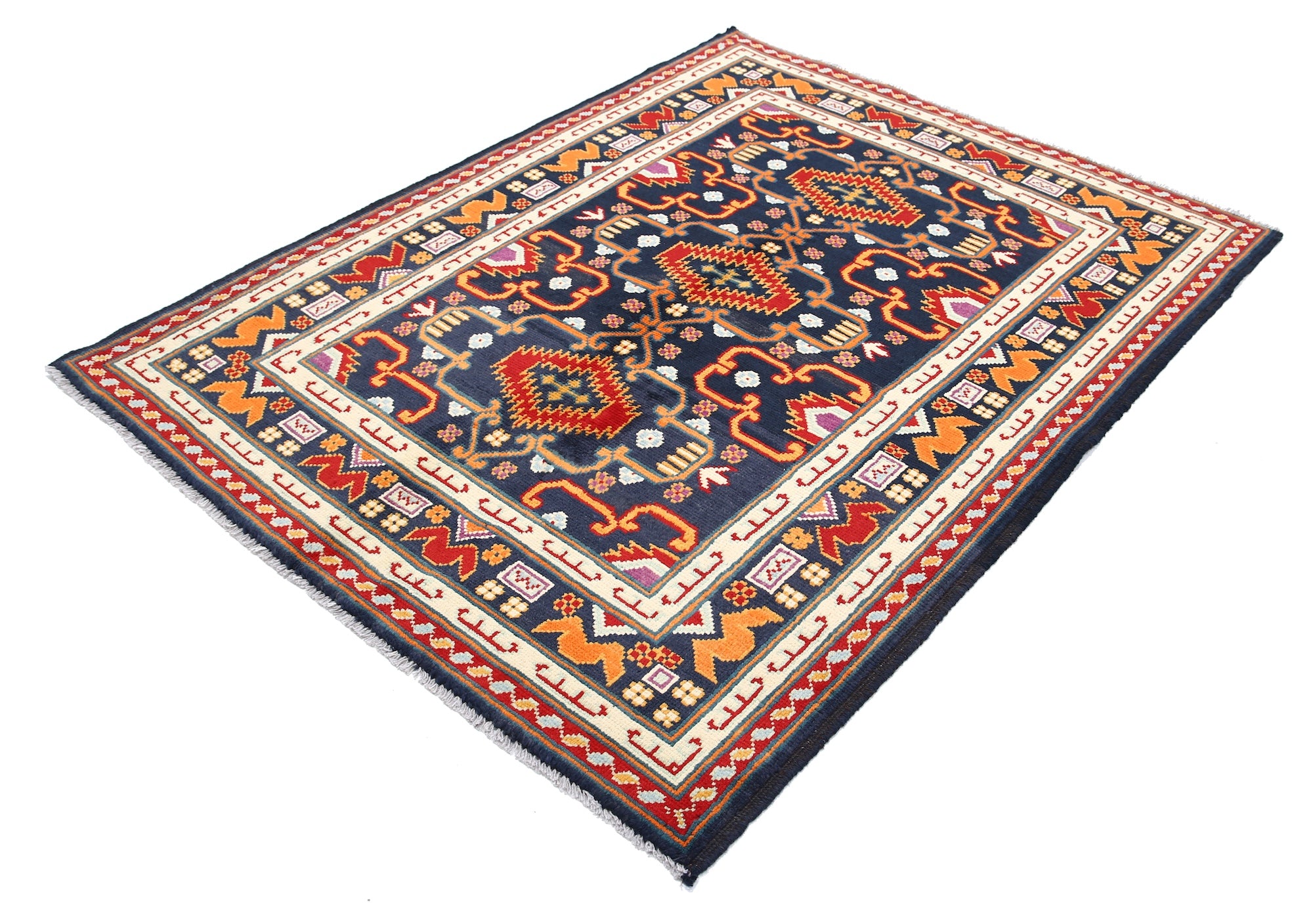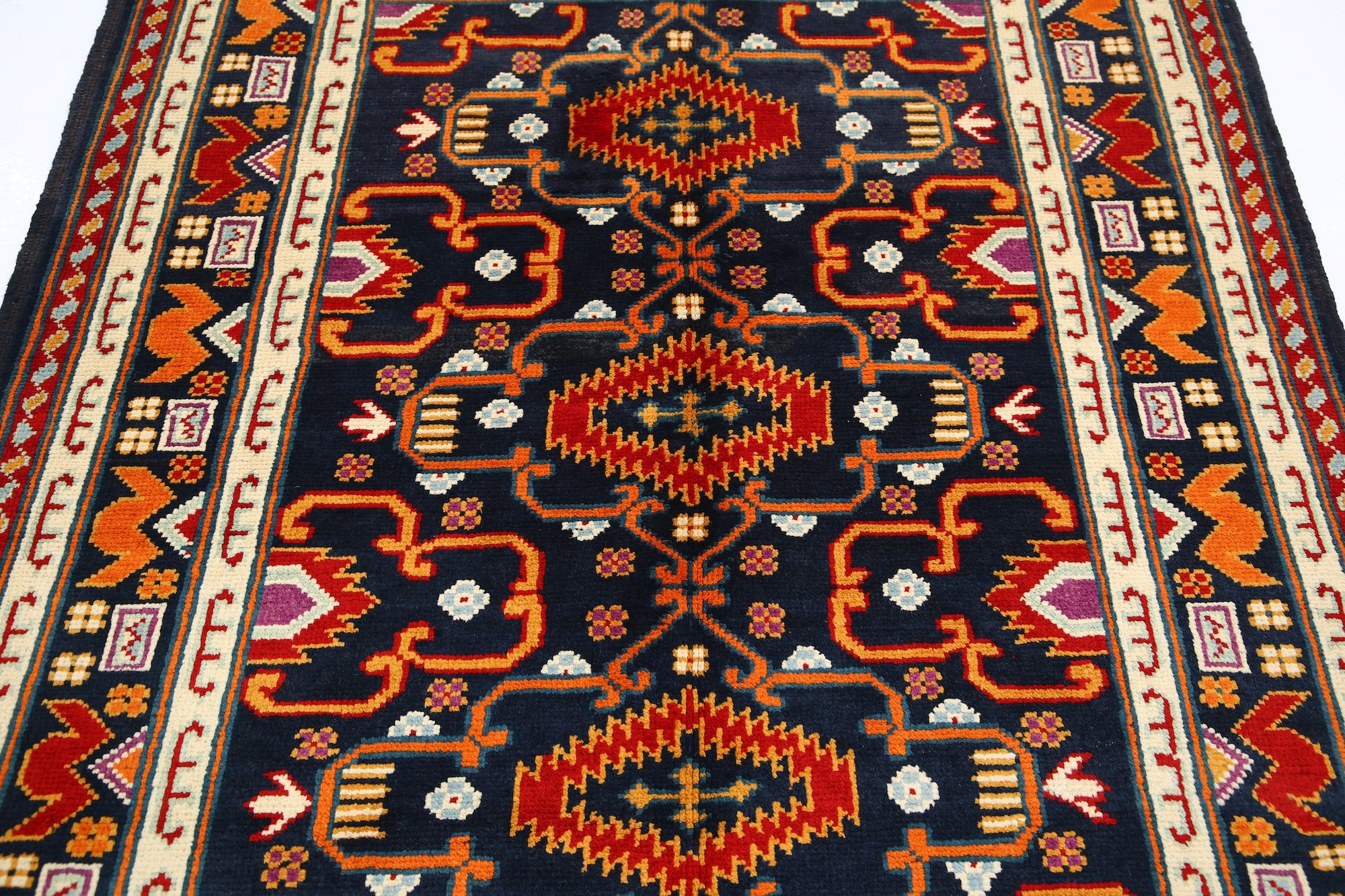 Hand-Knotted Tribal Geometric Wool Rug - 4'10" x 6'4"