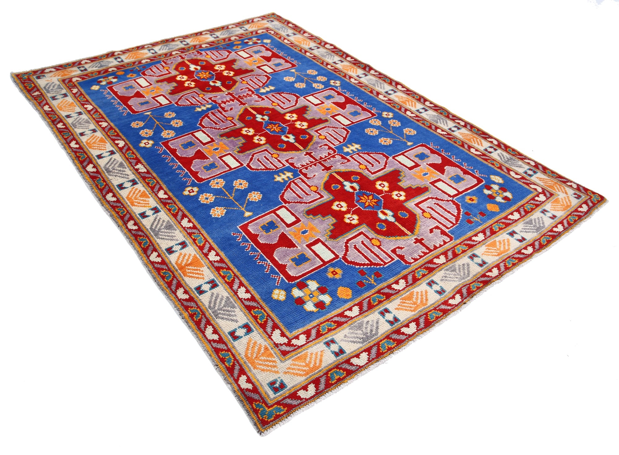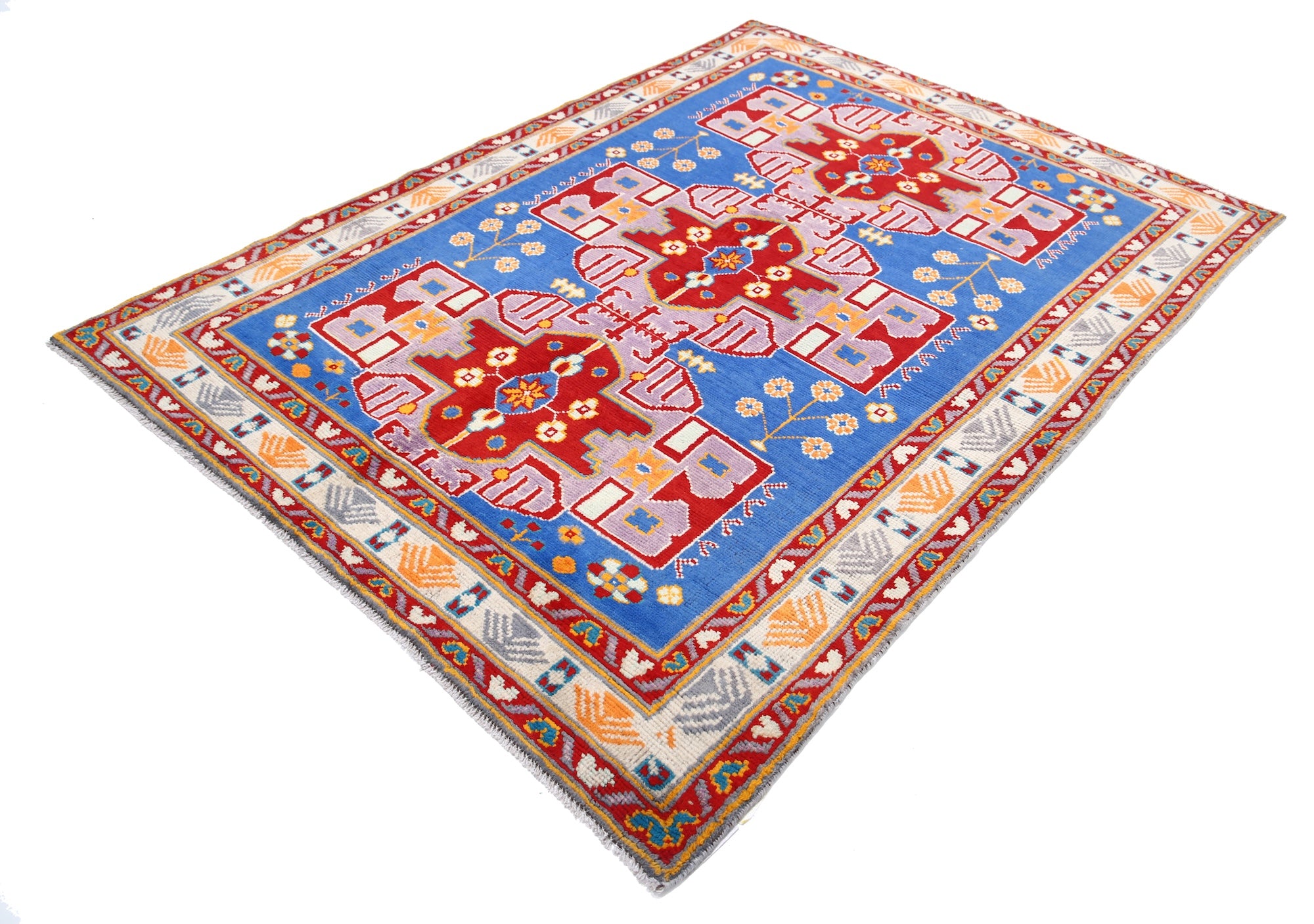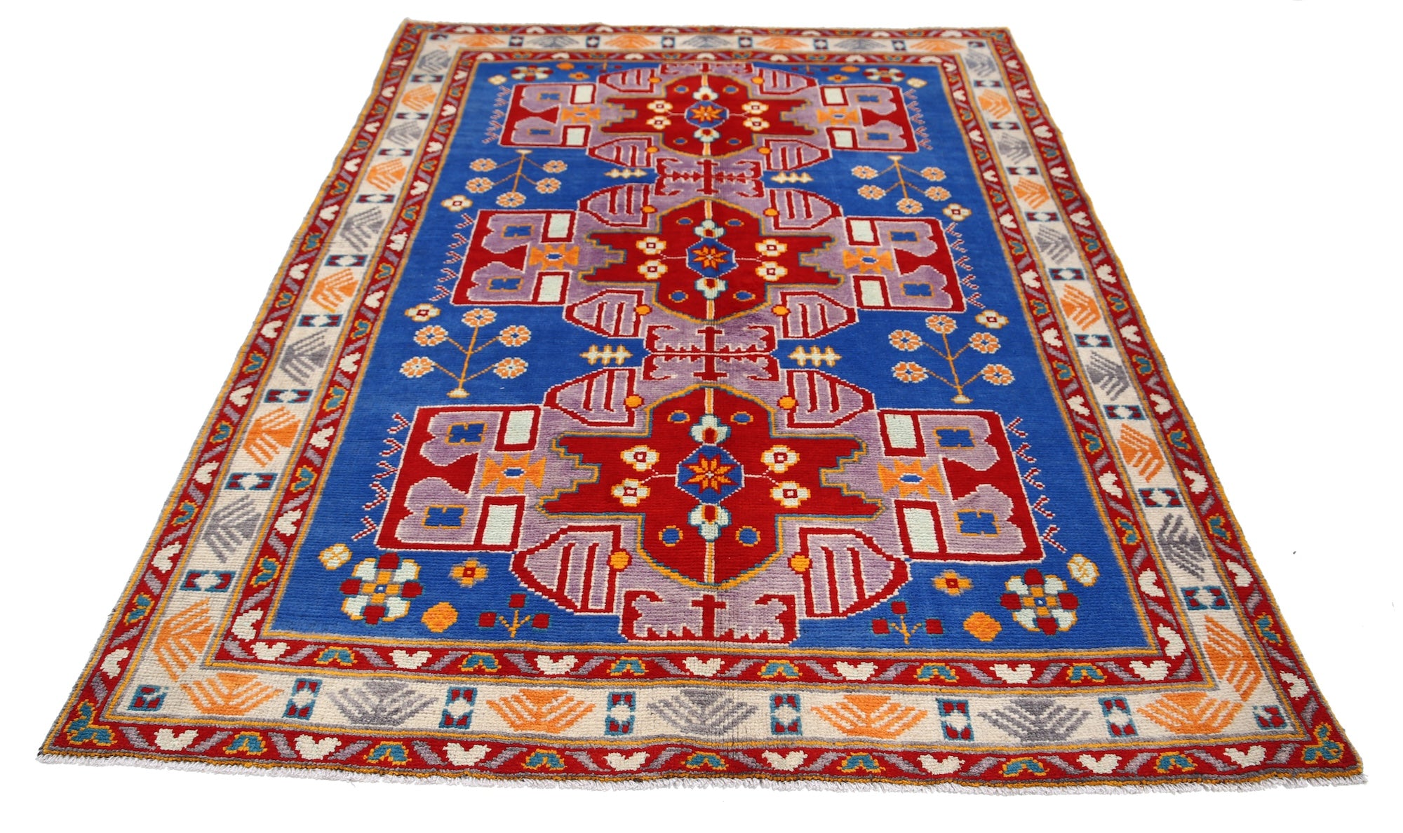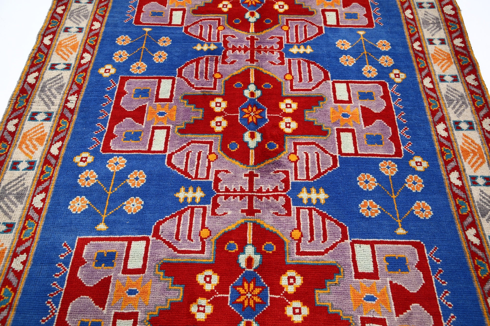 Hand-Knotted Tribal Geometric Wool Rug - 5'5" x 7'6"
